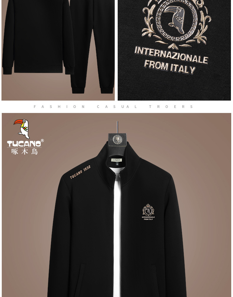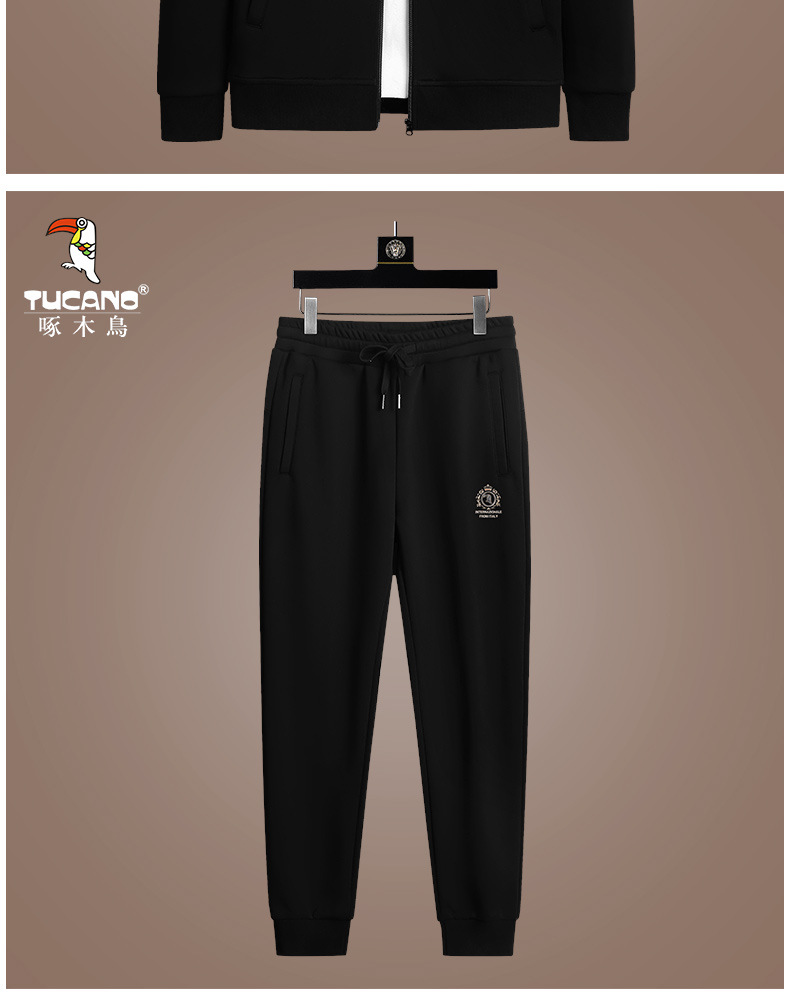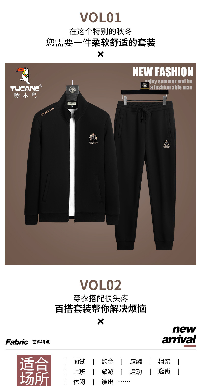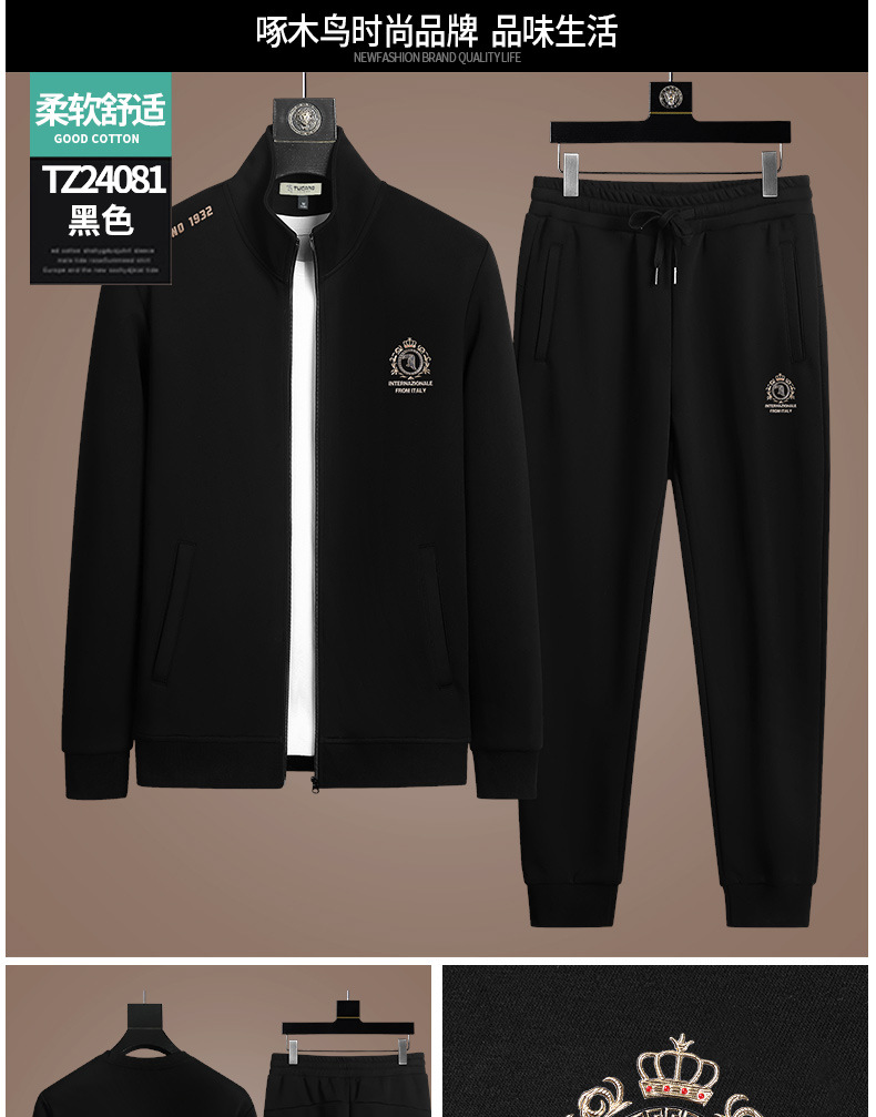 딱따구리 새로운 캐주얼 스포츠 세트 남성 봄과 가을 중년 및 청년 지퍼 운동복 긴팔 느슨한 발가락 인쇄스토어 가기