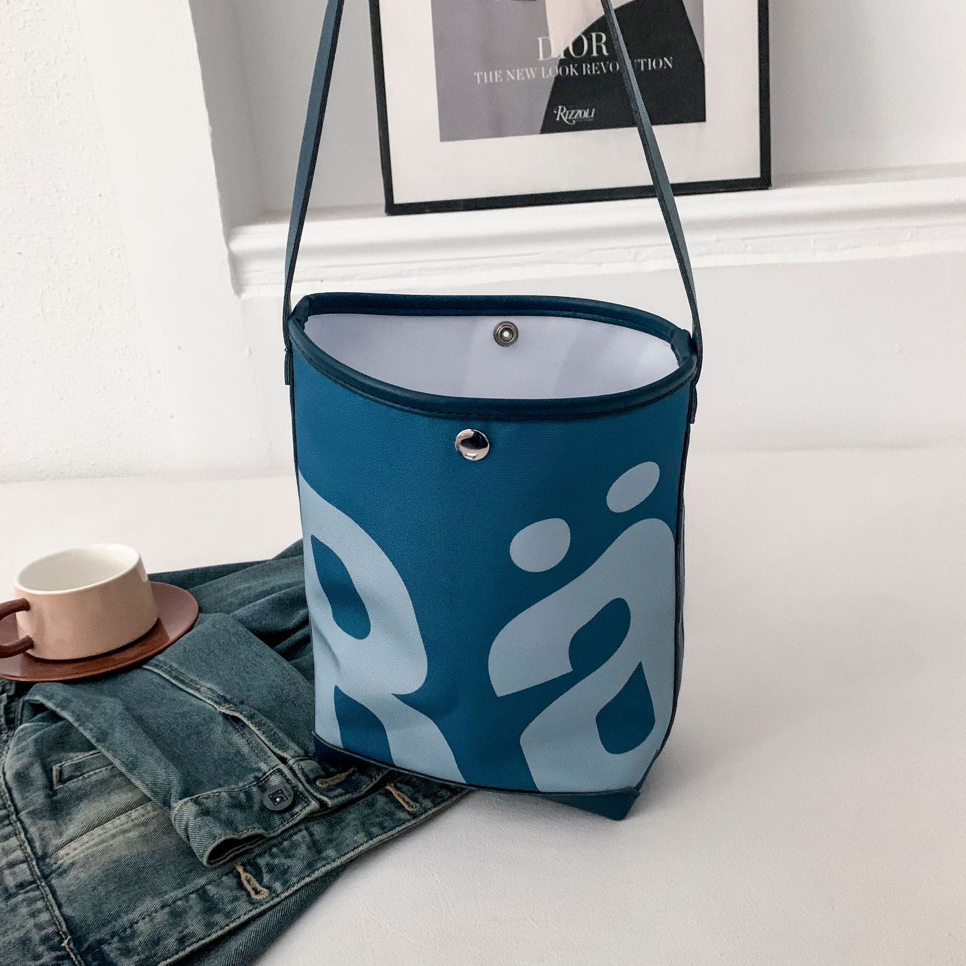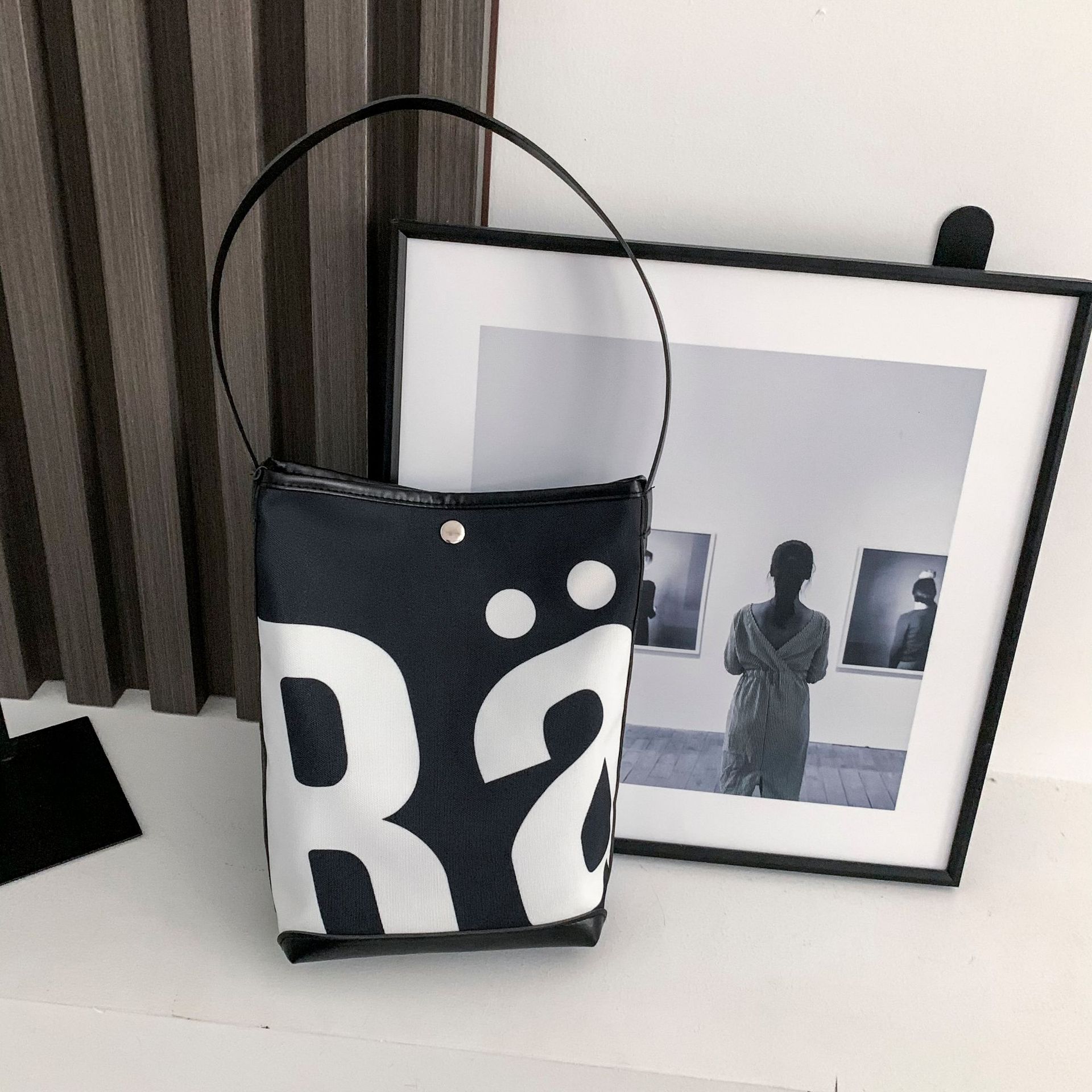 2025년 신상 태국 소형 버킷백 여성용 트렌디 피트니스백 레터 프린트 숄더백 랠리 언더암백