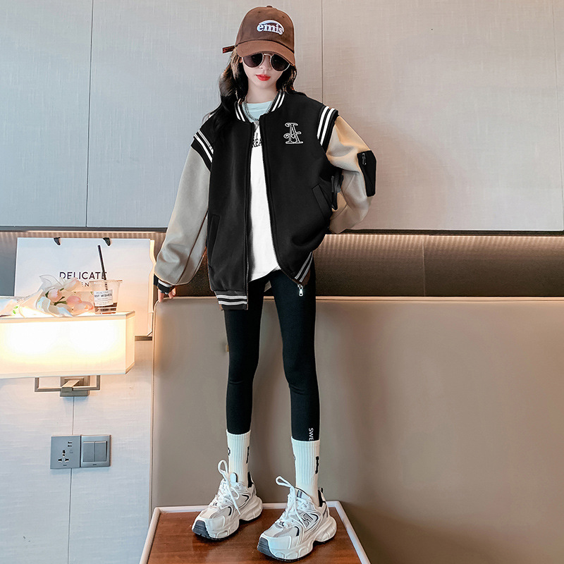 남학생 가을 코트 2024 새로운 어린이 프라이드 스트리트 중 큰 어린이 재킷 탑 서양식 가을 야구 세트 트렌디스토어 가기