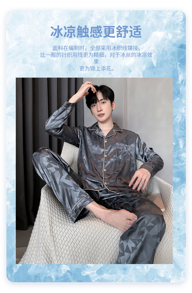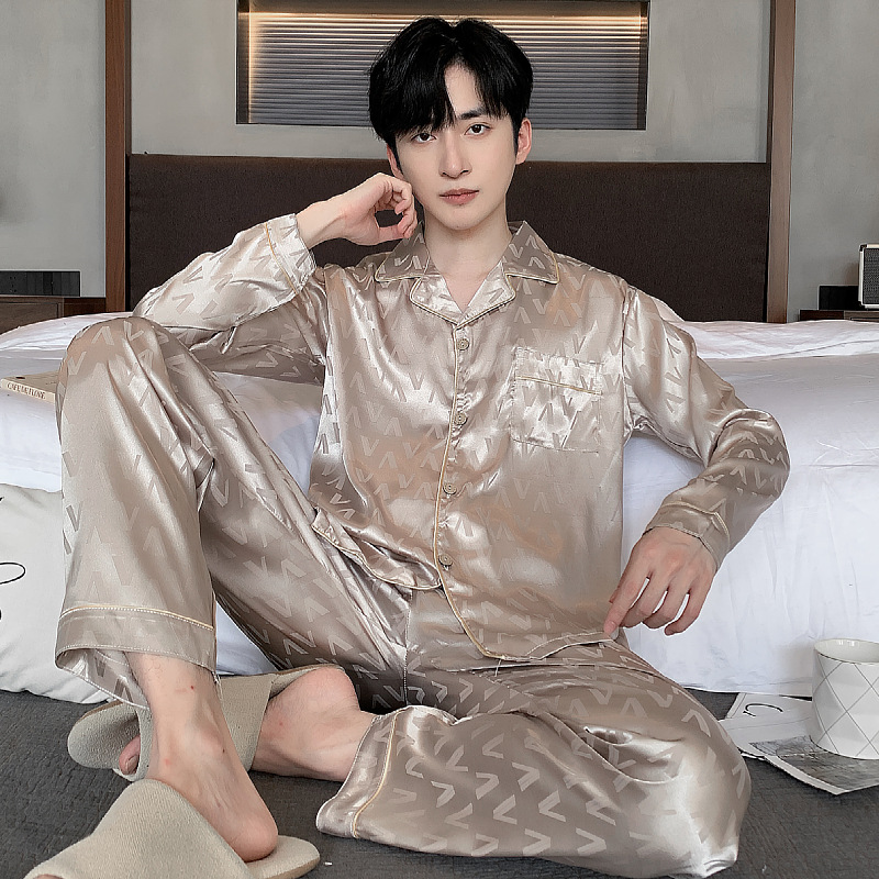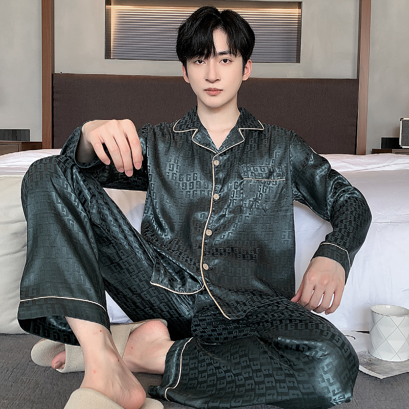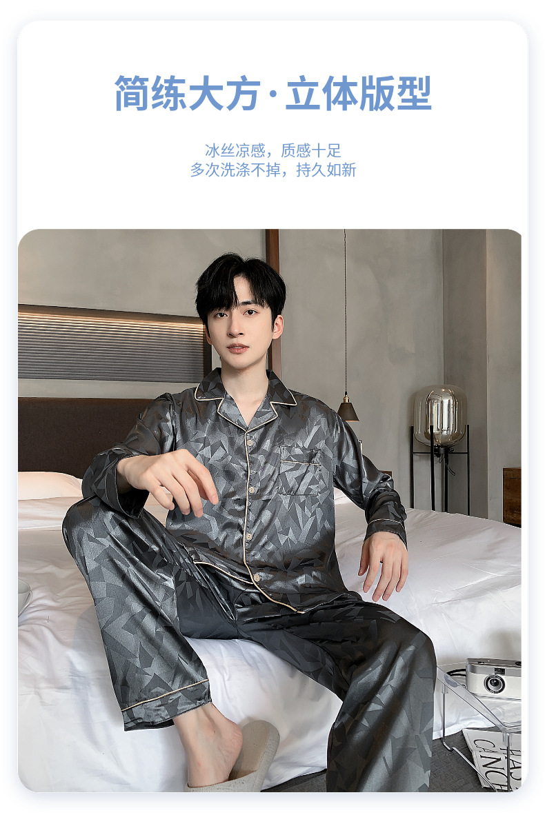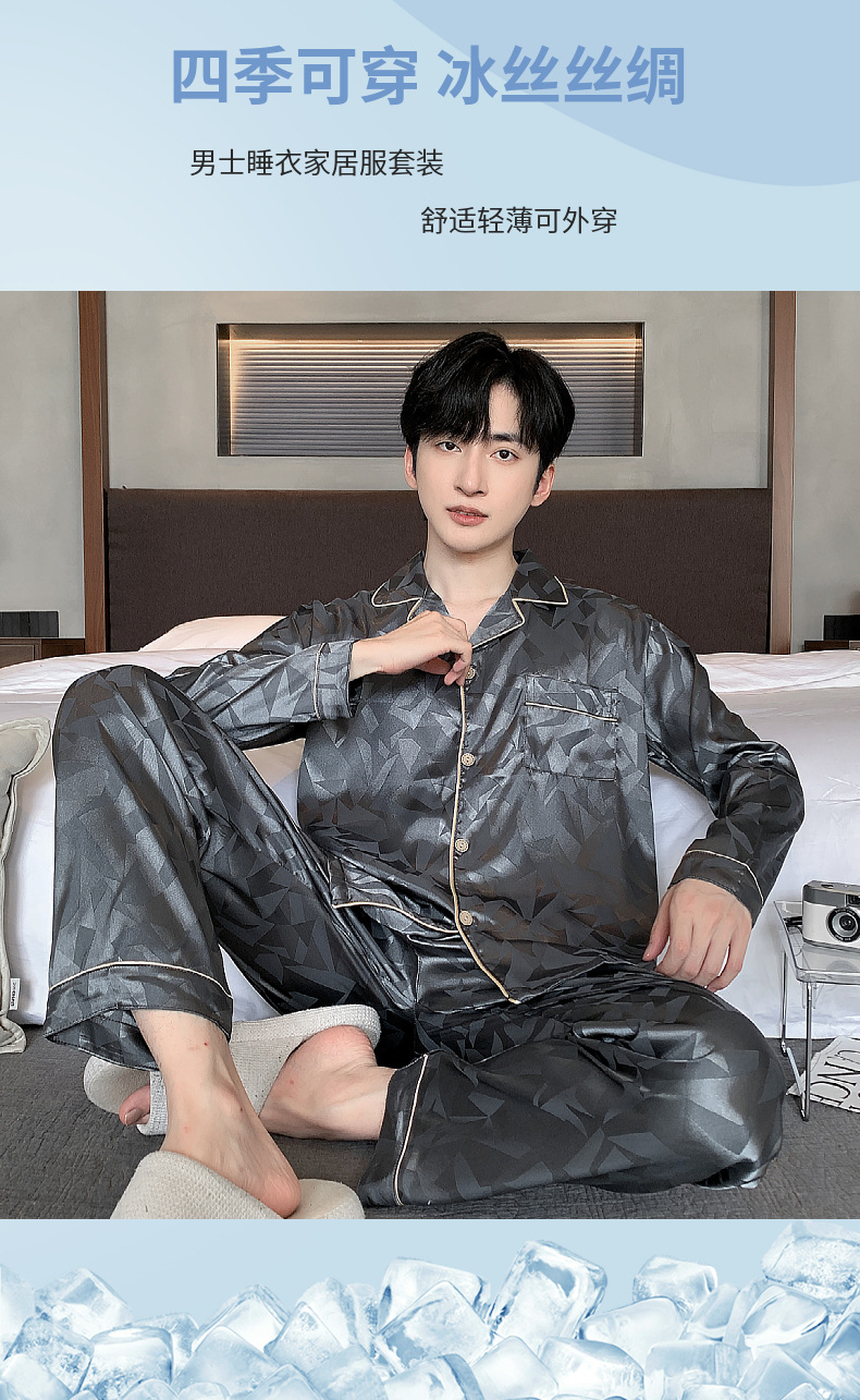 남자 잠옷 청소년 봄과 가을 명품 캐주얼 플러스 사이즈 아이스 실크 쿨 자카드 아이스 실크 긴 소매 홈 옷스토어 가기