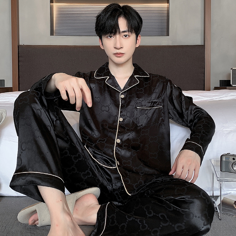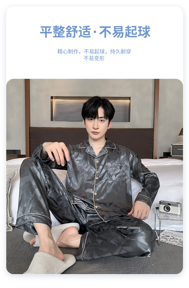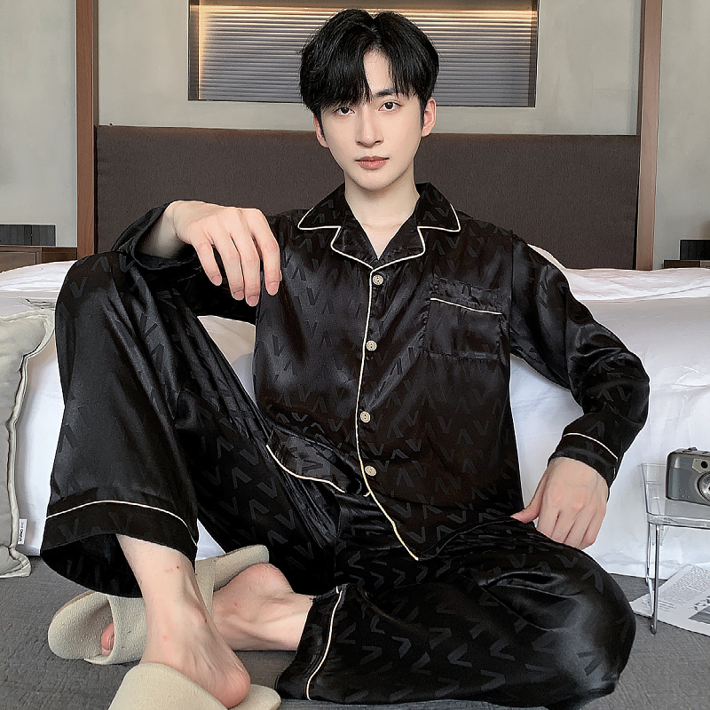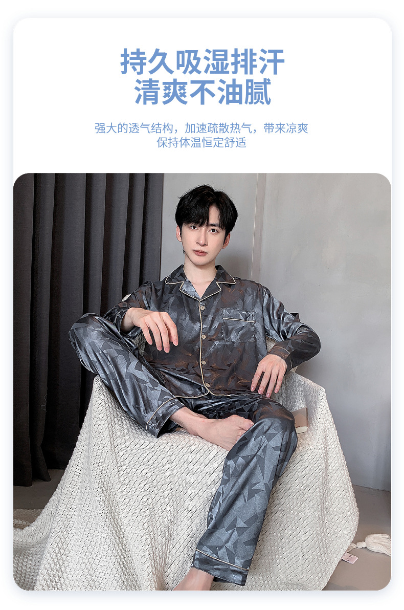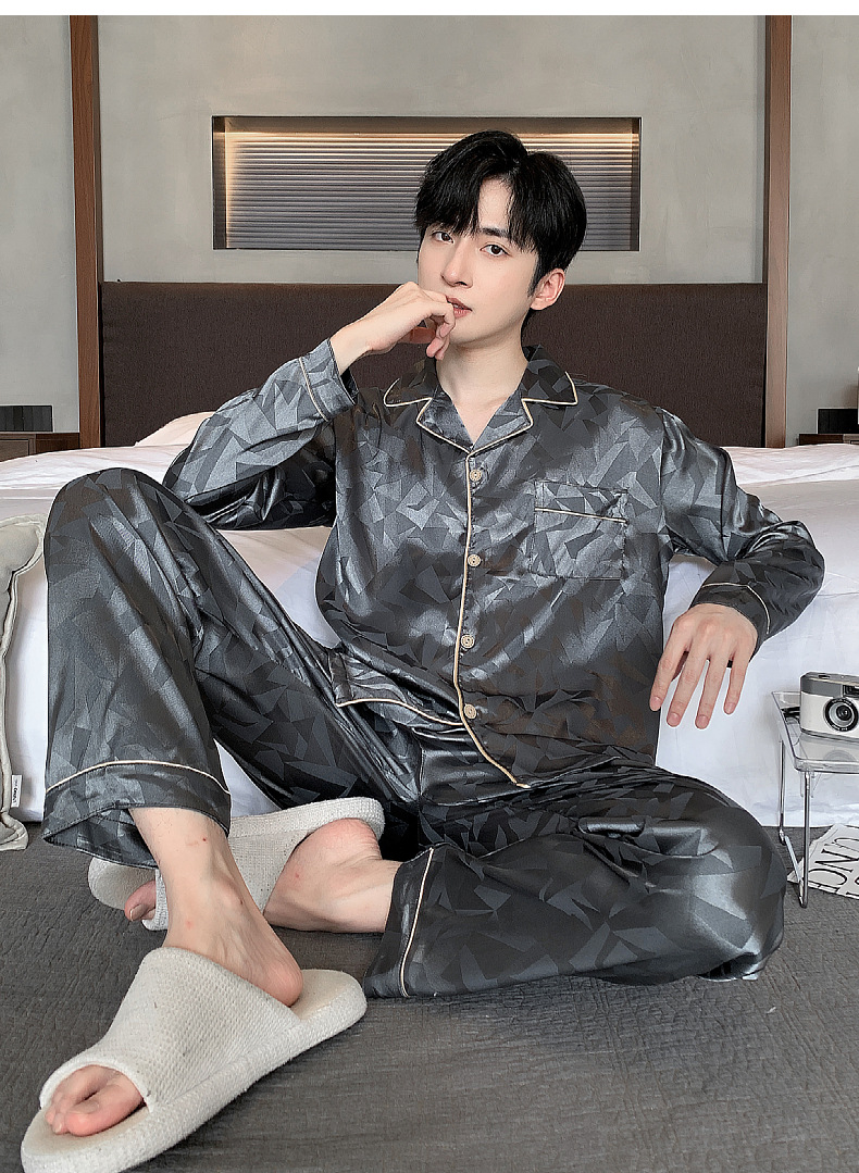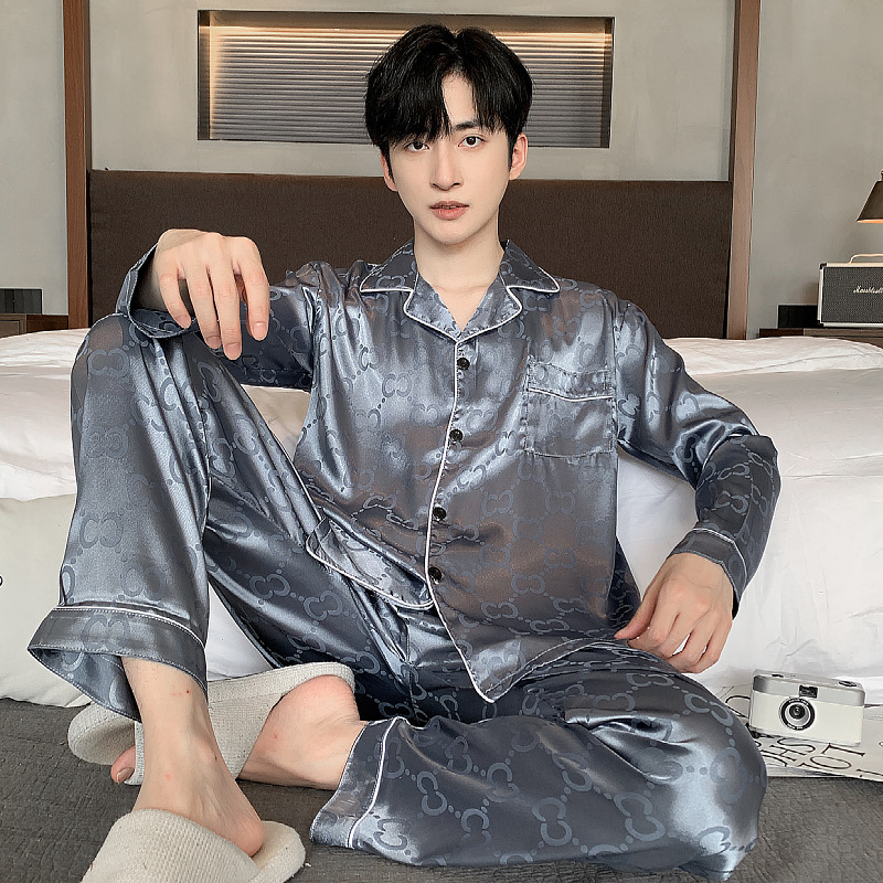 남자 잠옷 청소년 봄과 가을 명품 캐주얼 플러스 사이즈 아이스 실크 쿨 자카드 아이스 실크 긴 소매 홈 옷스토어 가기