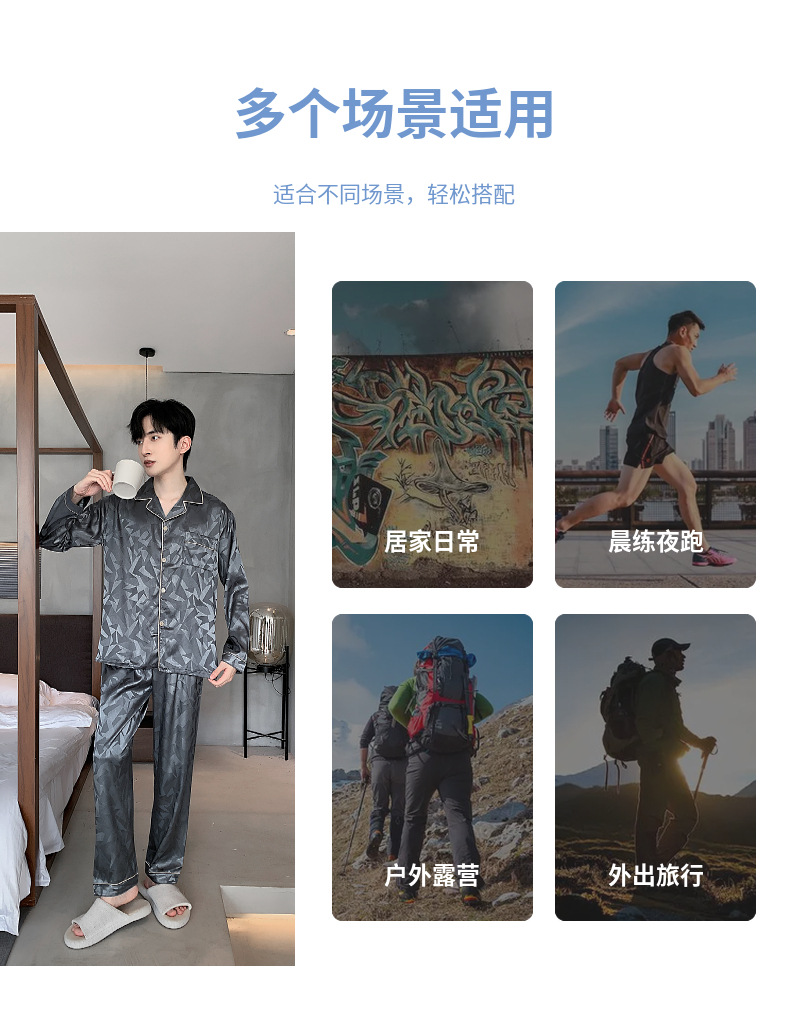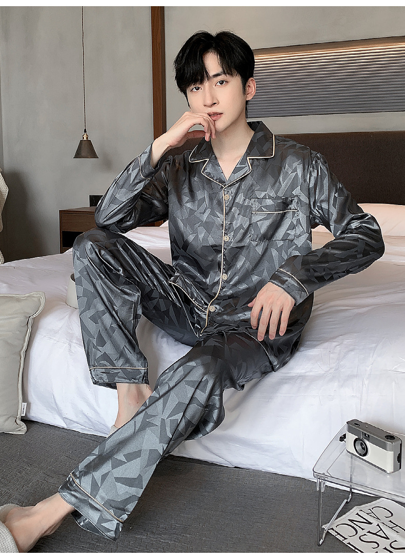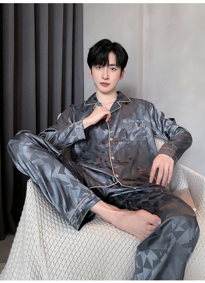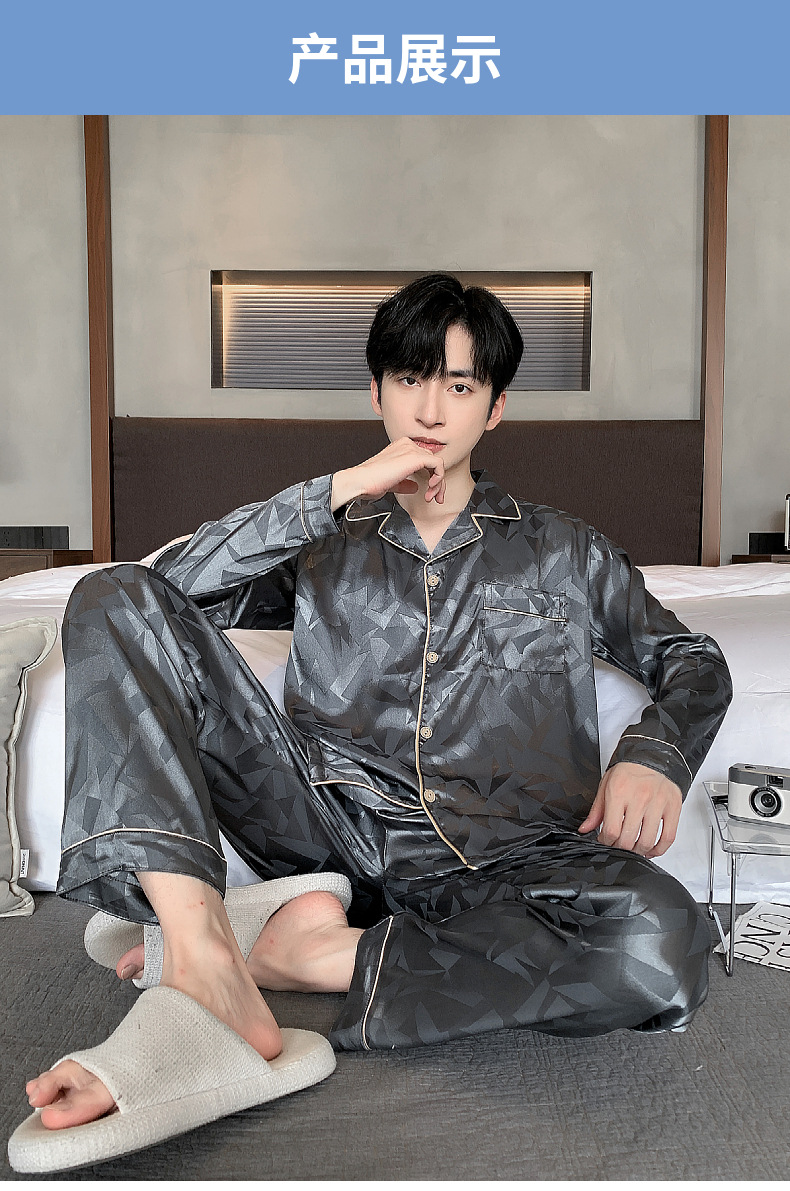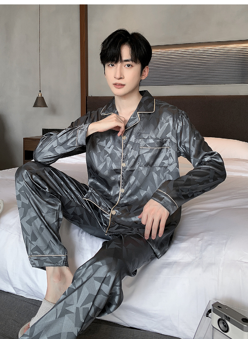 남자 잠옷 청소년 봄과 가을 명품 캐주얼 플러스 사이즈 아이스 실크 쿨 자카드 아이스 실크 긴 소매 홈 옷스토어 가기