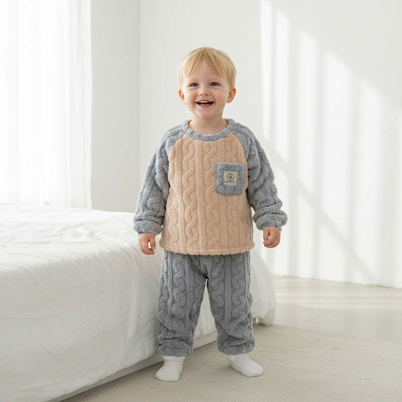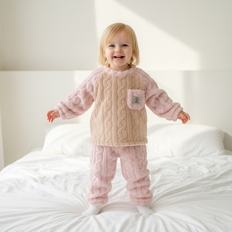 작은 돼지 데이비드 2025 가을 겨울 편안한 면 벨벳 자카드 홈웨어 남녀 아기용 풀오버 플리스 잠옷스토어 가기