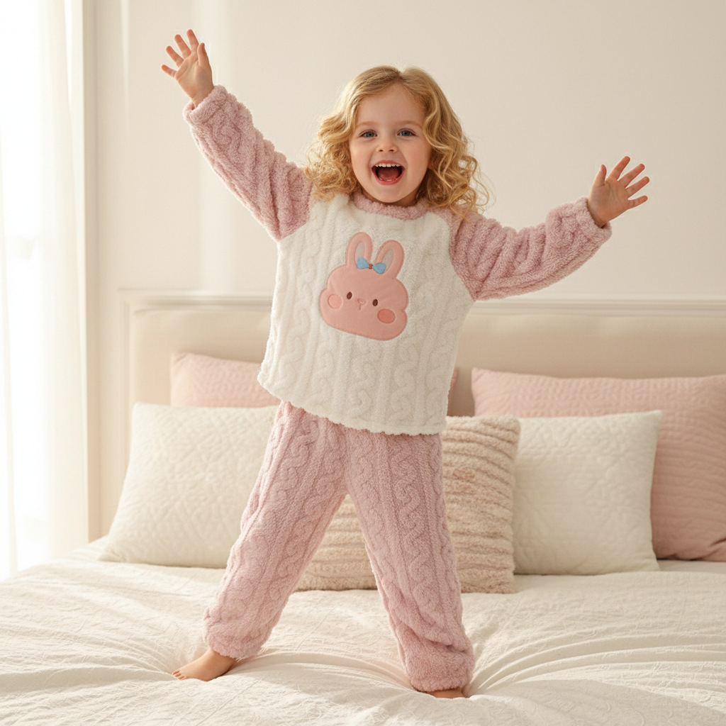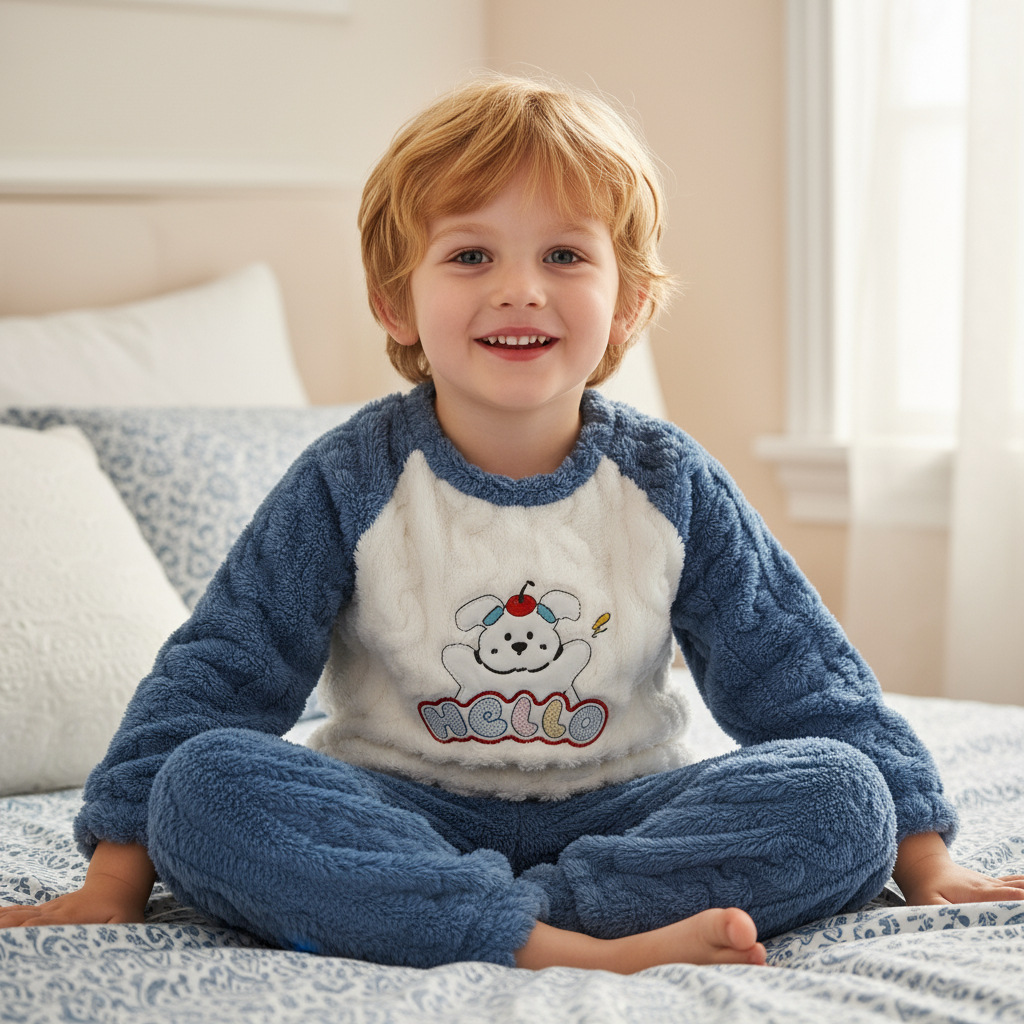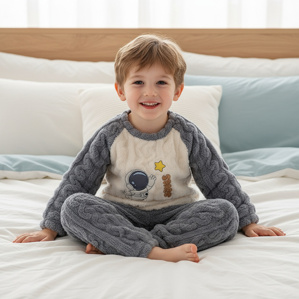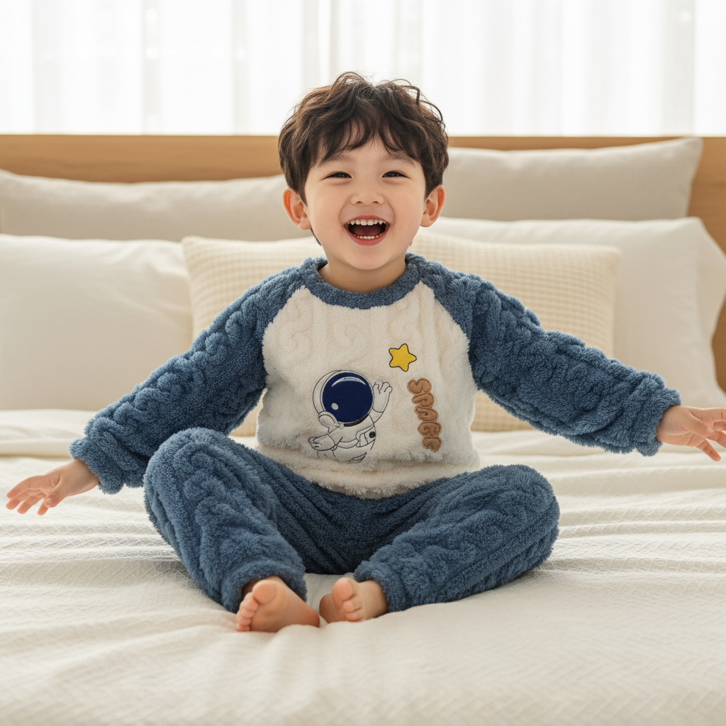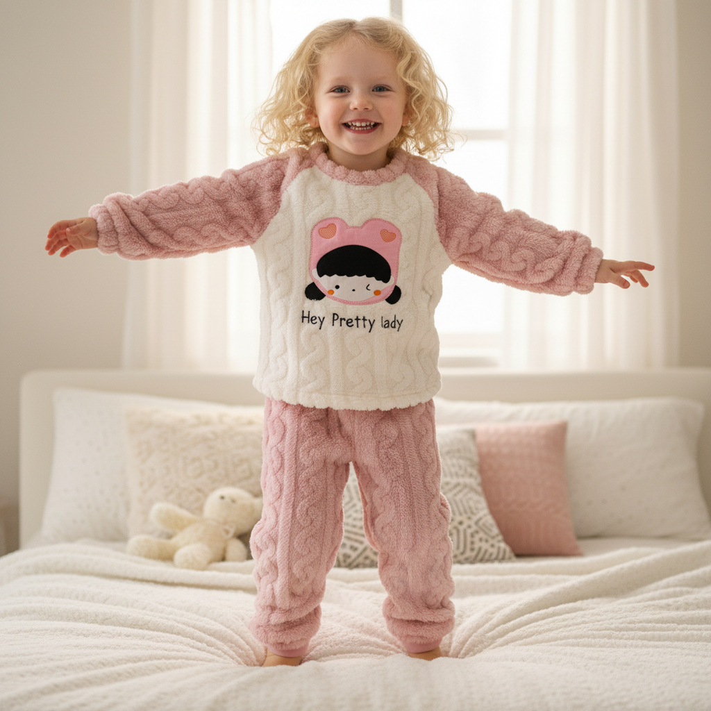 작은 돼지 데이비드 2025 가을 겨울 편안한 면 벨벳 자카드 홈웨어 남녀 아기용 풀오버 플리스 잠옷