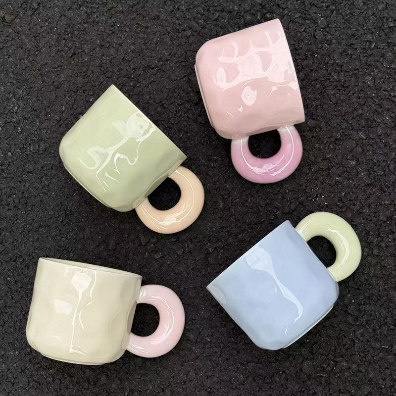 배색 큰 귀 모양 컵 가정용 세라믹 머그컵 귀여운 학생 커플 음료컵 커피컵 트렌디하고 창의적인 컵스토어 가기