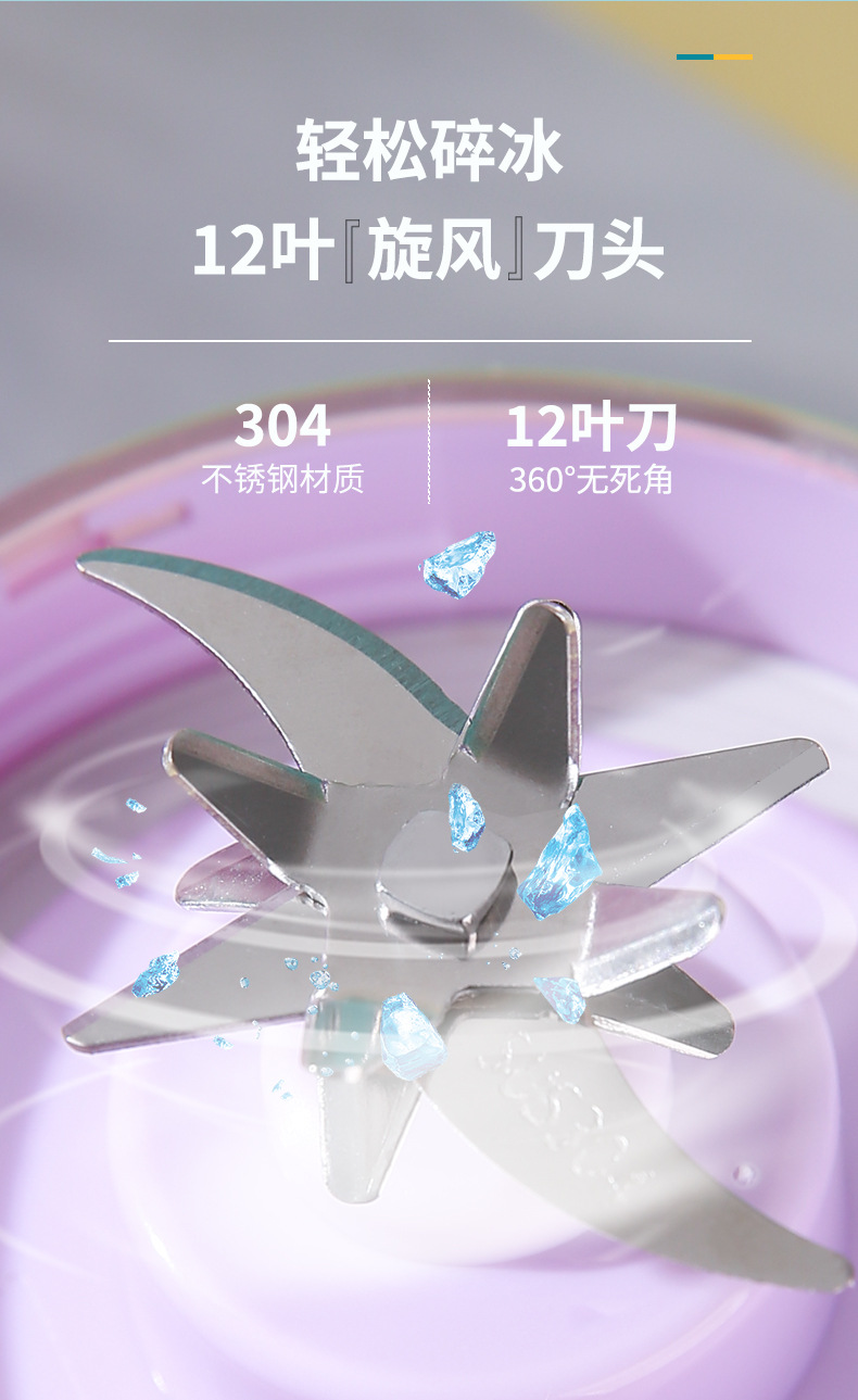 국경 간 새로운 주스 추출기 가정용 얼음 분쇄 주스 컵 USB 충전식 휴대용 주스 기계 야외 텀블러 12 칼
