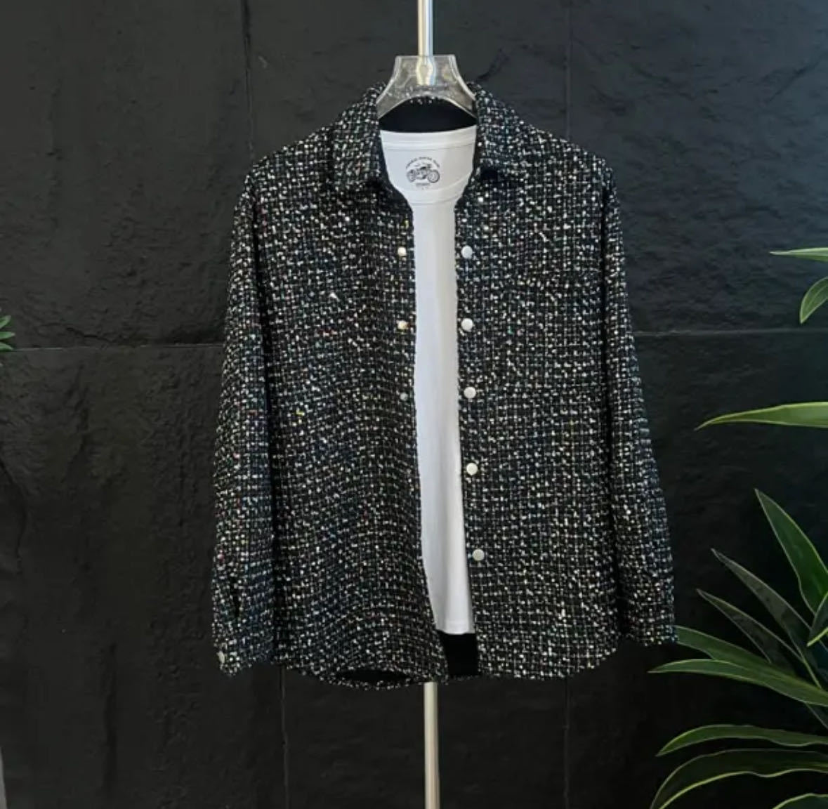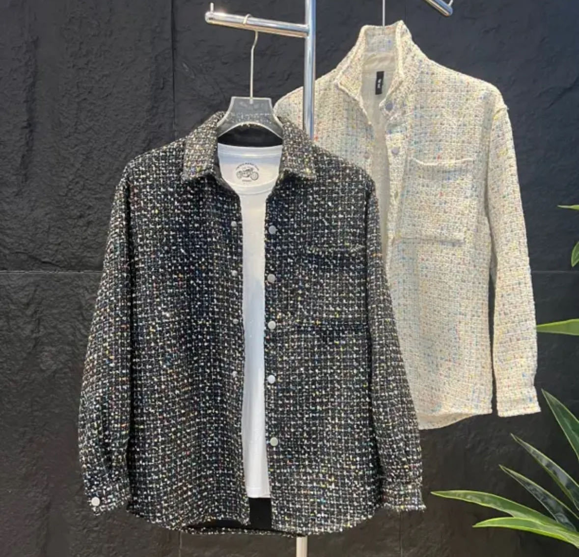 새로운 가을 남자 캐주얼 샤넬 스타일 유행 긴 소매 재킷 남자 기질 빛 럭셔리 올 매치 유행 셔츠스토어 가기
