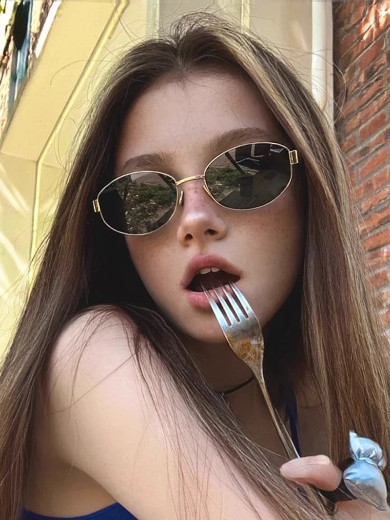 새로운 유럽과 미국의 패션 타원형 하이 센스 선글라스 야외 승마 유행 남성과 여성의 자외선 차단 선글라스