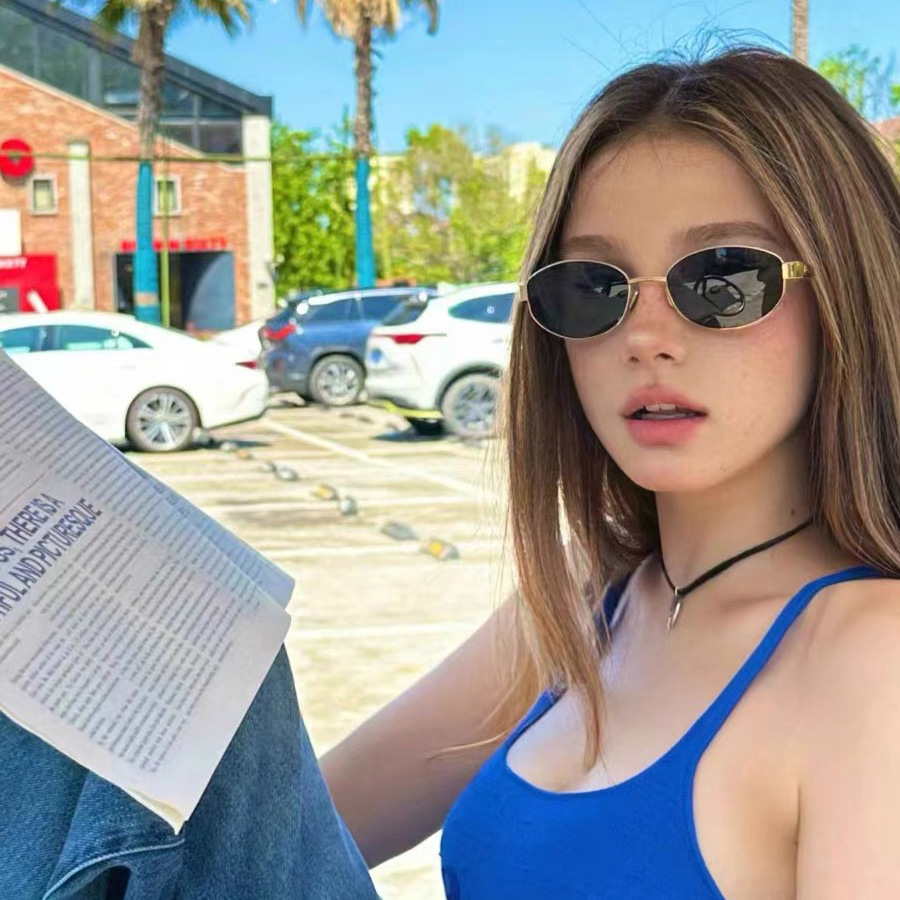 새로운 유럽과 미국의 패션 타원형 하이 센스 선글라스 야외 승마 유행 남성과 여성의 자외선 차단 선글라스스토어 가기