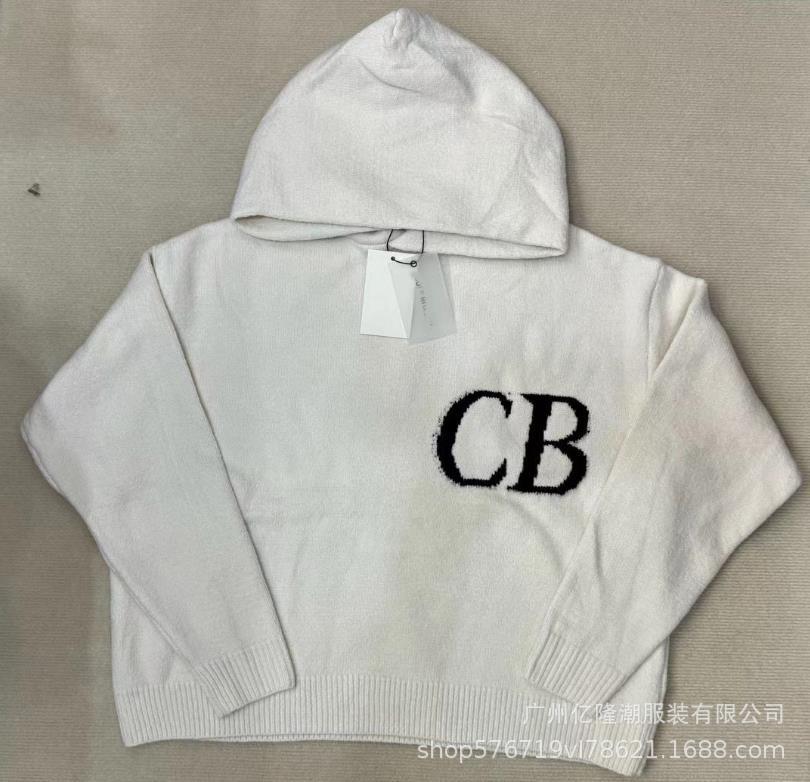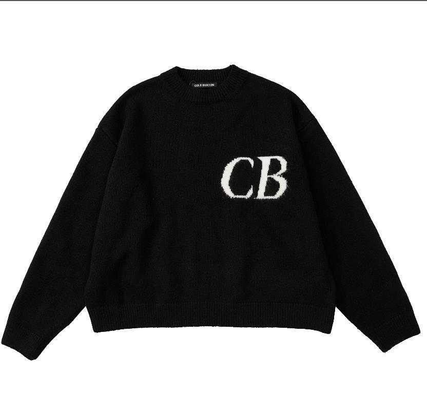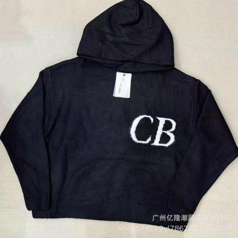 미국 트렌디 브랜드 미니멀리스트 문자 CB 자카드 루즈 후드 풀오버 스웨터 하이 스트리트 남성 루즈 울 스웨터스토어 가기