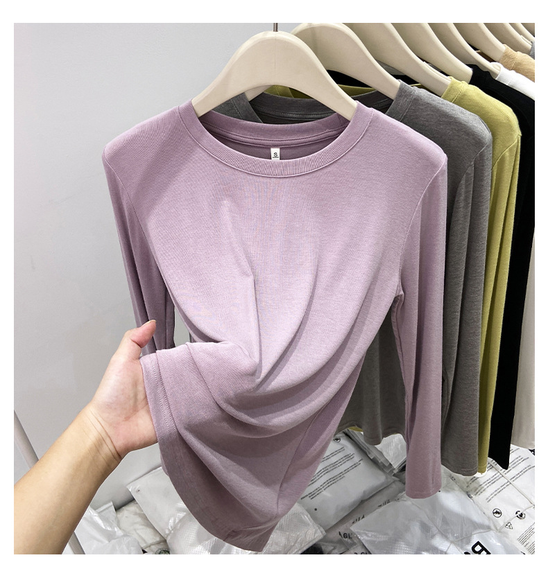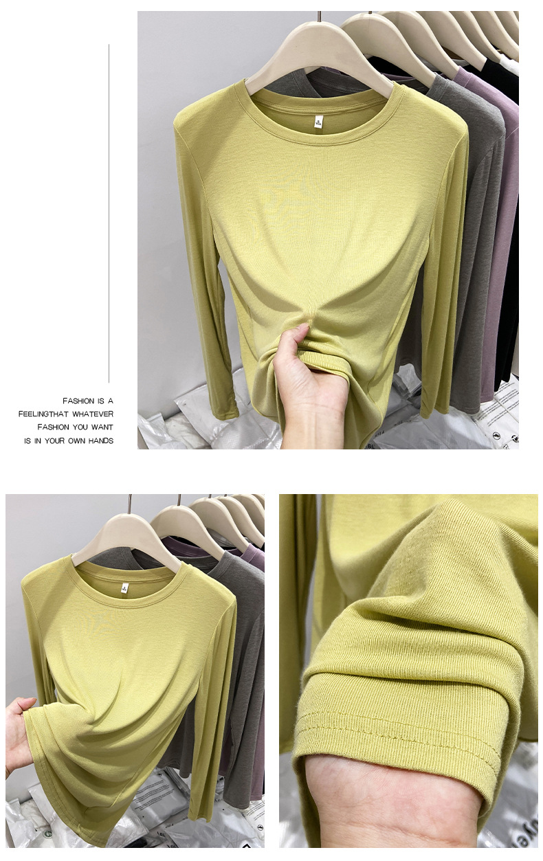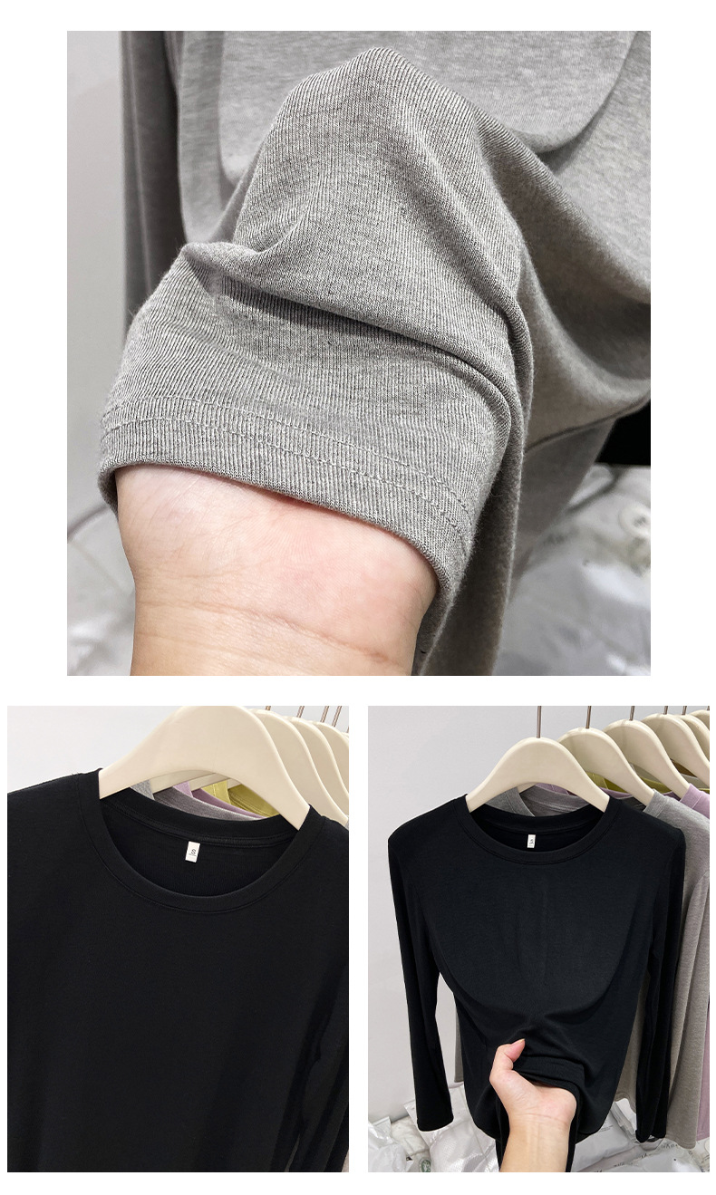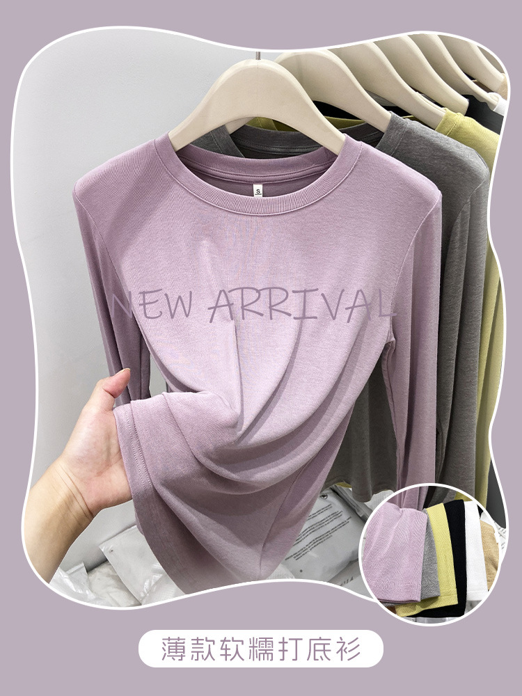 유럽산 마스크 티셔츠 여성용 소프트 왁스베이스 셔츠 얇은 단순 올 매치 최고 가을 기본 티셔츠 내부 셔츠스토어 가기
