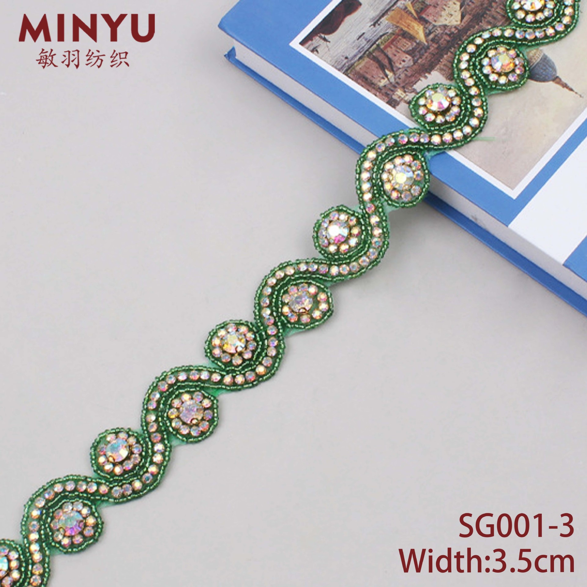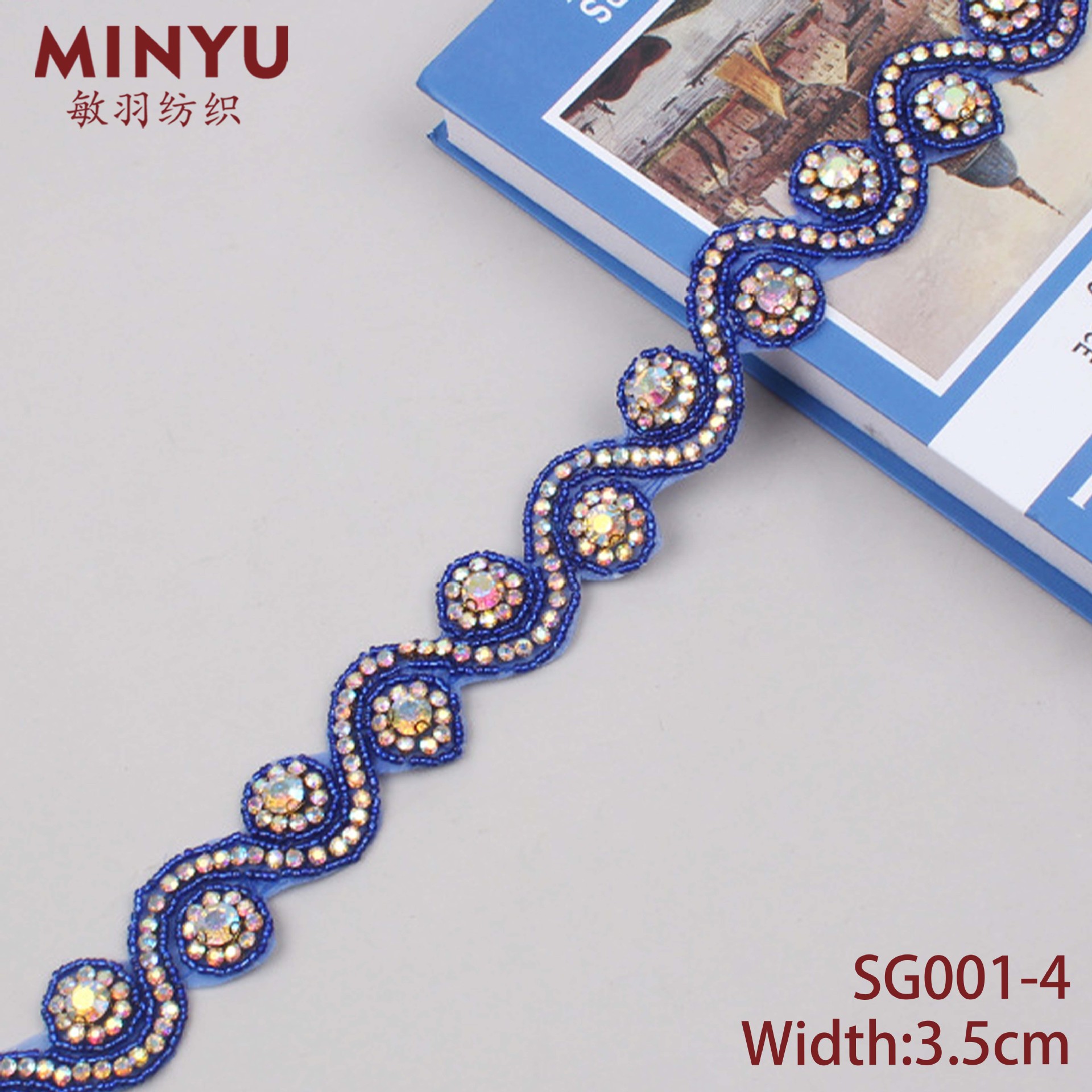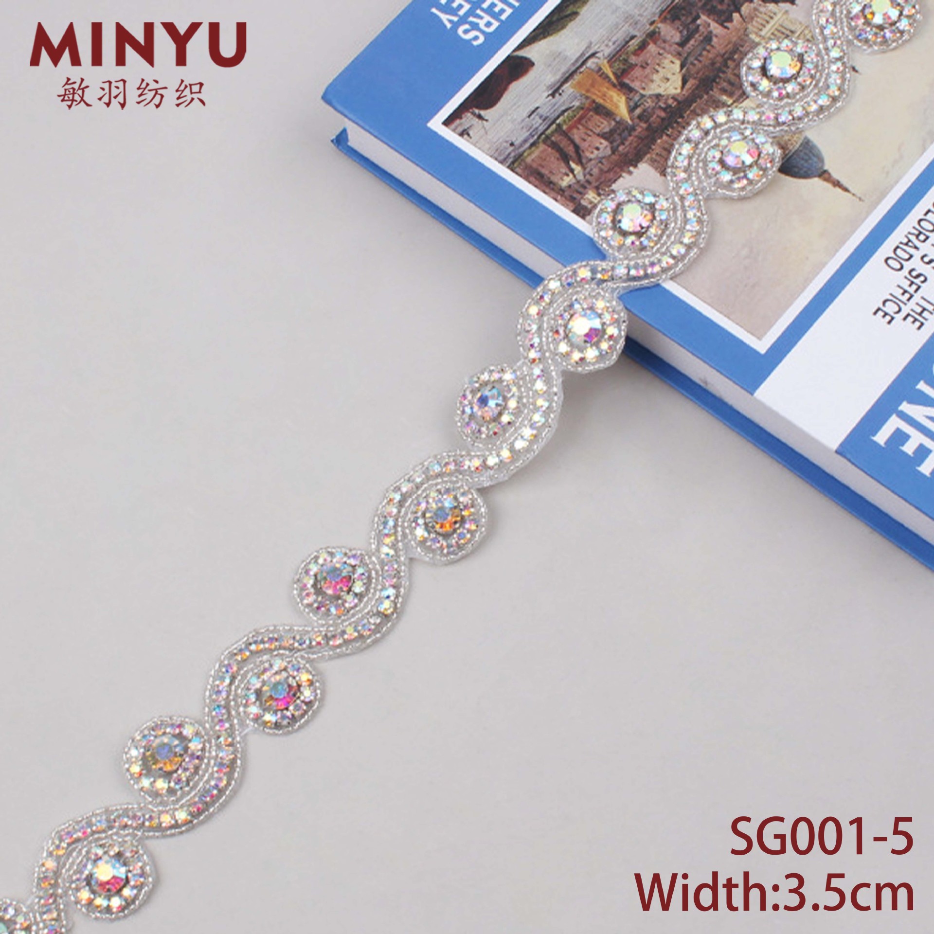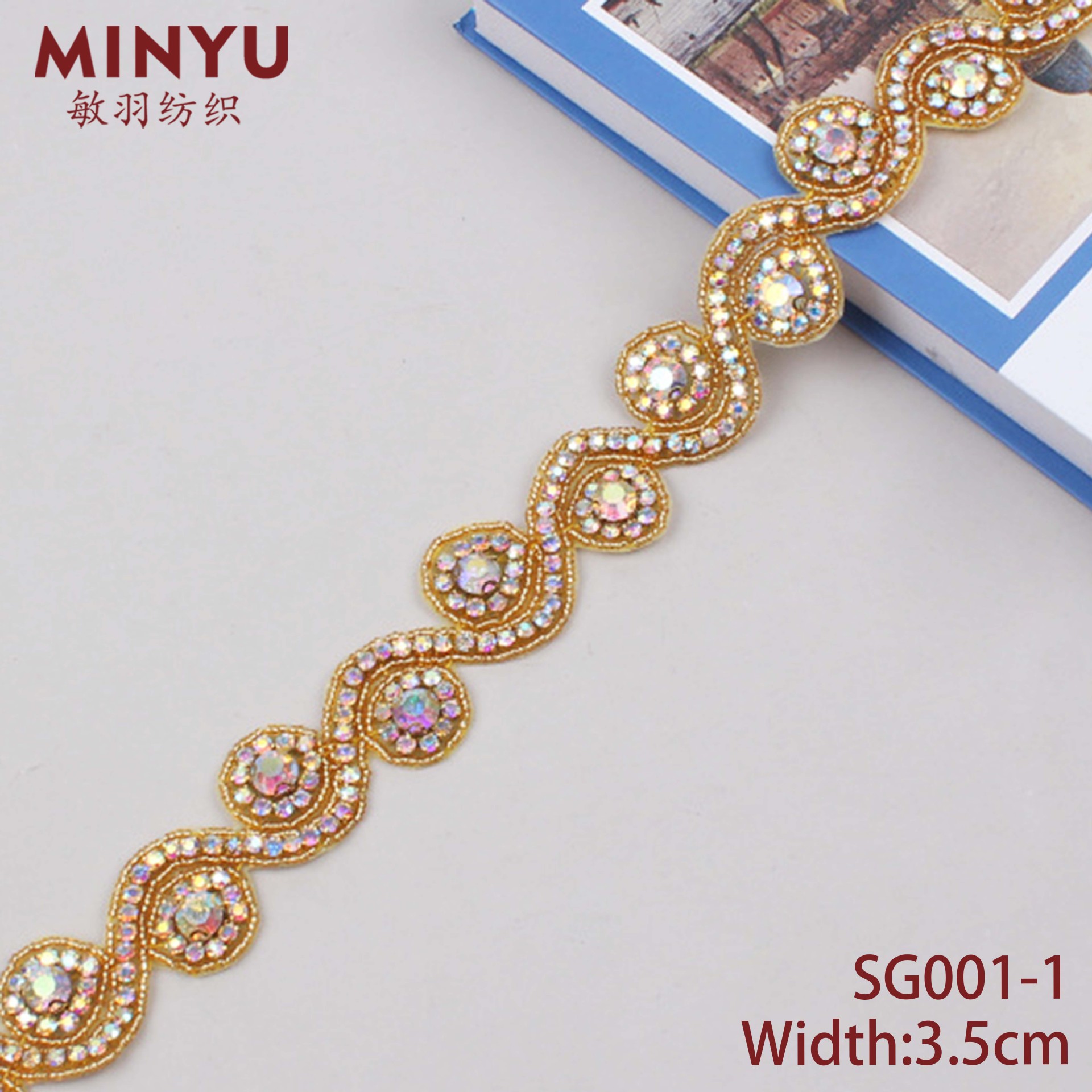 Minyu 3.5cm 넓은 수동 접착 체인 DIY 구슬 다이아몬드 봉제 레이스 의류 커튼 백에 적합