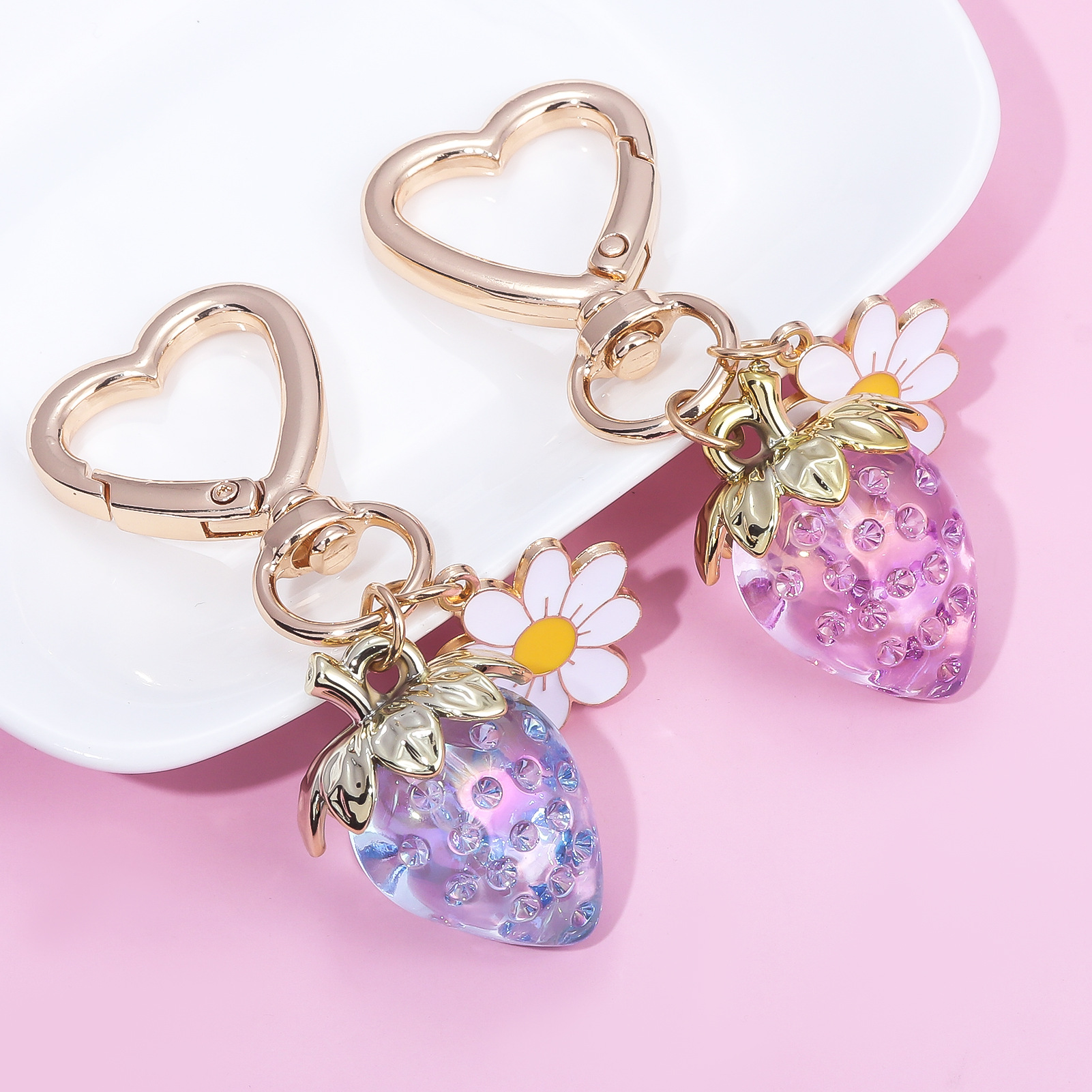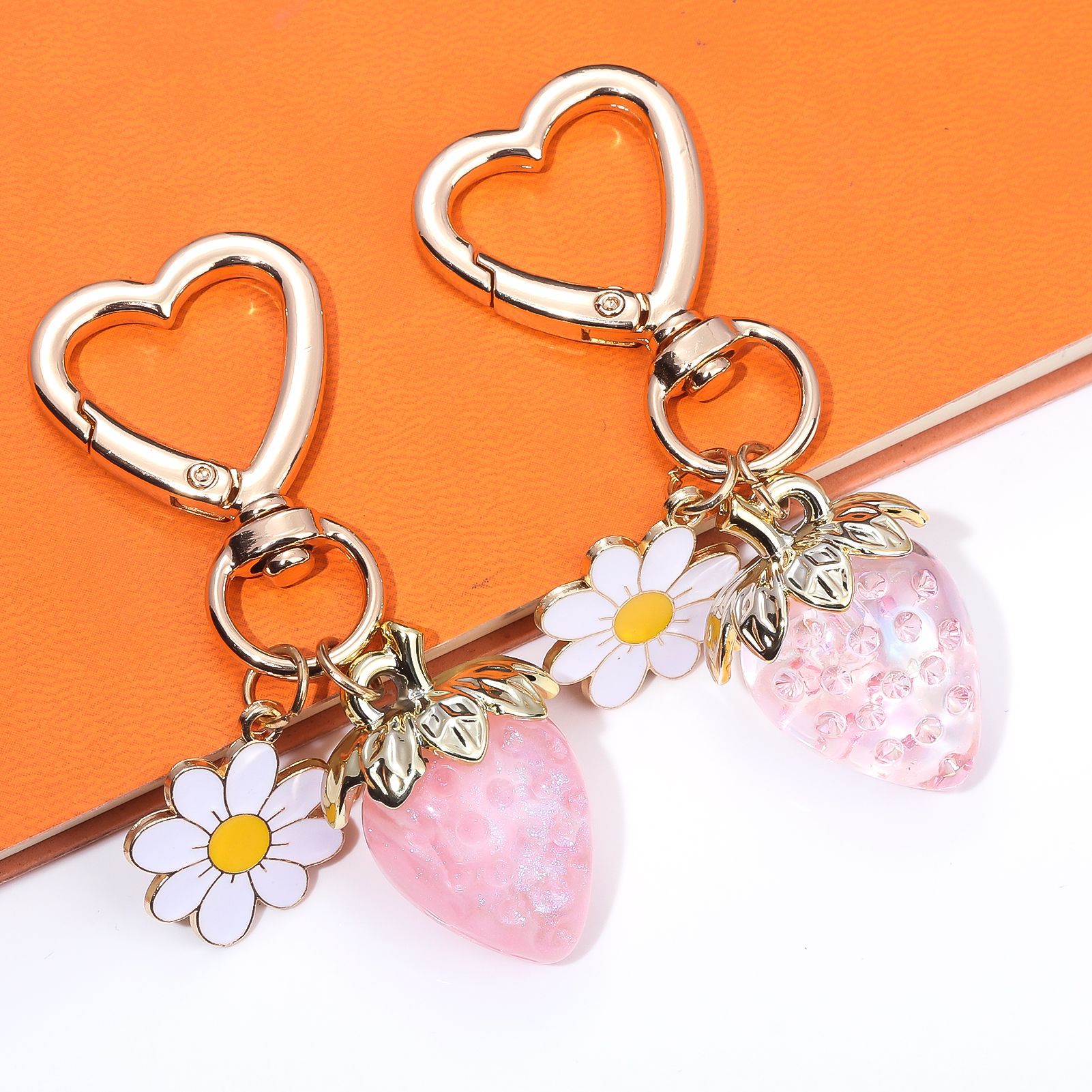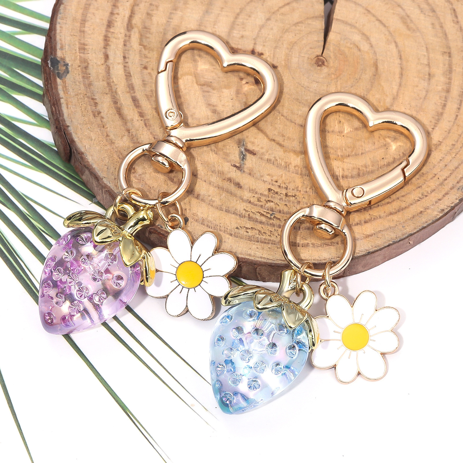INS 인터넷 축하 여성 귀여운 소녀 하트 달콤한 딸기 하트 모양의 키 체인 창조적 인 해바라기 가방 보석 펜던트스토어 가기