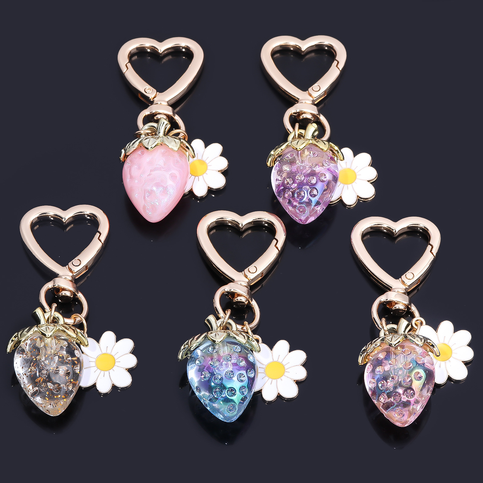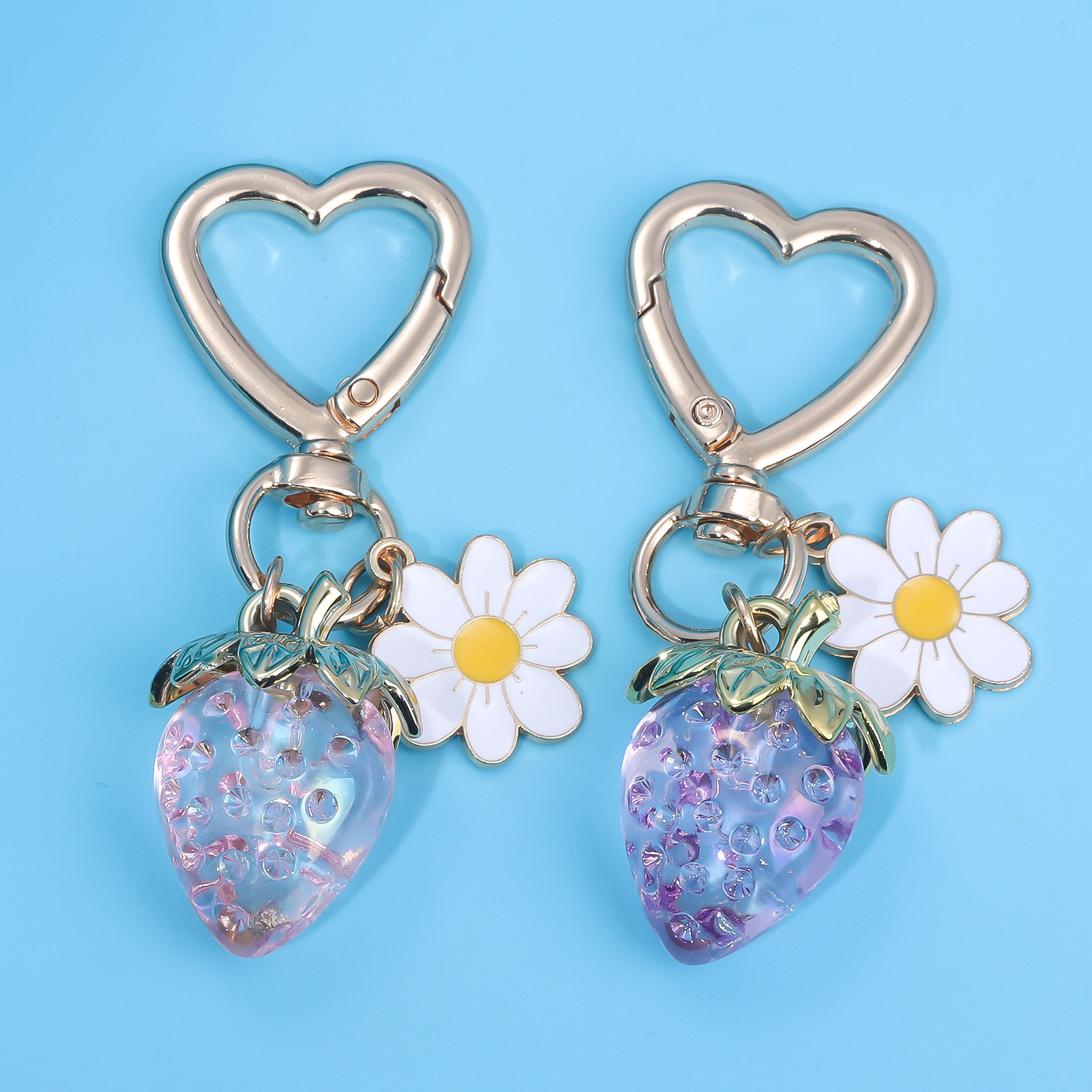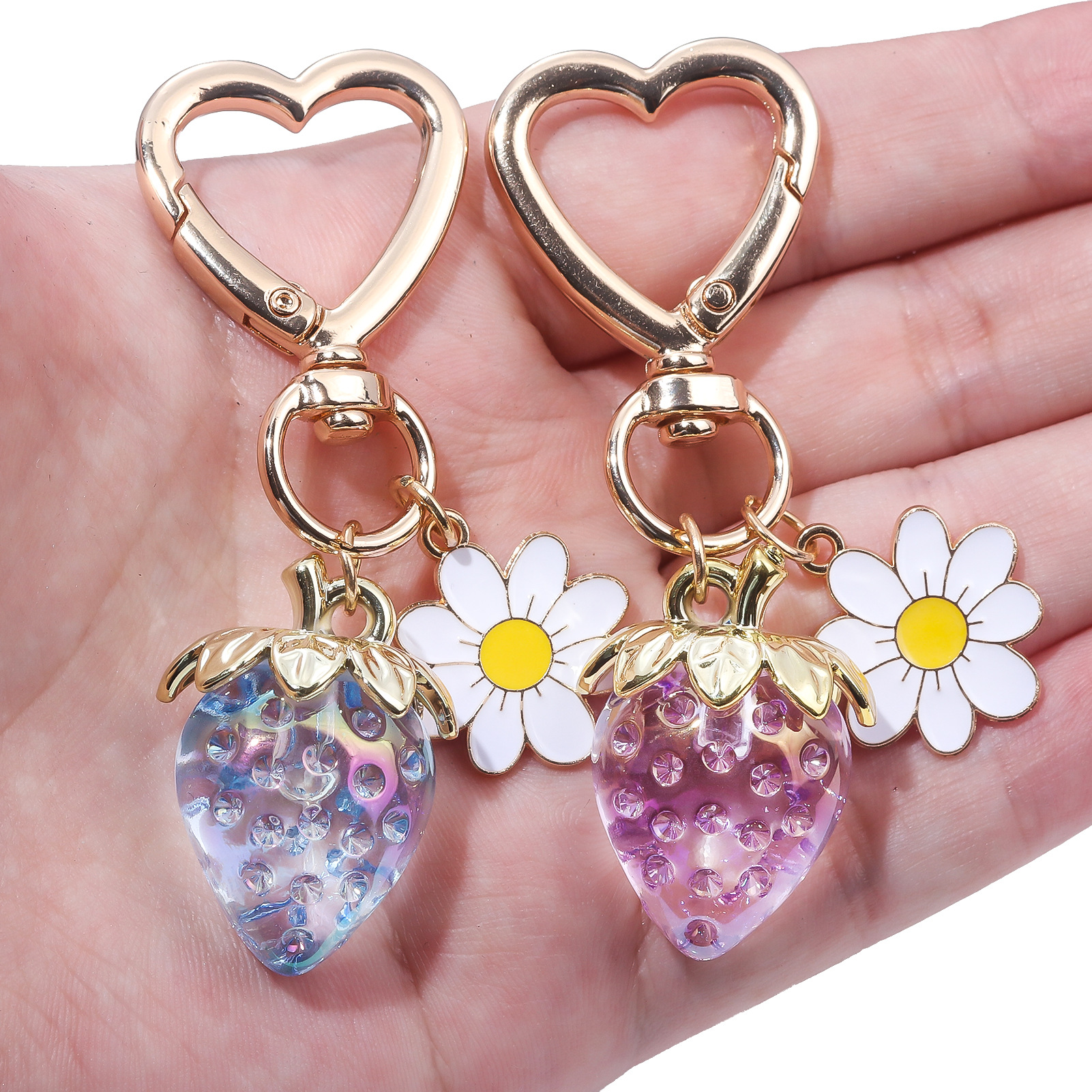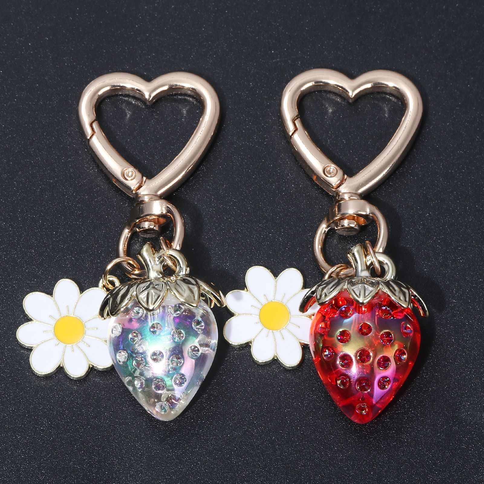 INS 인터넷 축하 여성 귀여운 소녀 하트 달콤한 딸기 하트 모양의 키 체인 창조적 인 해바라기 가방 보석 펜던트