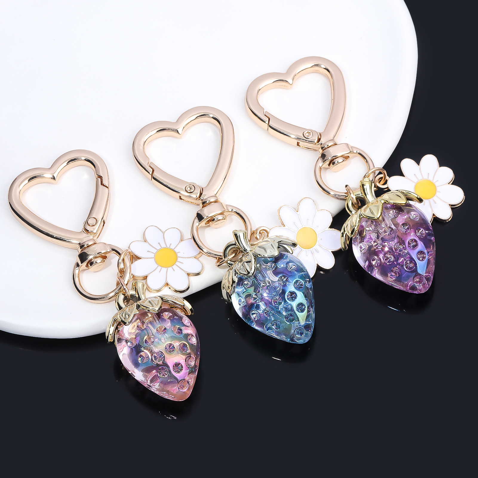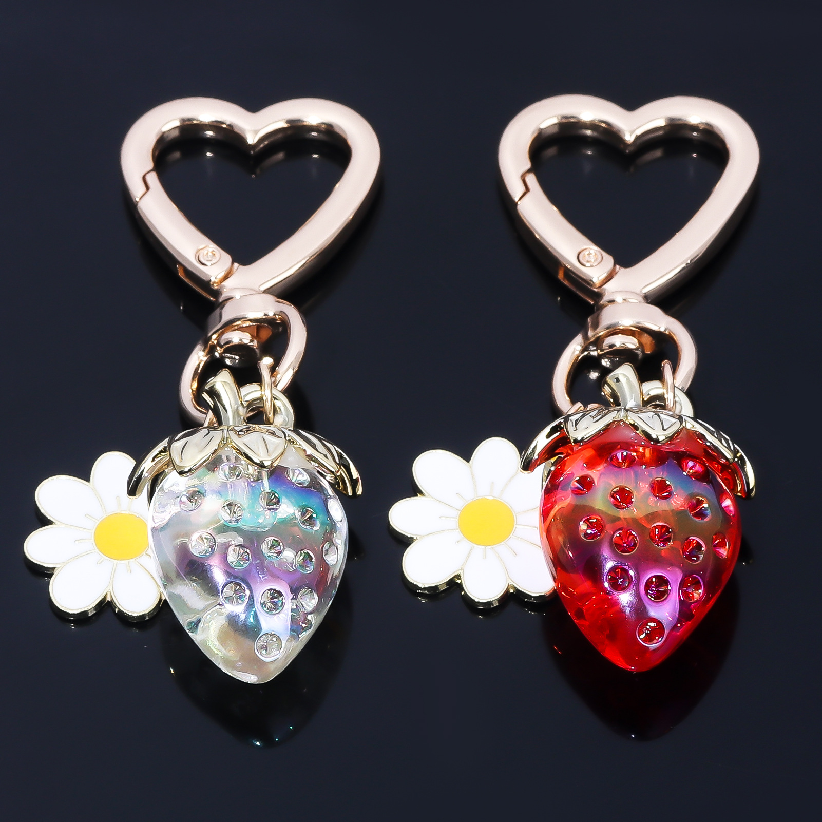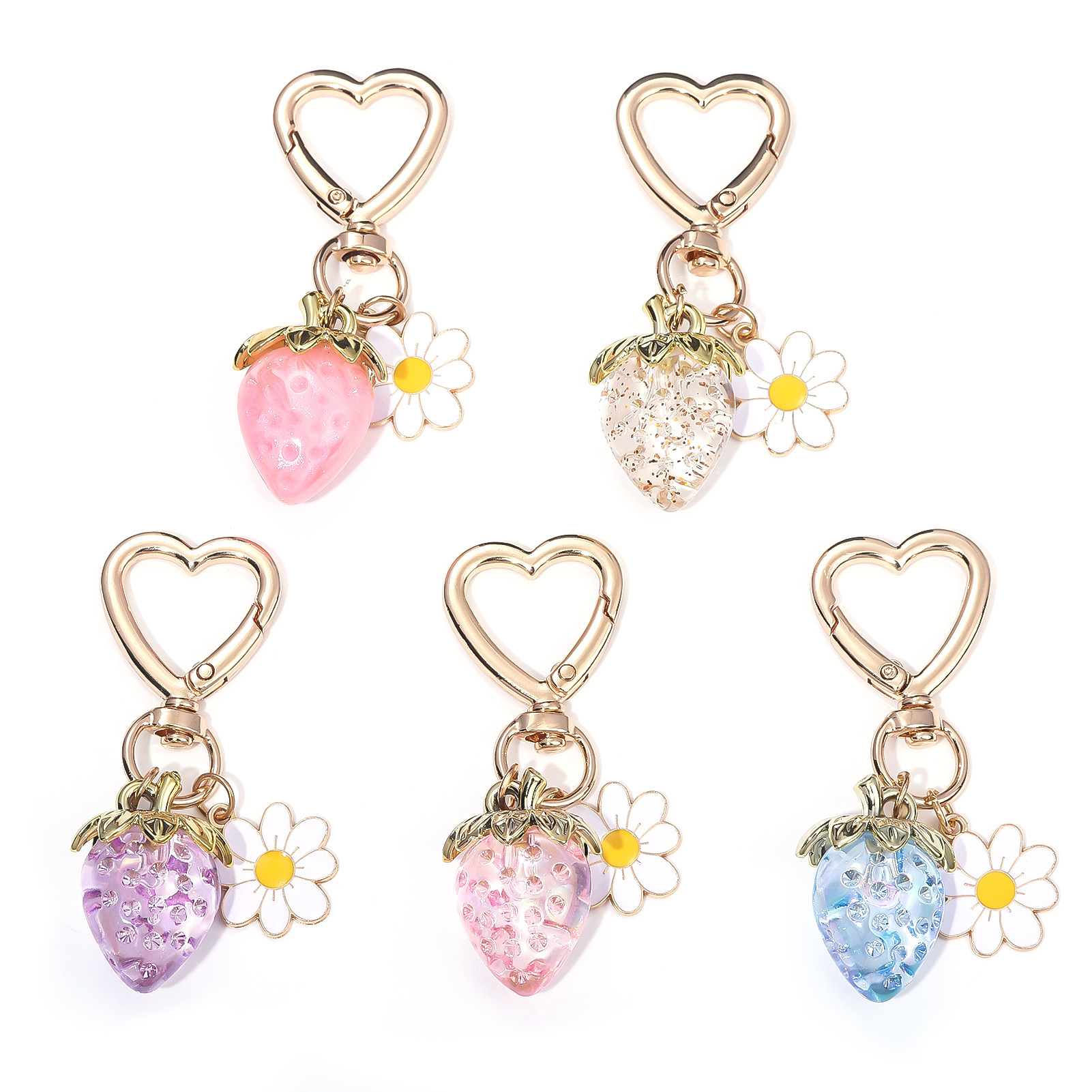 INS 인터넷 축하 여성 귀여운 소녀 하트 달콤한 딸기 하트 모양의 키 체인 창조적 인 해바라기 가방 보석 펜던트