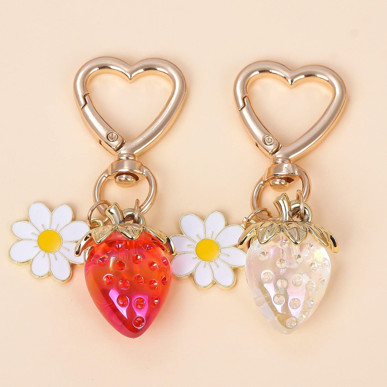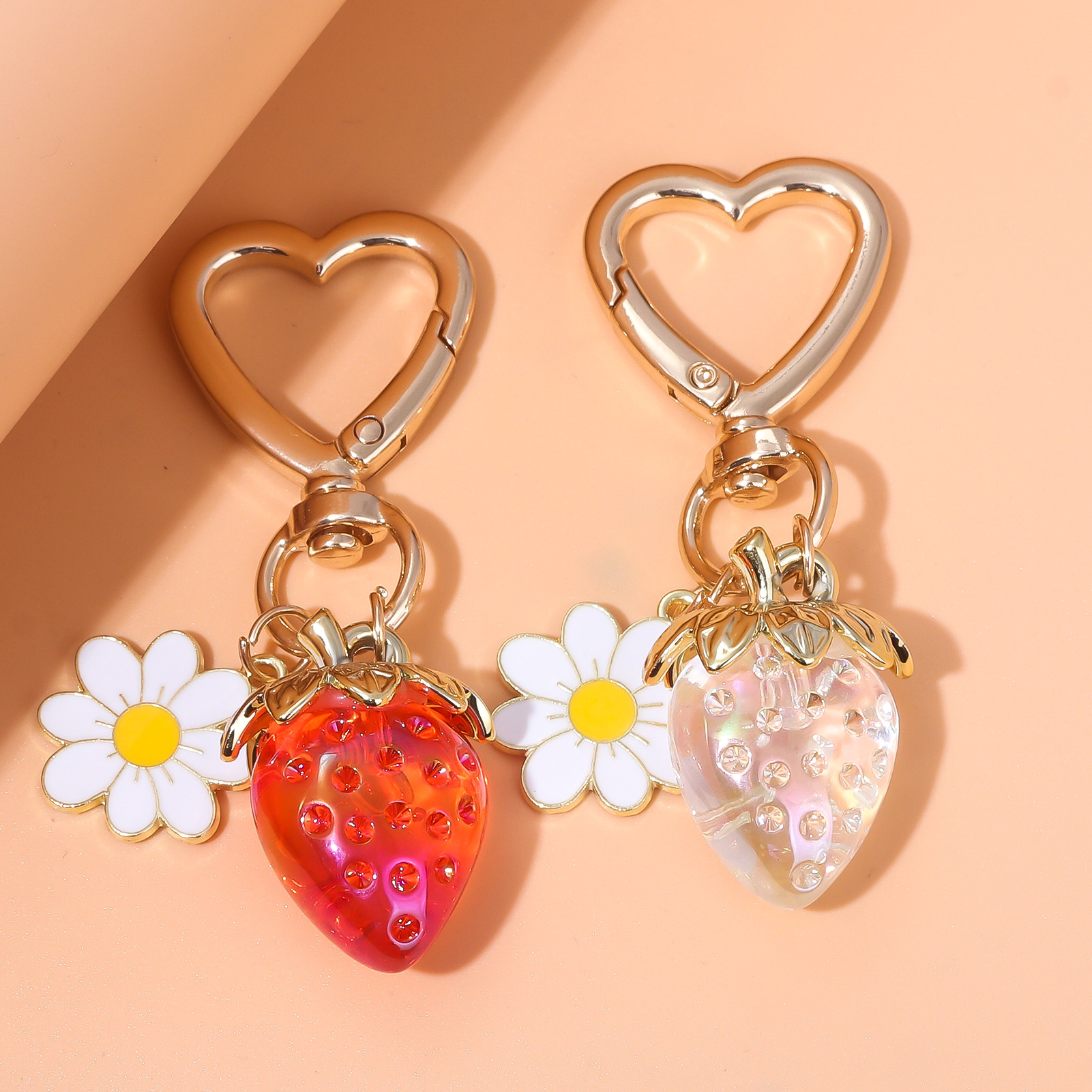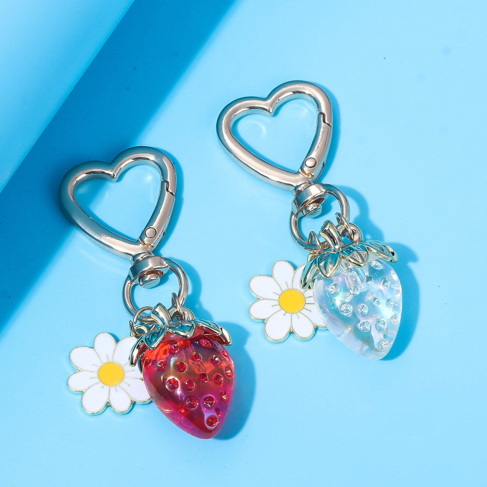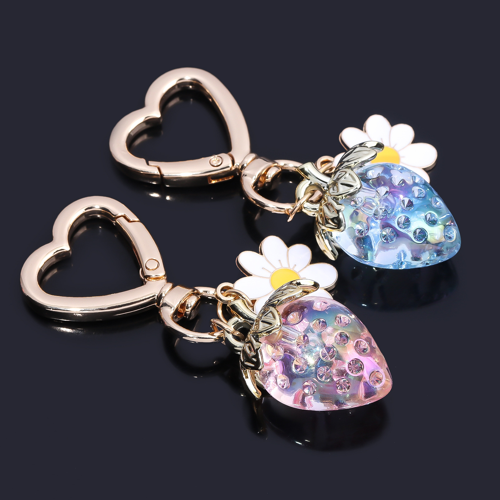 INS 인터넷 축하 여성 귀여운 소녀 하트 달콤한 딸기 하트 모양의 키 체인 창조적 인 해바라기 가방 보석 펜던트