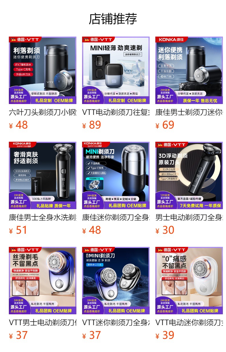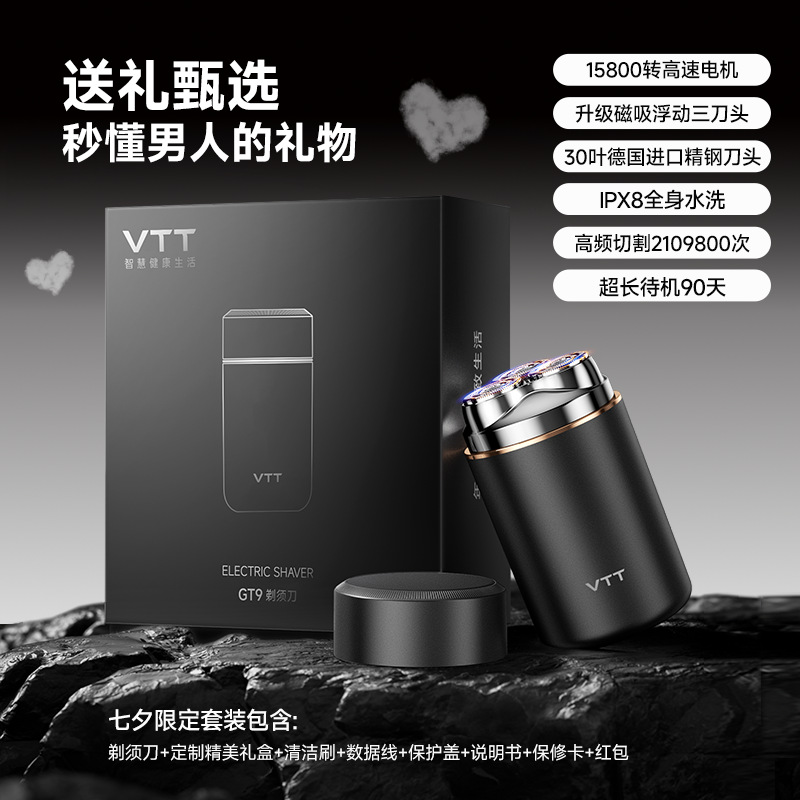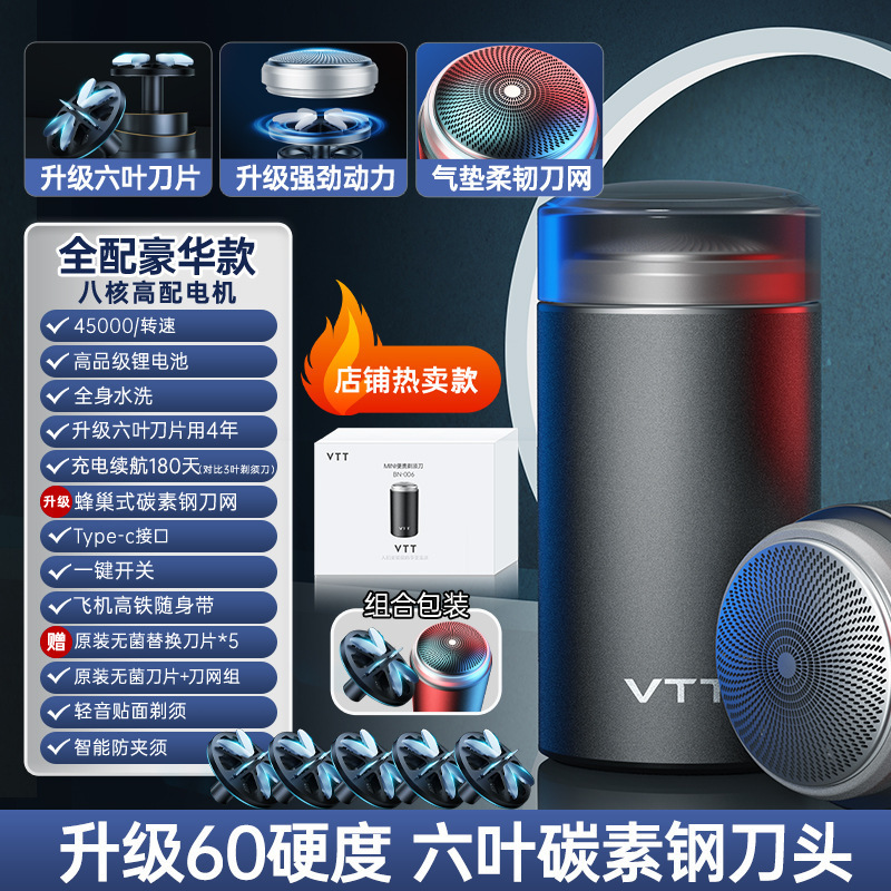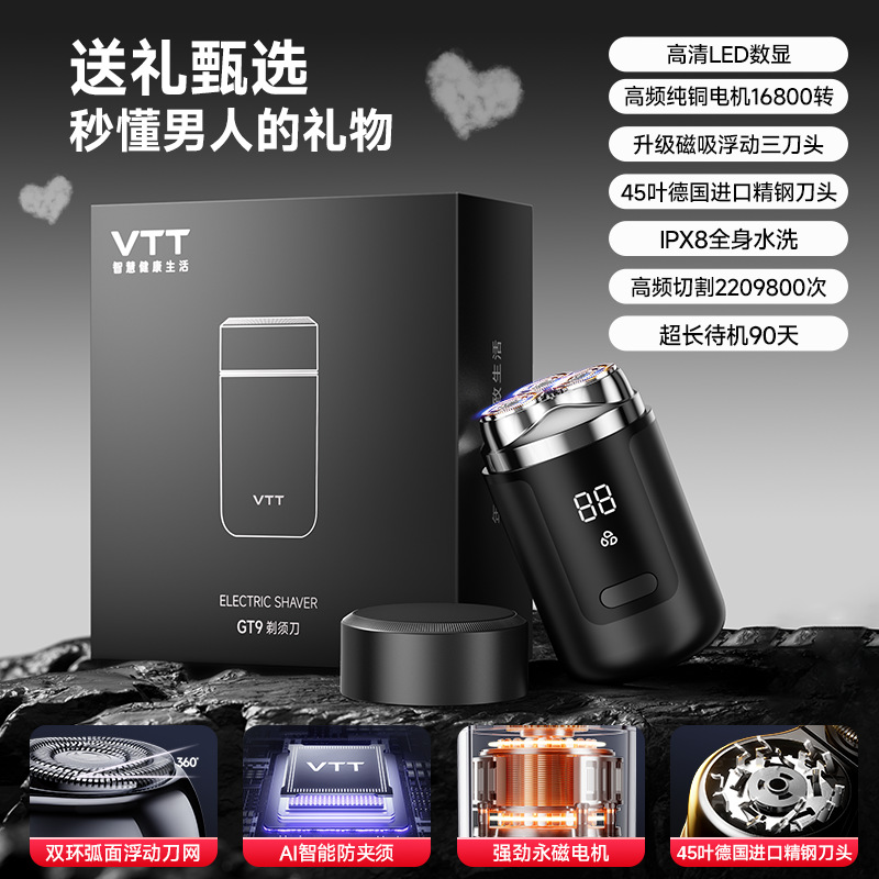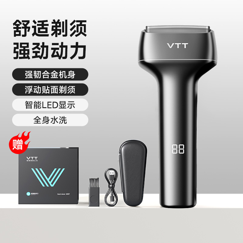 VTT 전기 면도기 왕복 미니 휴대용 남성 면도기 세척 가능한 베어러 나이프 선물 상자스토어 가기