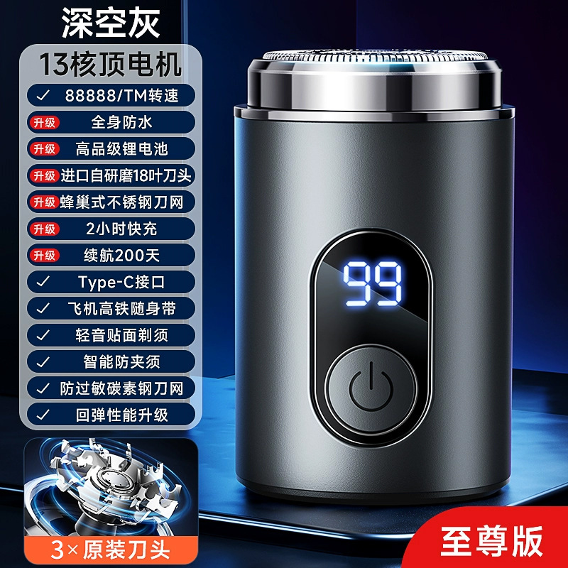 • 【VTT】GT9 - 그레이 - 3배 깨끗한 면도 + 3중날 헤드 + 건습식 겸용 면도 + Type-C 고속 충전 + 긴 배터리 수명