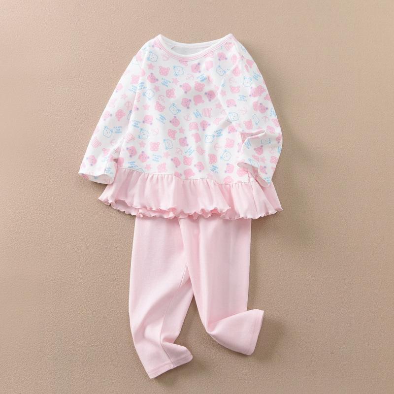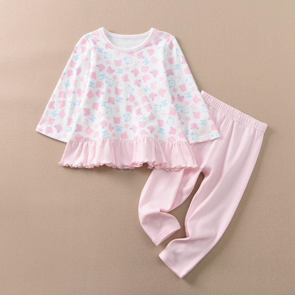 • TZ1083 코튼 울 올오버 프린트 세트 러플 핑크 베어 헤드(1세트)
