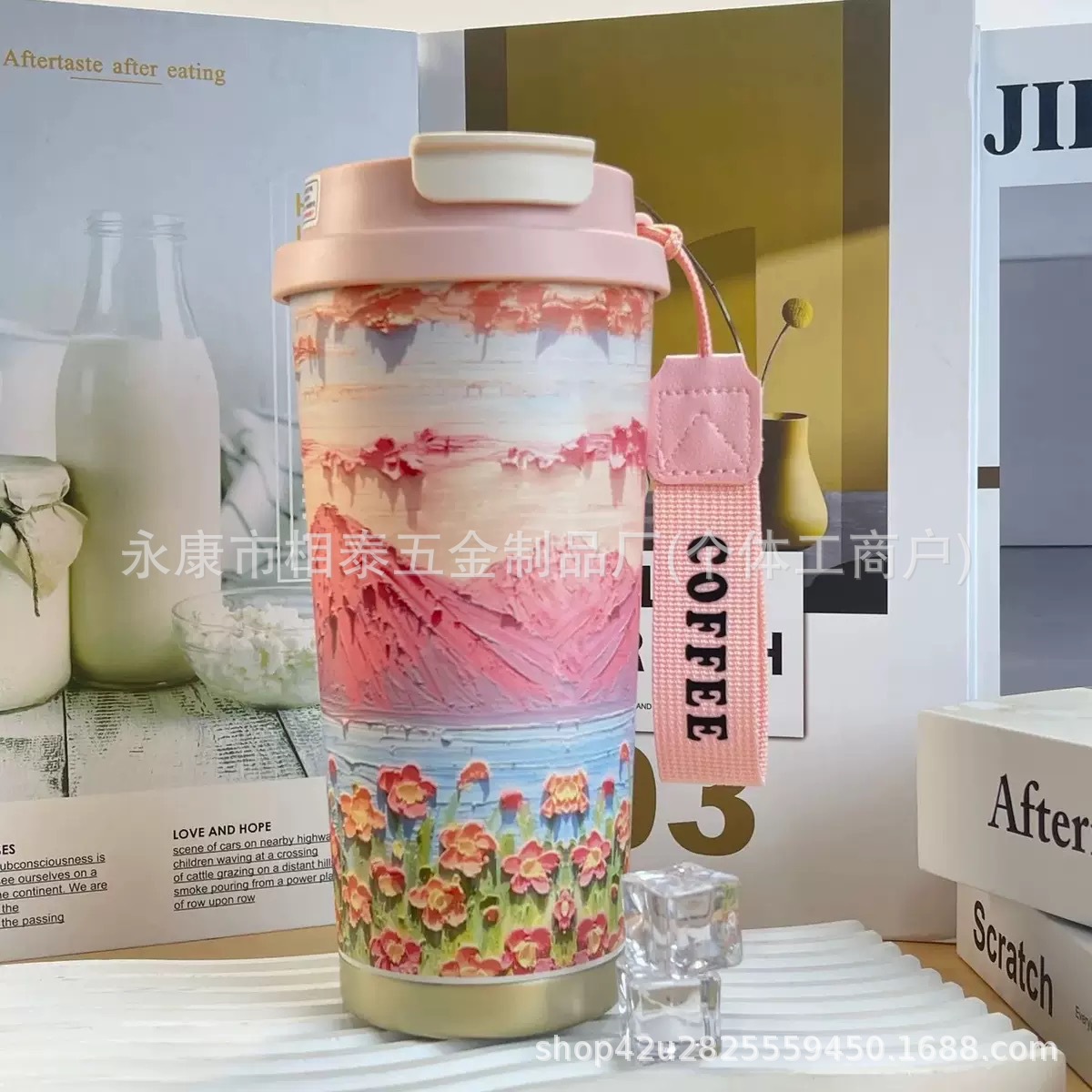 316 스테인리스 이중 음료컵 야외 휴대용 선물 소녀들을 위한 은방울꽃 커피 보온컵 휴대용 모델스토어 가기