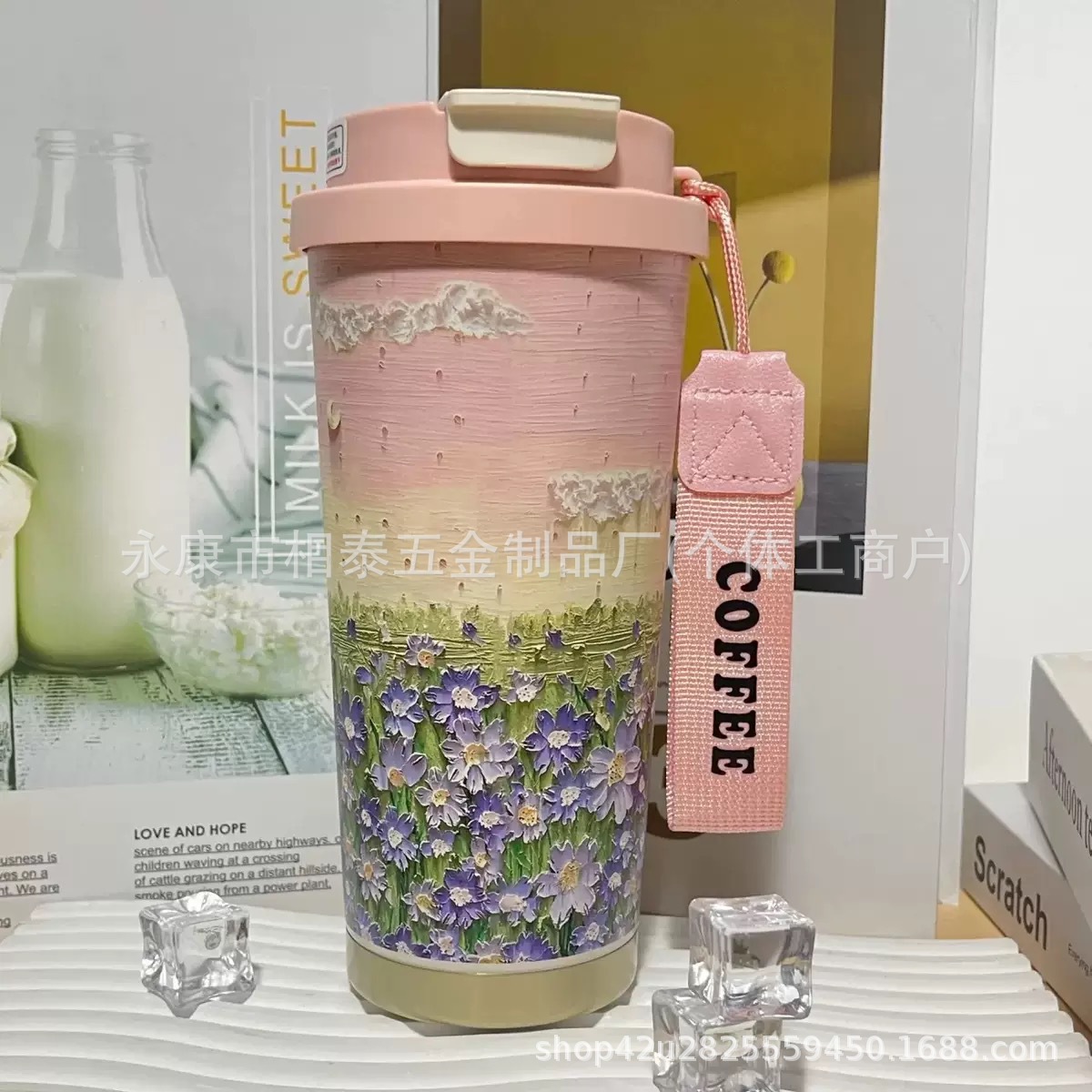 316 스테인리스 이중 음료컵 야외 휴대용 선물 소녀들을 위한 은방울꽃 커피 보온컵 휴대용 모델