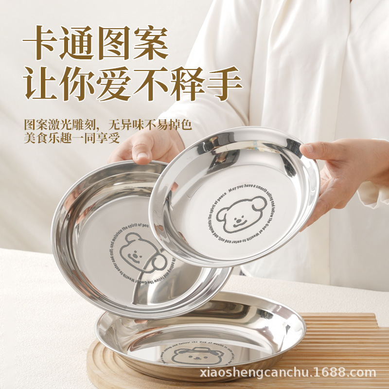304 스테인레스 스틸 플레이트 귀여운 가정용 어린이 베이비 디너 플레이트 식품 학년 베이비 식기 두꺼운 디스크스토어 가기