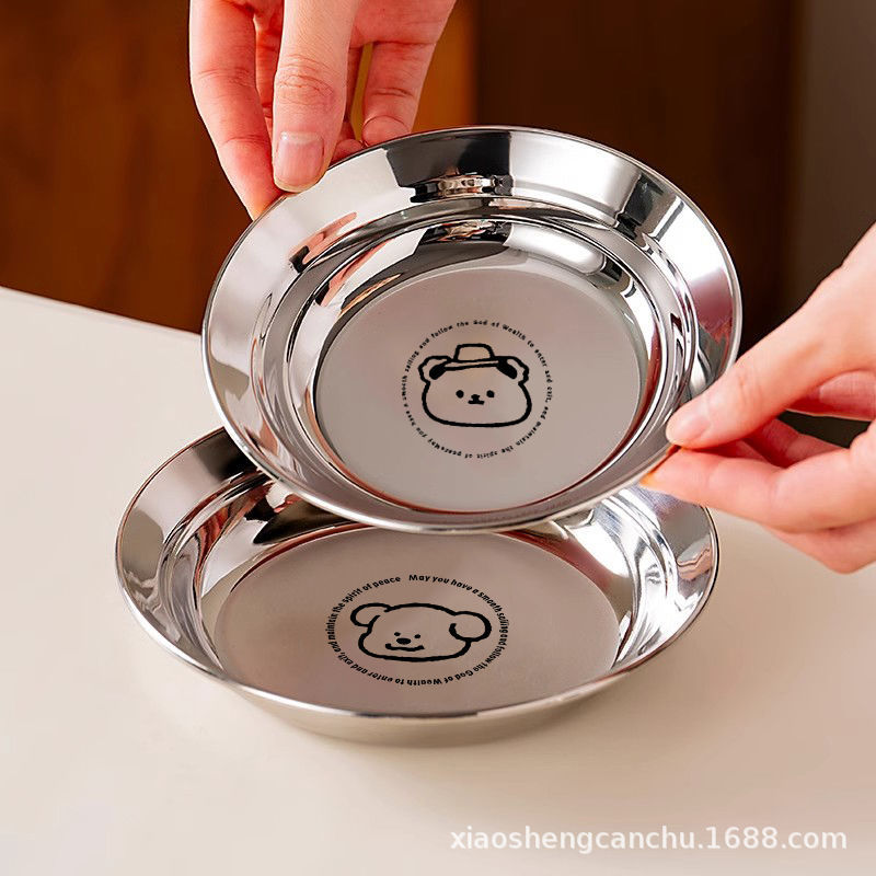 304 스테인레스 스틸 플레이트 귀여운 가정용 어린이 베이비 디너 플레이트 식품 학년 베이비 식기 두꺼운 디스크