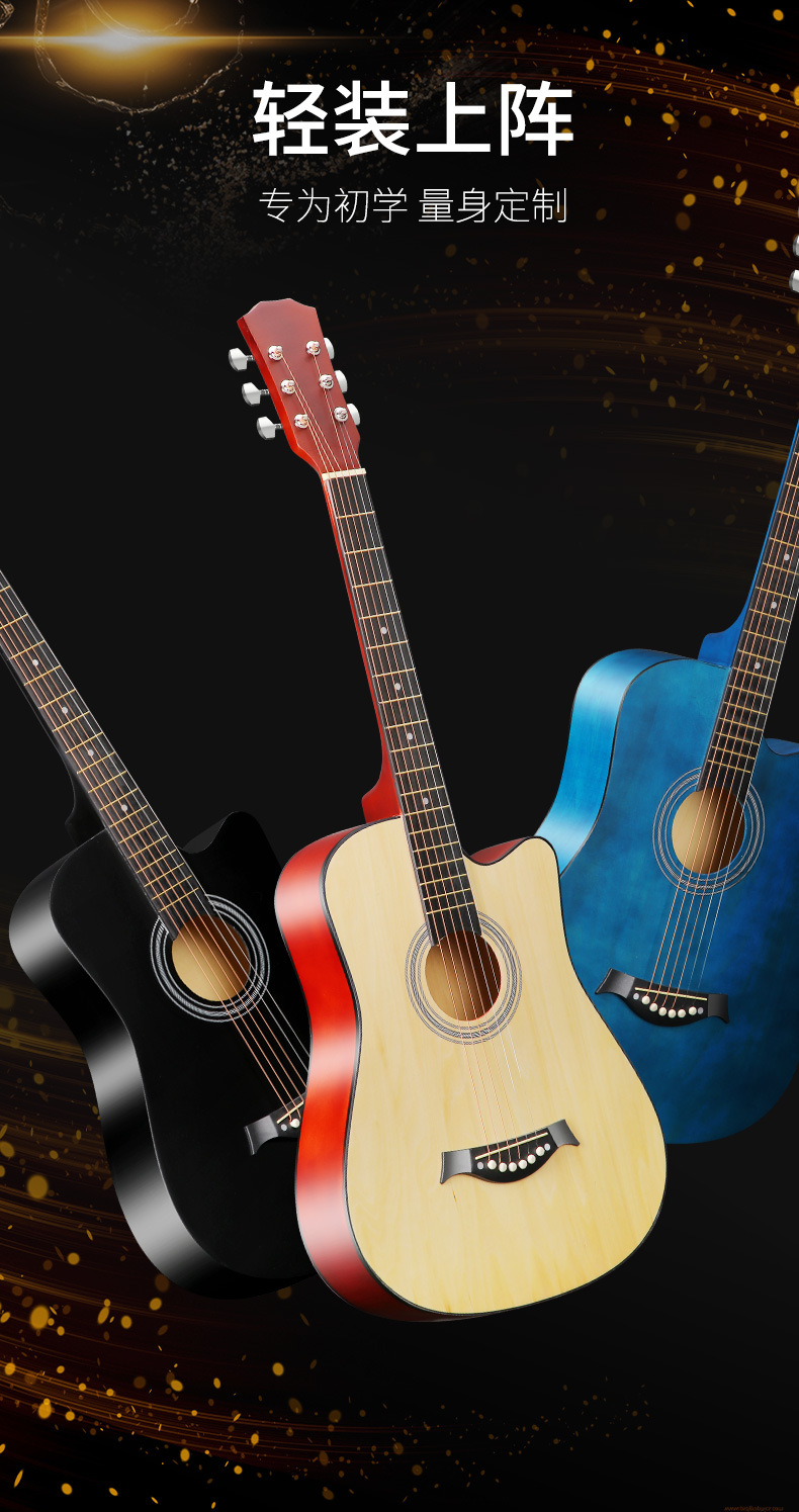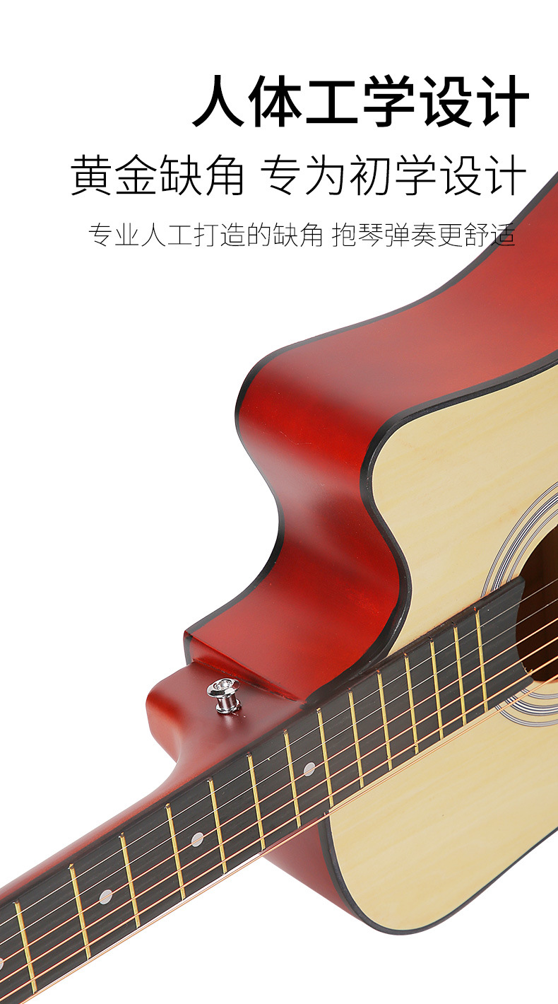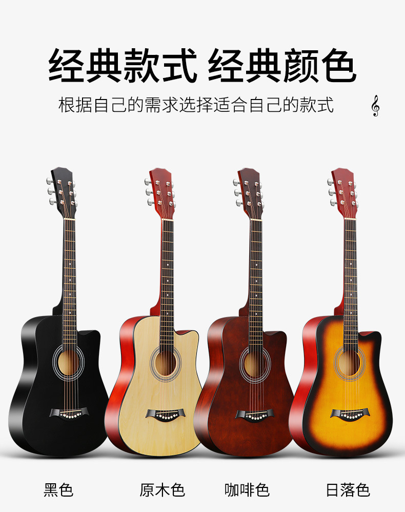 포크 기타 38 인치 연습 피아노 전체 가장자리 테두리 모서리 누락 된 나무 기타 도매 초보자 입구 악기스토어 가기