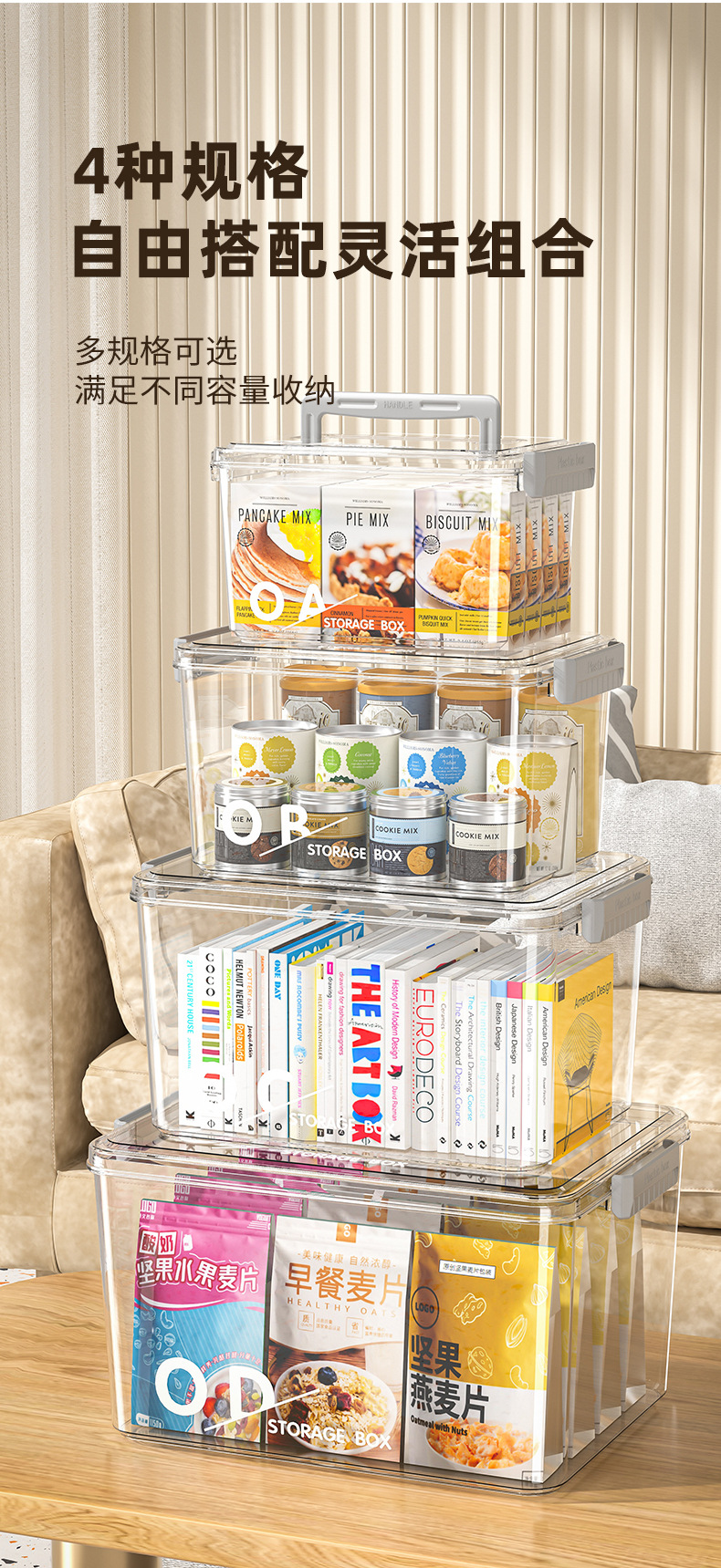가구 투명한 플라스틱 저장 상자 뚜껑 PP 어린이 장난감 저장 상자 큰 밀봉 저장 상자 쌓을 수 있는