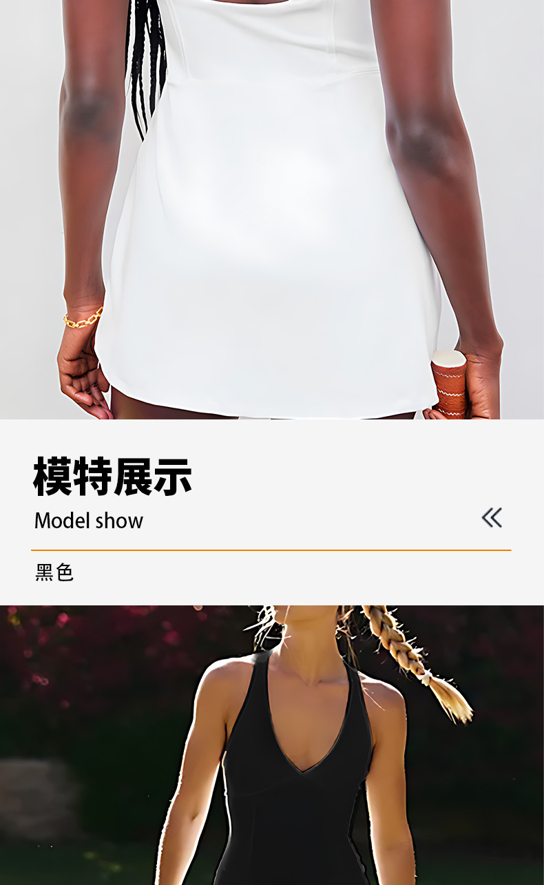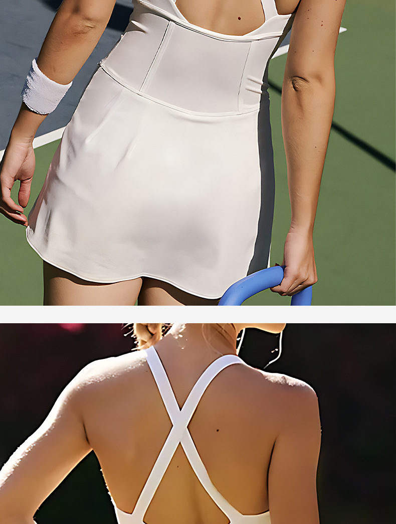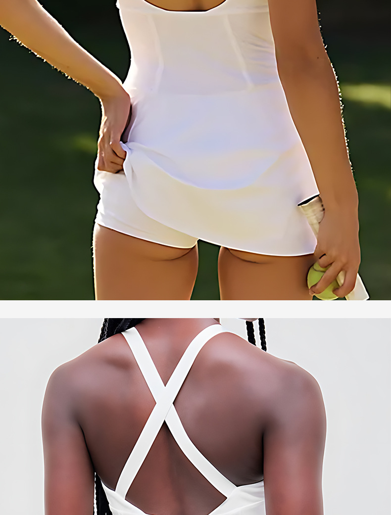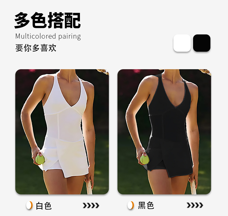 크로스-국경 새로운 V-넥 Unibody 테니스 스커트, 흉부 패드 테니스 의류 피트니스 야외 스포츠 스커트