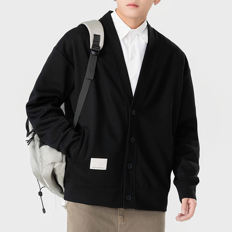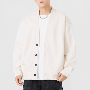 쿤하이펑윈 남성복 가을 겨울 심플 고급 브이넥 가디건 스웨트셔츠 재킷 남성용 일본식 헤비급 커플 니트웨어스토어 가기