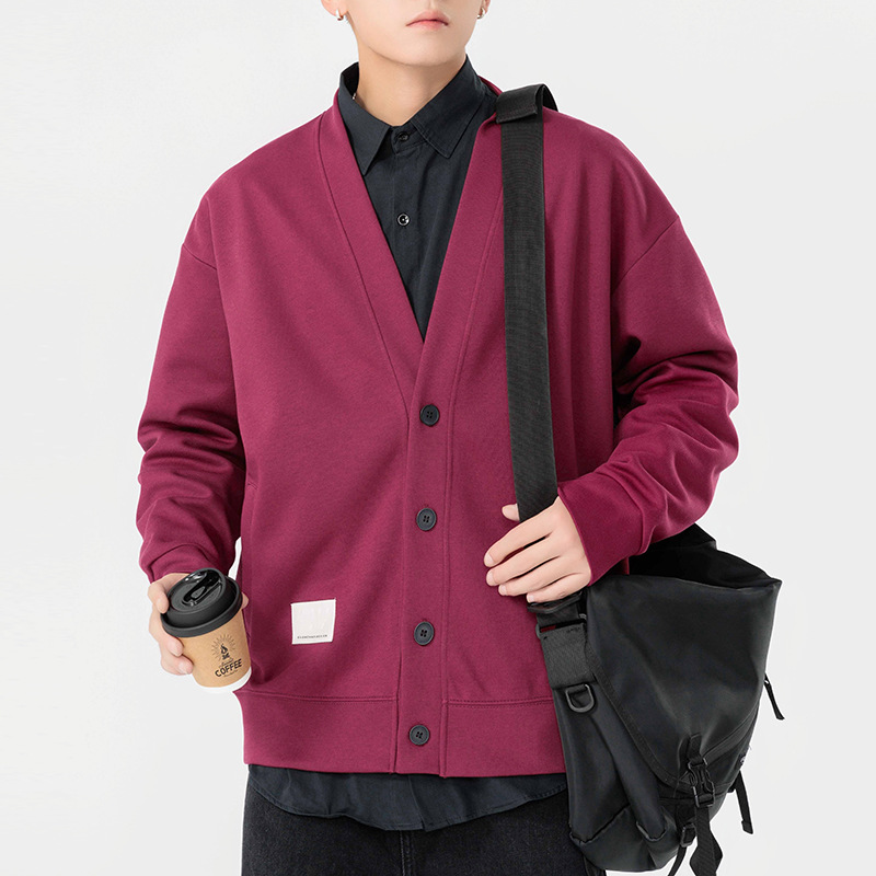 쿤하이펑윈 남성복 가을 겨울 심플 고급 브이넥 가디건 스웨트셔츠 재킷 남성용 일본식 헤비급 커플 니트웨어