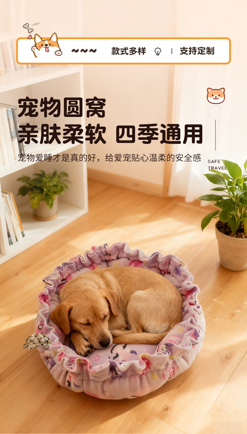 사계절 애완 동물 둥지 고양이 둥지 개집 호박 둥지 졸라 매는 끈 애완 동물 면화 둥지 라운드 매트 중형 대형스토어 가기