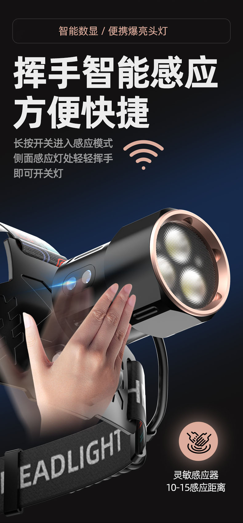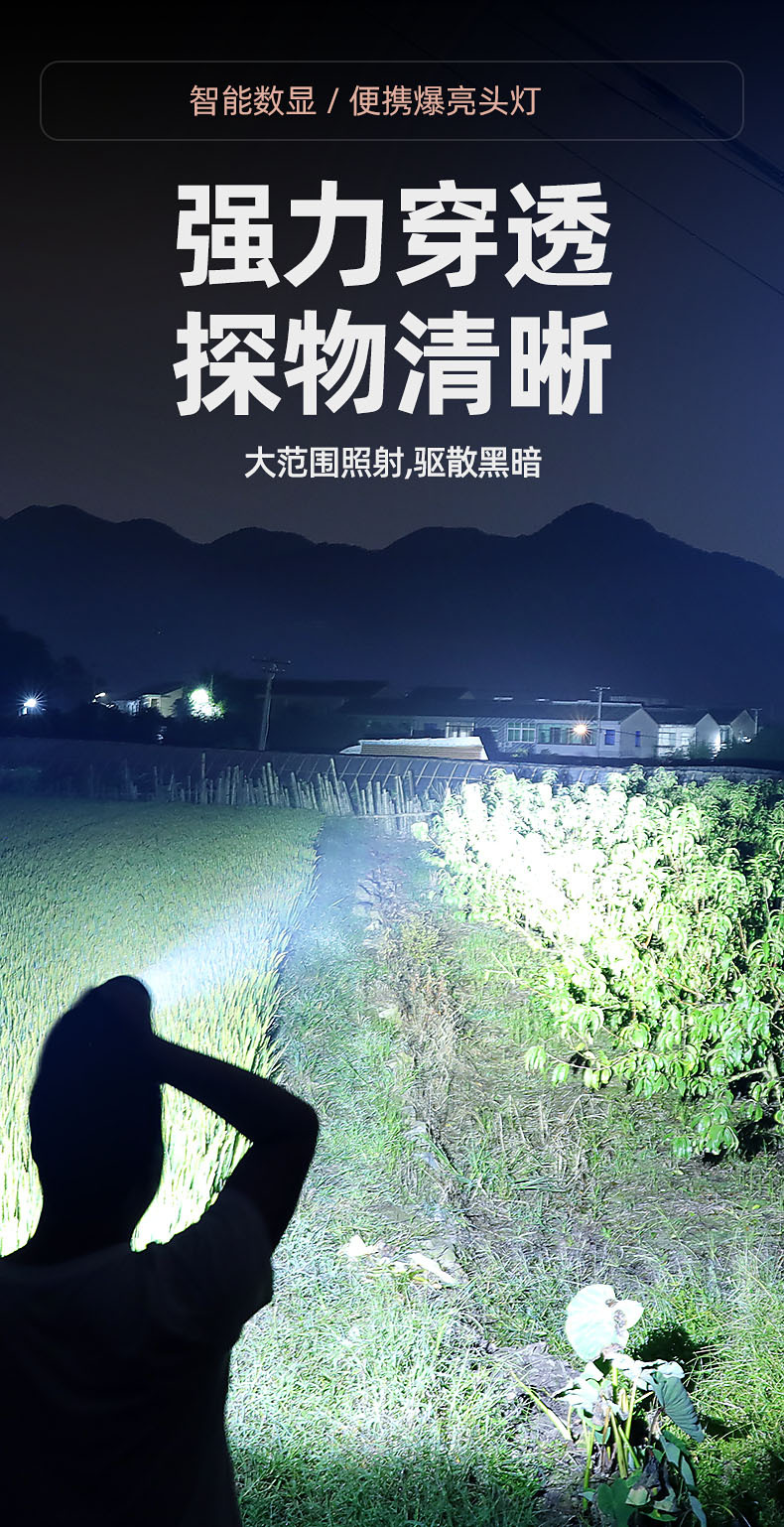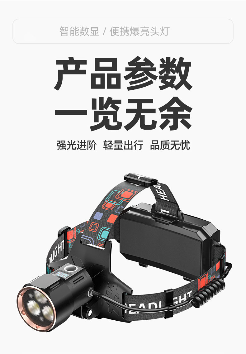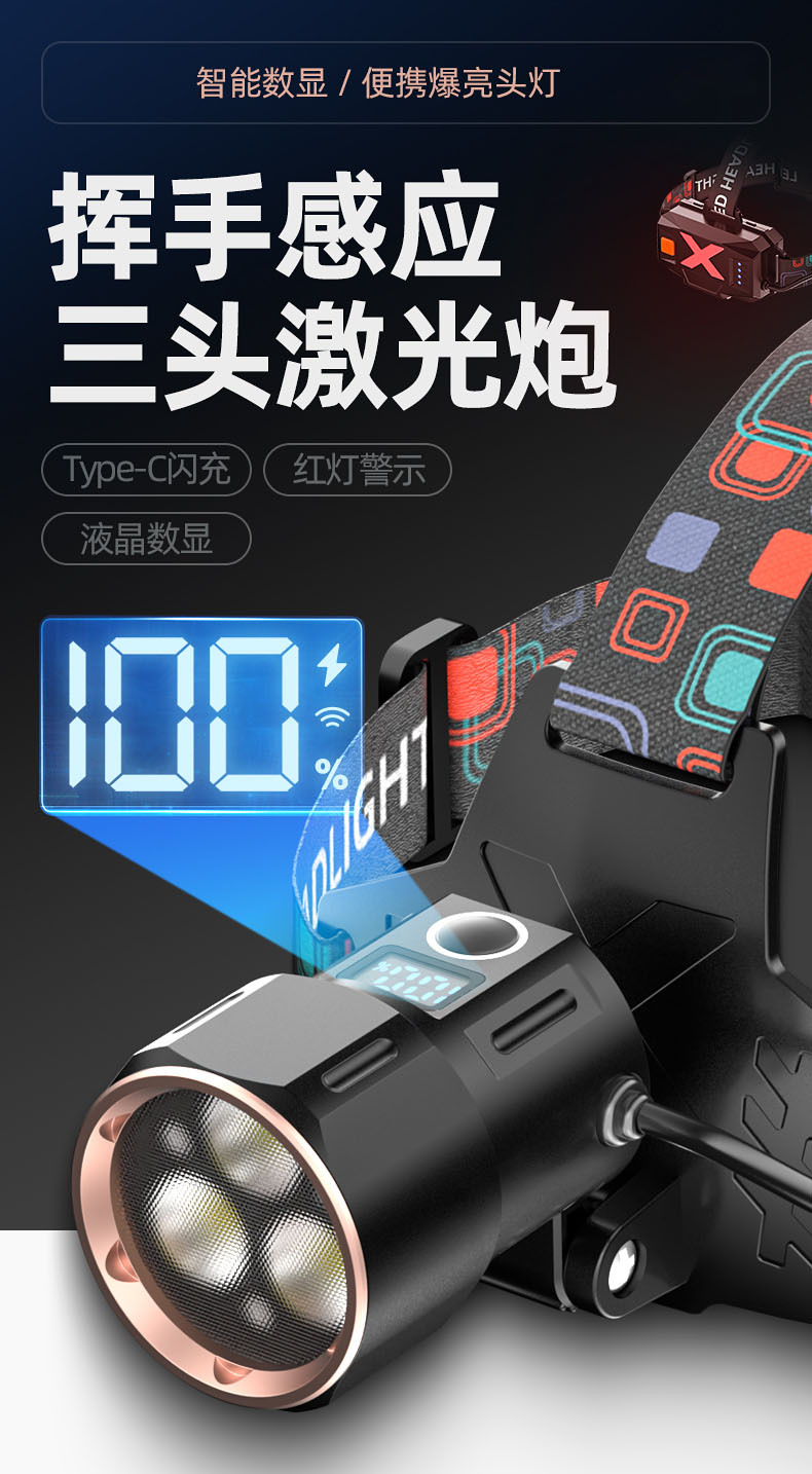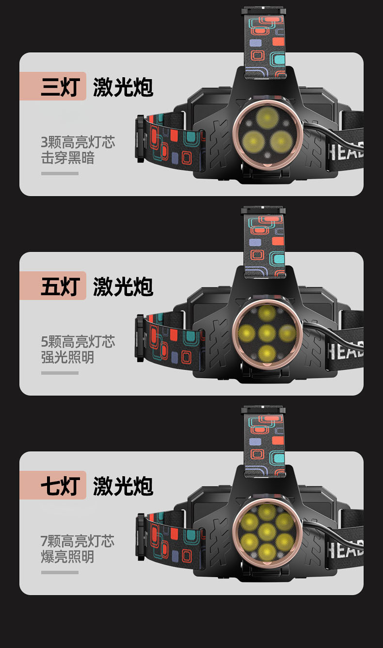 【工作档位】:强光-弱光-爆闪(感应强光)