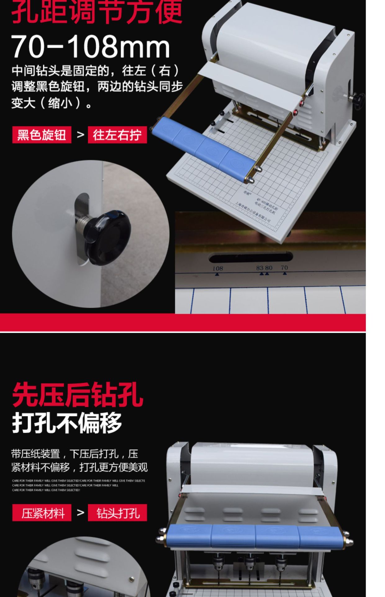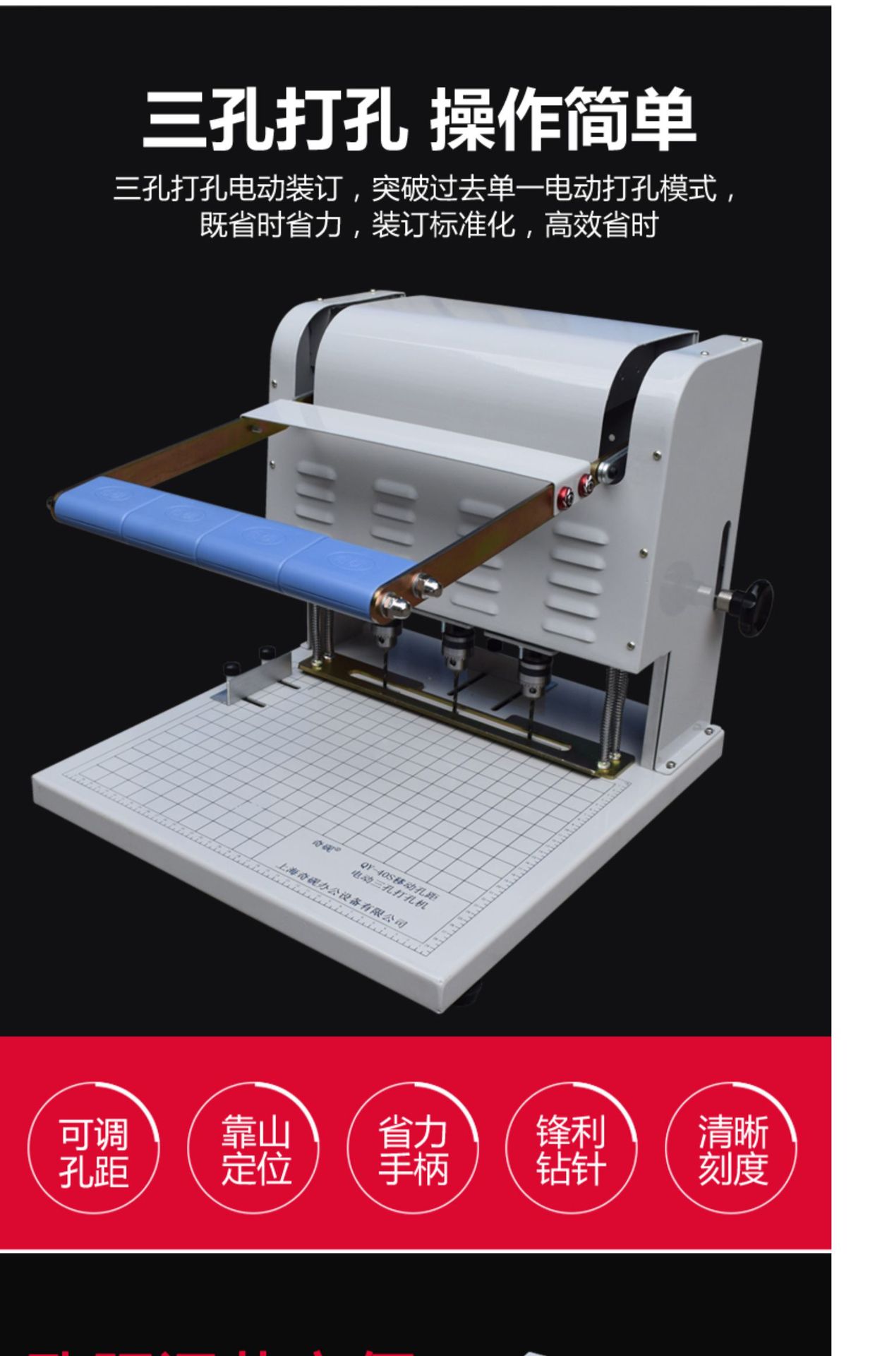 Qiyuan QY-40S 파일 바인딩 기계 전기 3 홀 펀치 기계 롤 법률 문서 은행 구멍 간격 조절 가능스토어 가기