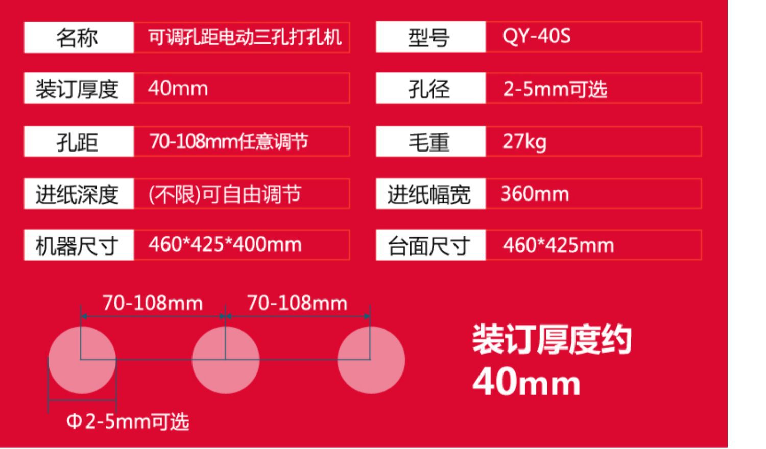 Qiyuan QY-40S 파일 바인딩 기계 전기 3 홀 펀치 기계 롤 법률 문서 은행 구멍 간격 조절 가능
