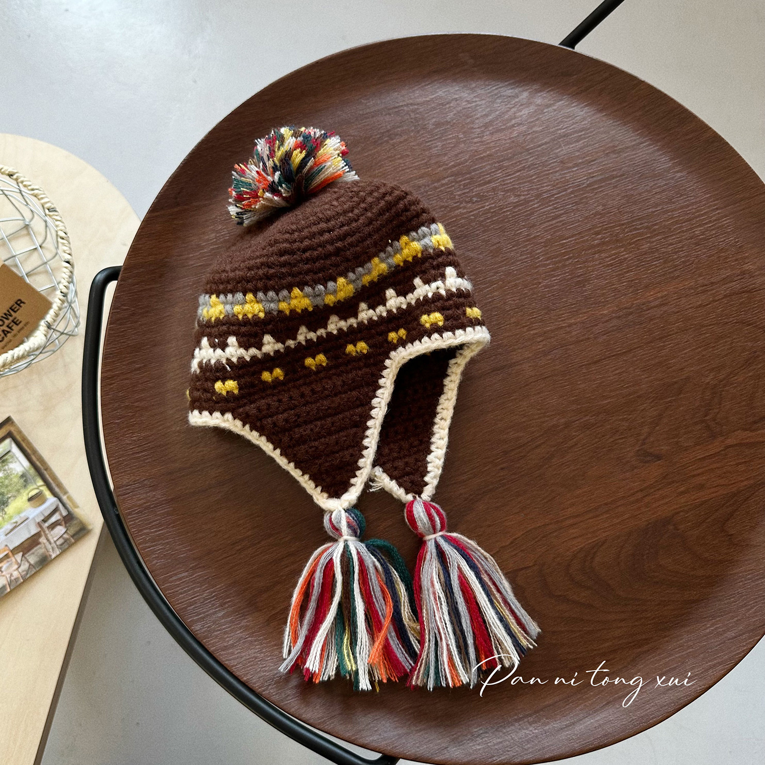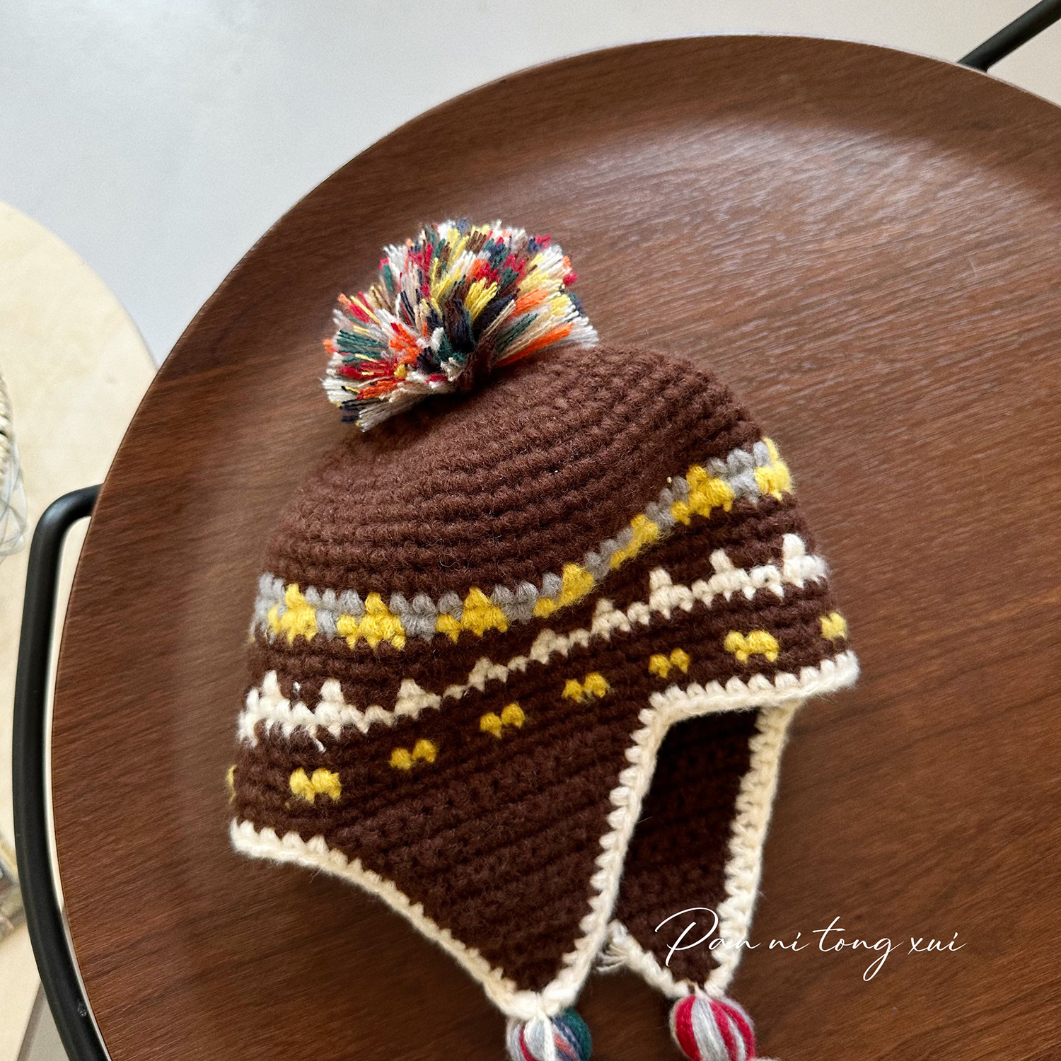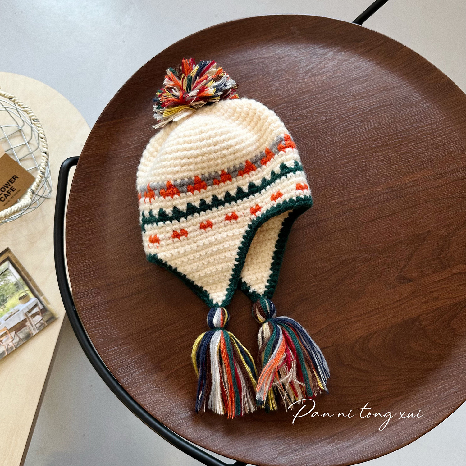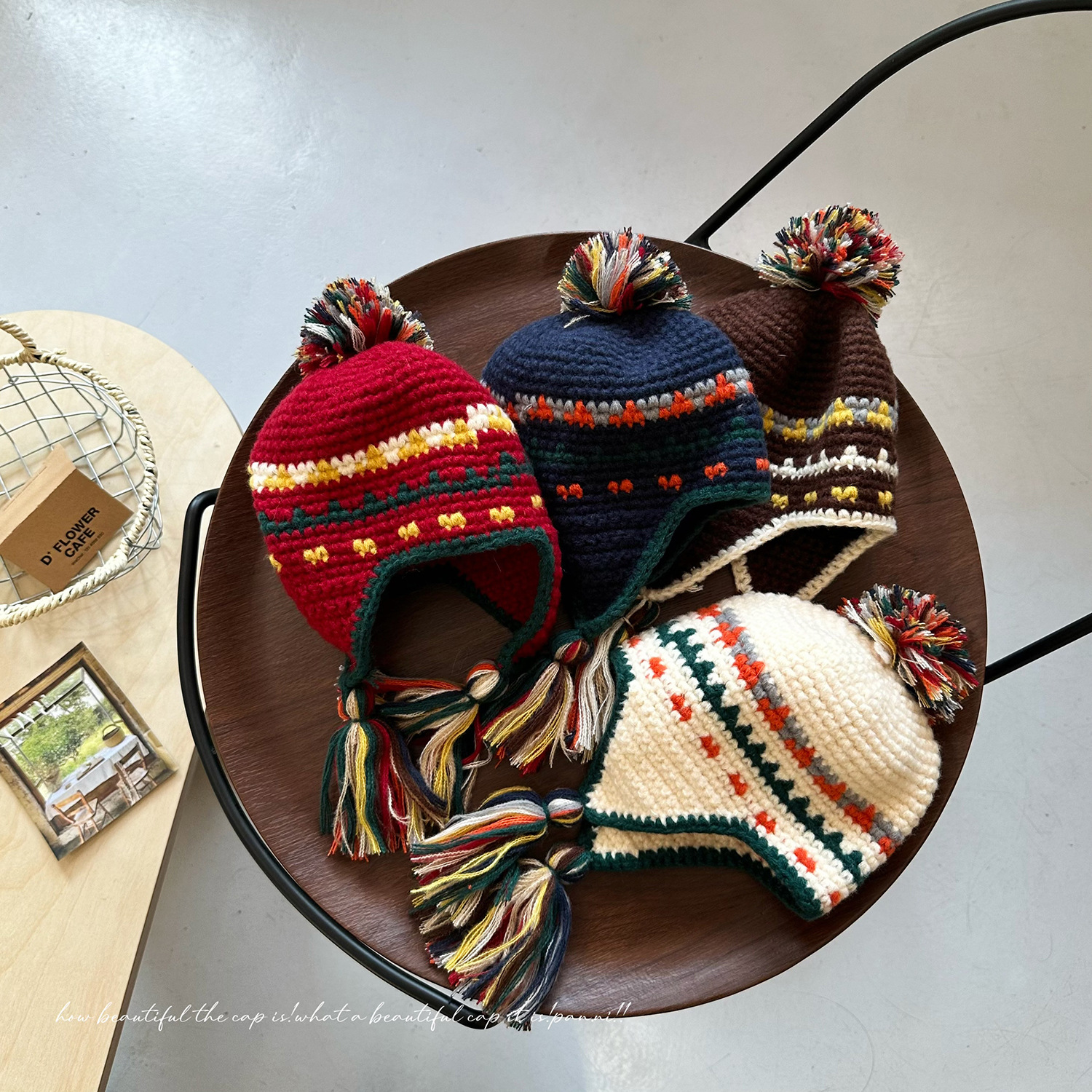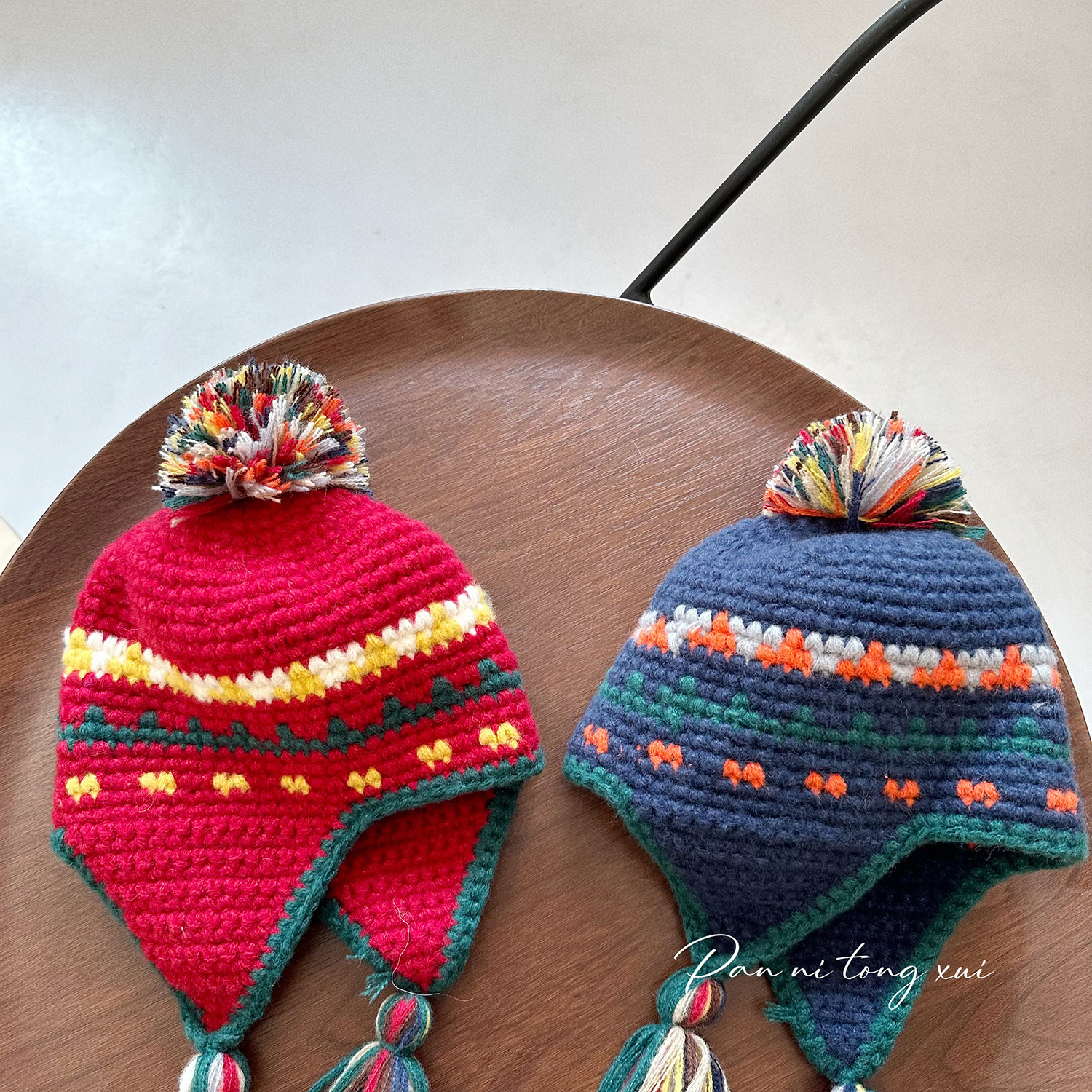 어린이 틈새 개성 레트로 핸드 훅 니트 레이 펑 모자 아기 소녀 가을과 겨울 따뜻한 귀 보호 술 양모 모자