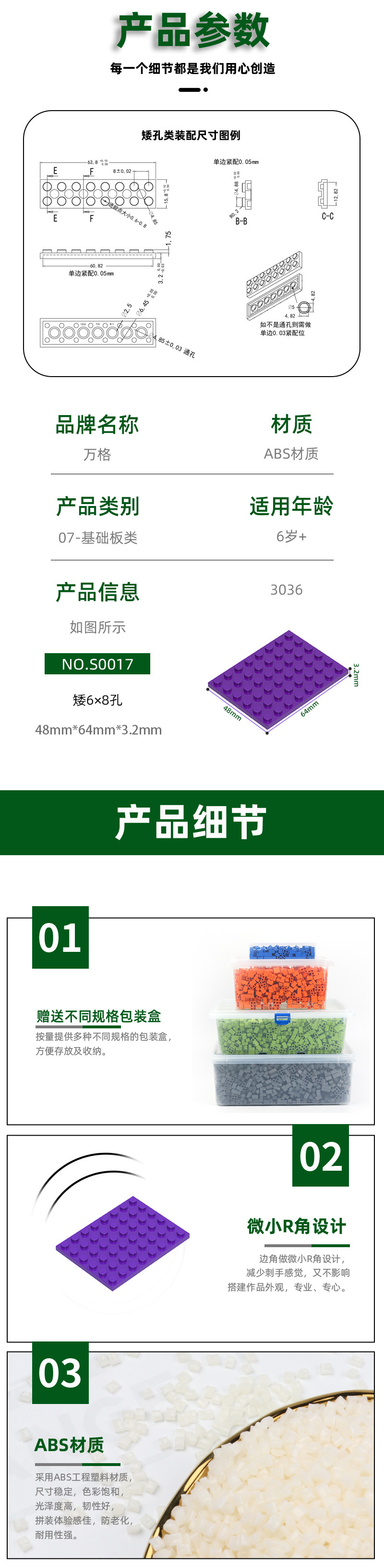 레고 3036 와 호환되는 뱅거 국내 작은 입자 조립 낮은 6x8 구멍 빌딩 블록 교육 장난감 도매
