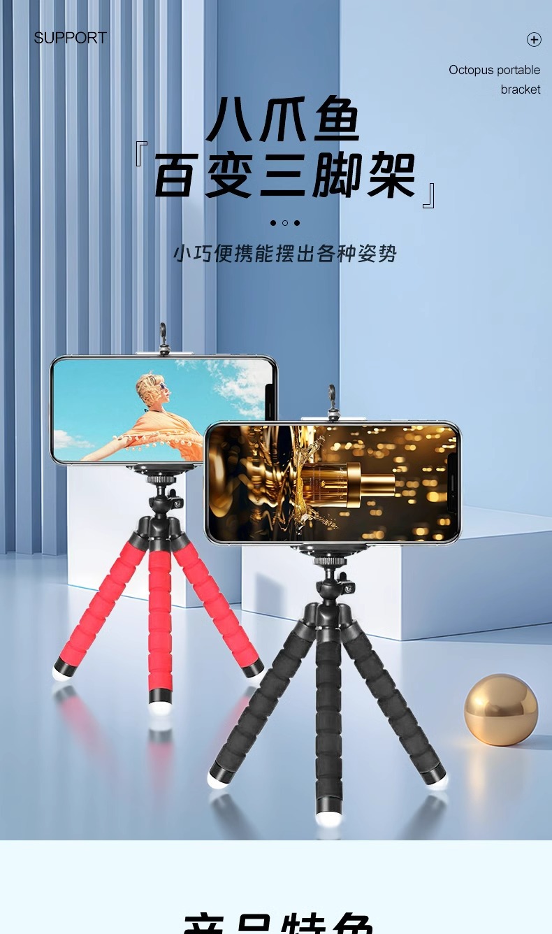 다기능 휴대용 문어 휴대 전화 브래킷 개폐식 삼각대 휴대 전화 범용 개폐식 휴대용 소형 브래킷스토어 가기