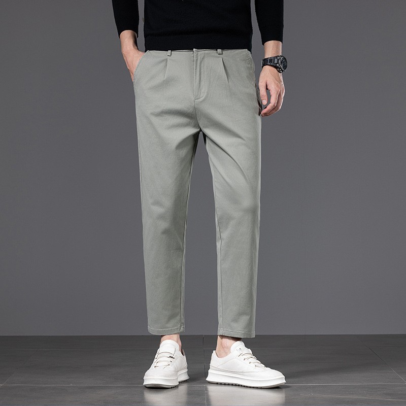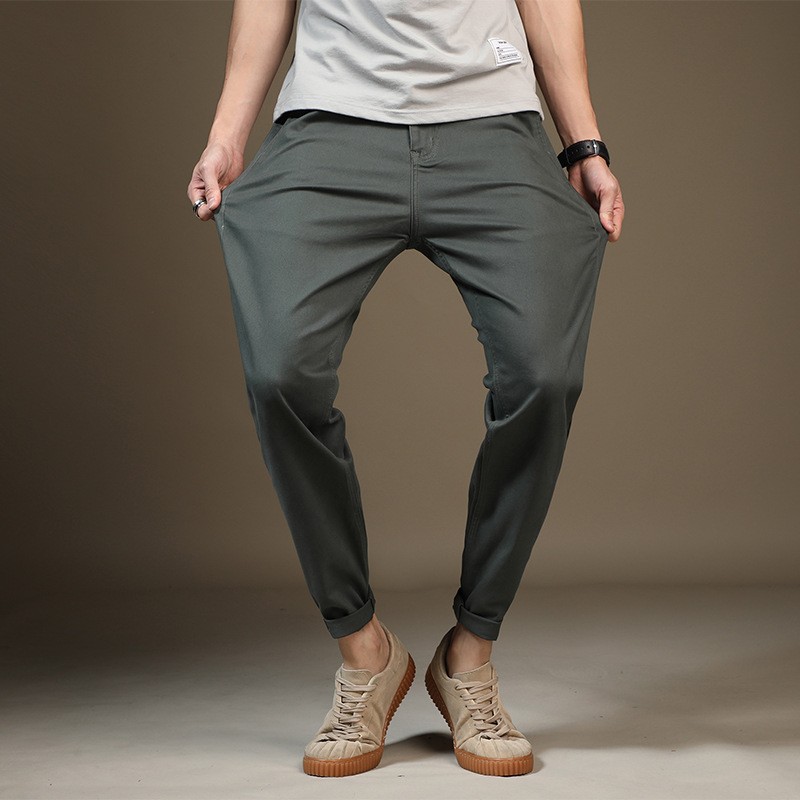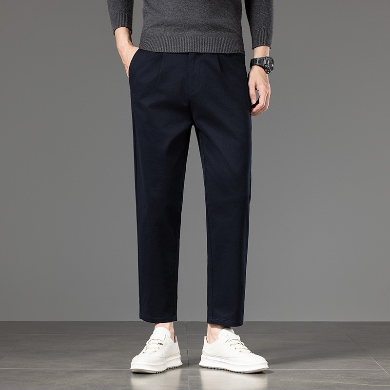 플러스 사이즈 남자의 가을과 겨울 새로운 단색 캐주얼 바지 남자 느슨한 플러스 사이즈 간단한 올 매치 스트레치 작은 직선 다리 바지스토어 가기