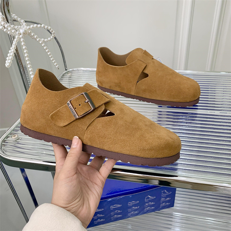 2025 봄/가을 버켄슈즈 천연가죽 앞코가 덮인 코르크 두꺼운 밑창 슬립온 슬리퍼 여성용