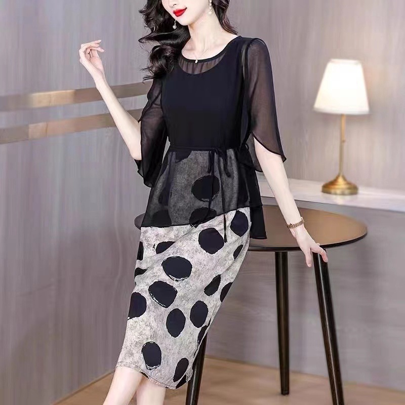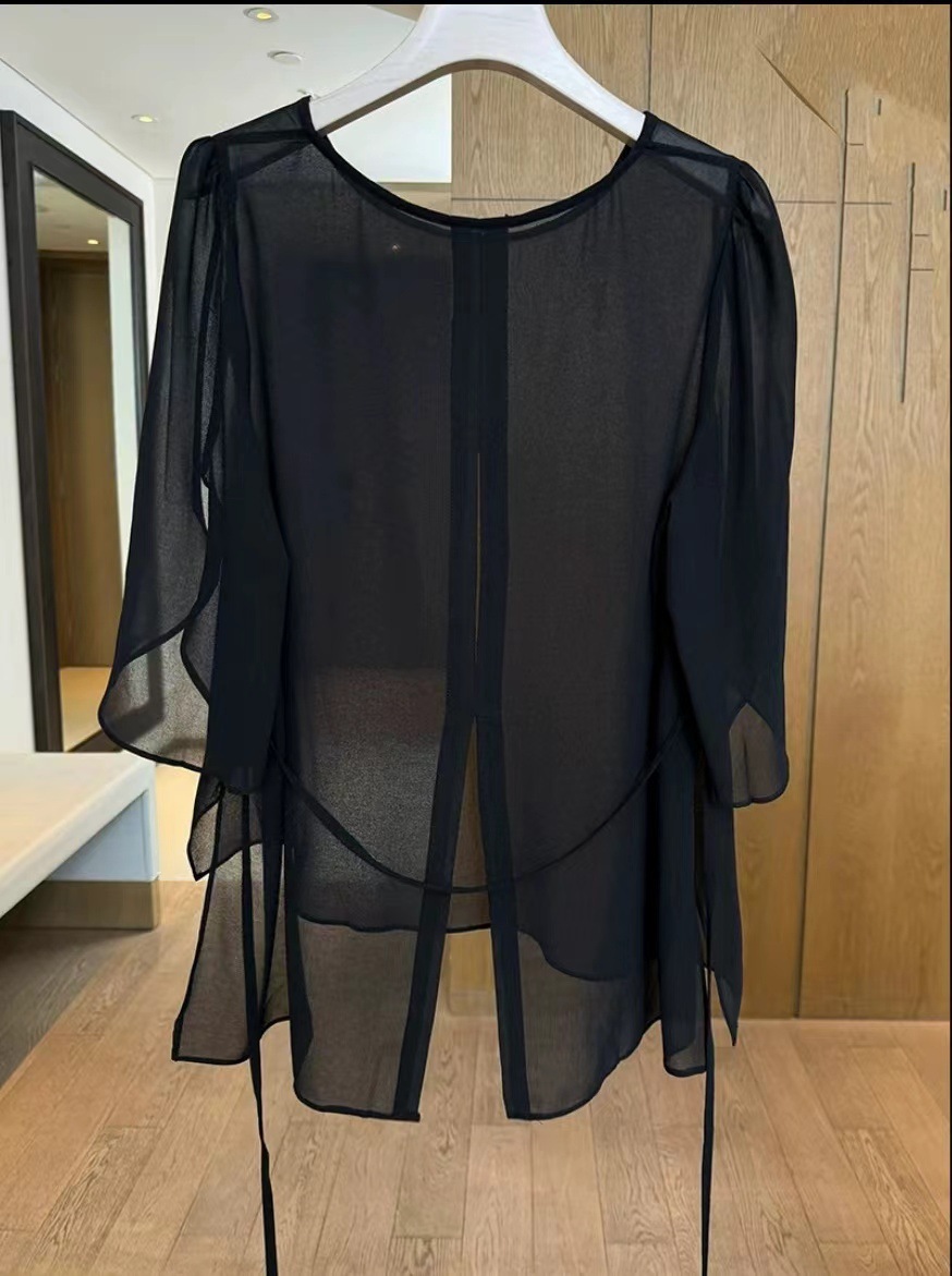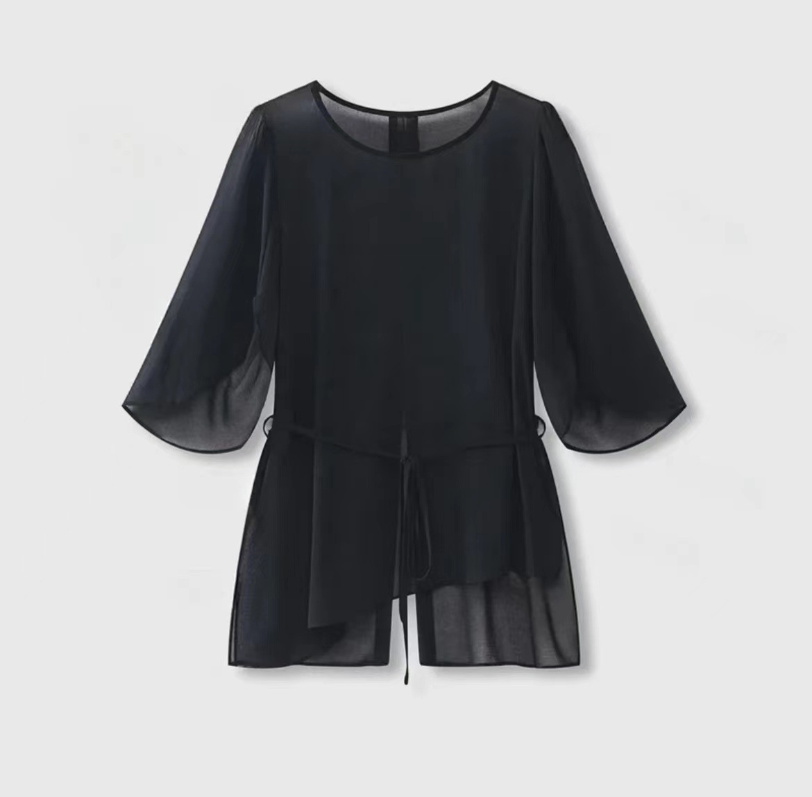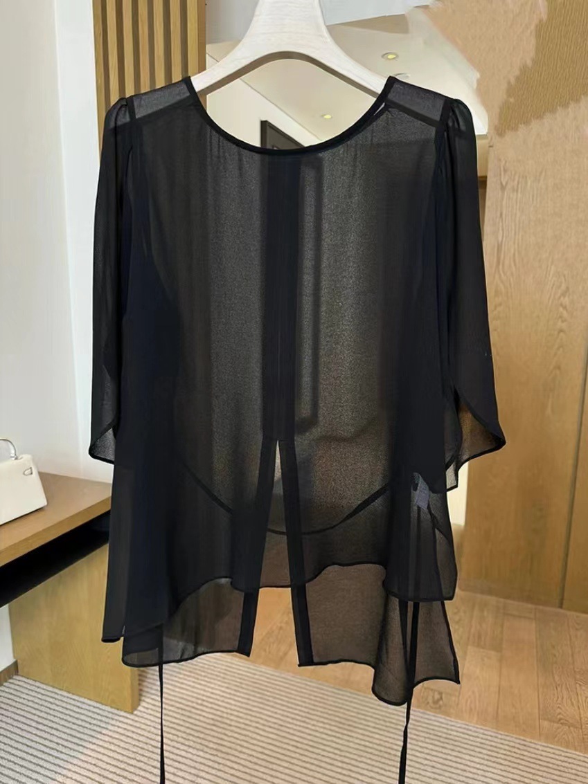 폭발적인 시폰 셔츠 세련된 패션 밀크 아이스 실크 탑 올 매치 플러스 사이즈 캐주얼 태양 보호 의류 여성용 라운드 넥 중간스토어 가기