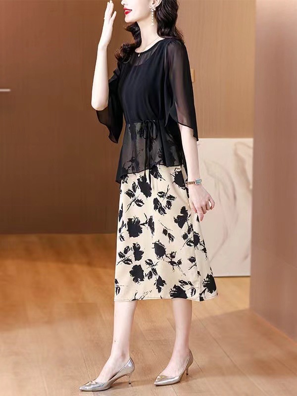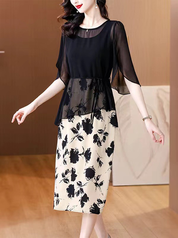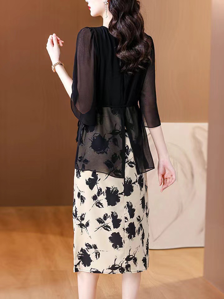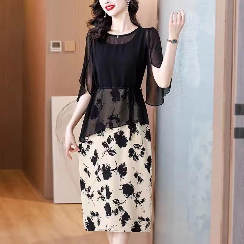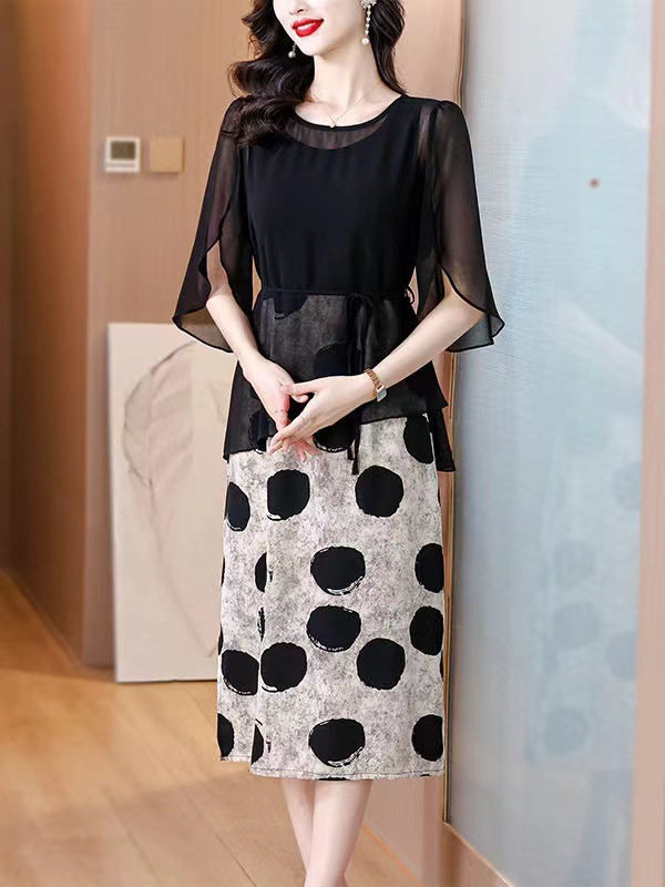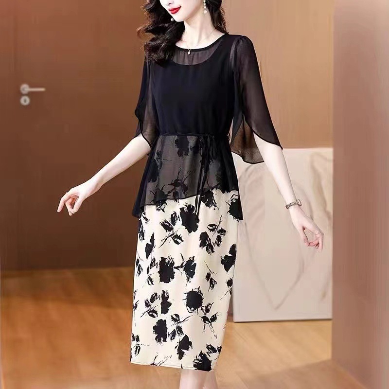 폭발적인 시폰 셔츠 세련된 패션 밀크 아이스 실크 탑 올 매치 플러스 사이즈 캐주얼 태양 보호 의류 여성용 라운드 넥 중간스토어 가기