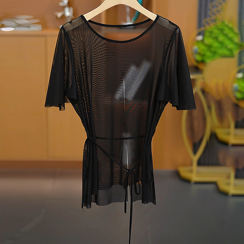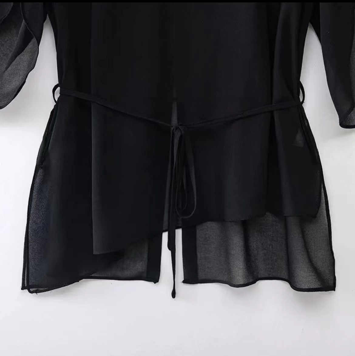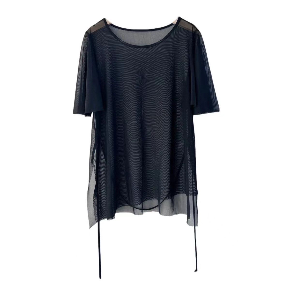 폭발적인 시폰 셔츠 세련된 패션 밀크 아이스 실크 탑 올 매치 플러스 사이즈 캐주얼 태양 보호 의류 여성용 라운드 넥 중간