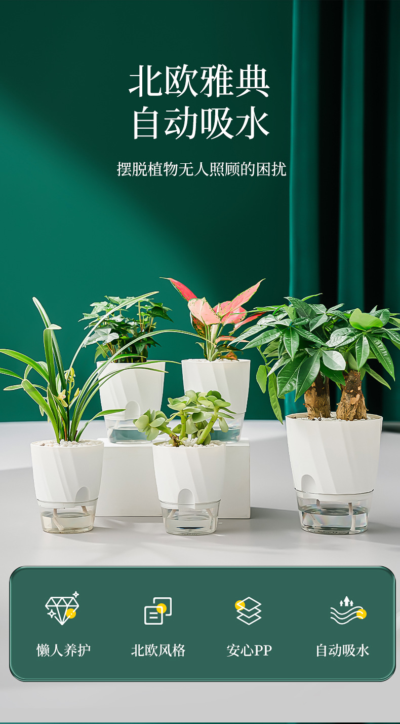 게으른 사람들을위한 엄격한 국경 선택 자체 흡수성 녹색 화분 수경 수경 수경 화분 공장 직접 배치 화분을 쌓을 수 있습니다.스토어 가기