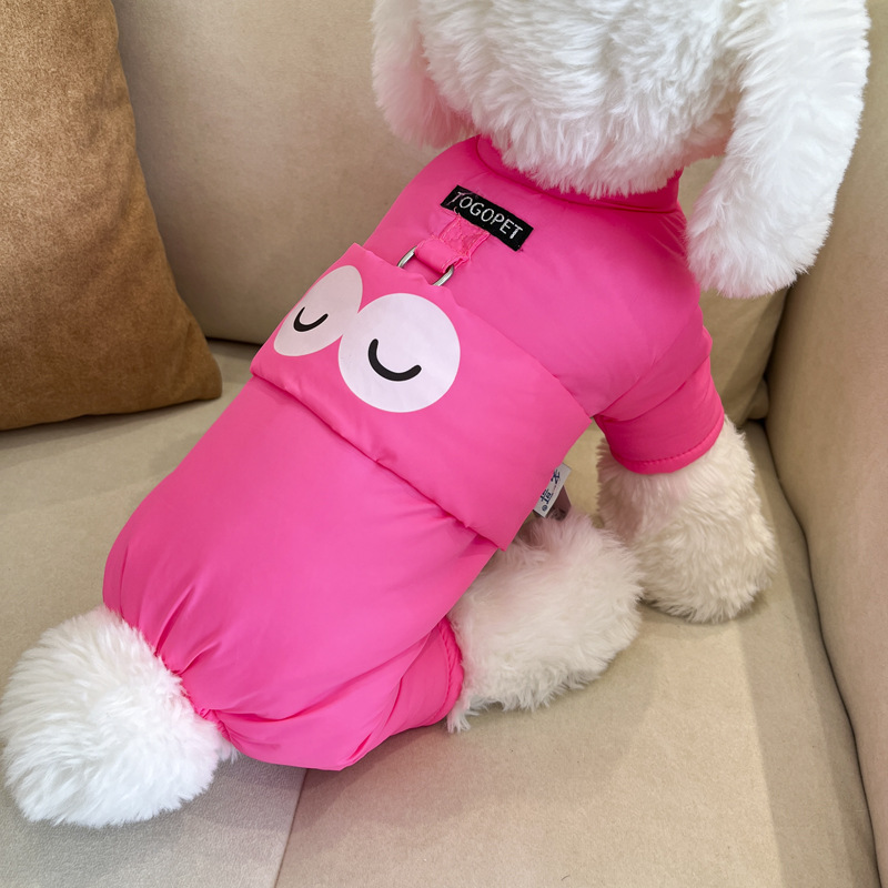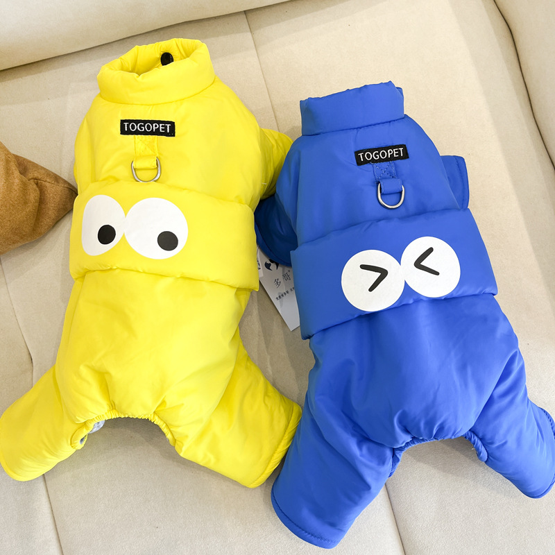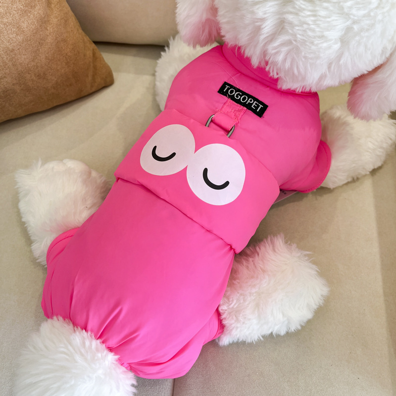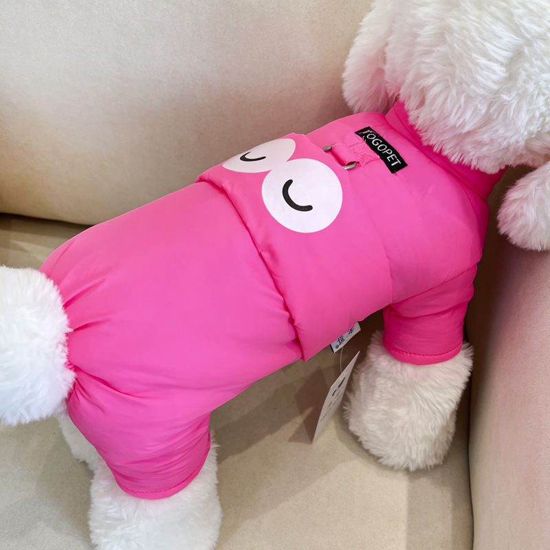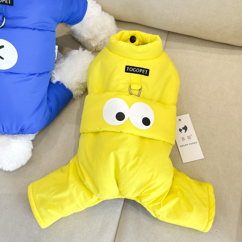 개 옷 가을과 겨울 옷 기모 네 다리가있는 옷 작은 개를위한 두꺼운 겨울 옷 트랙션 면화 패딩 옷을 입은 곰 견인을 가진 옷