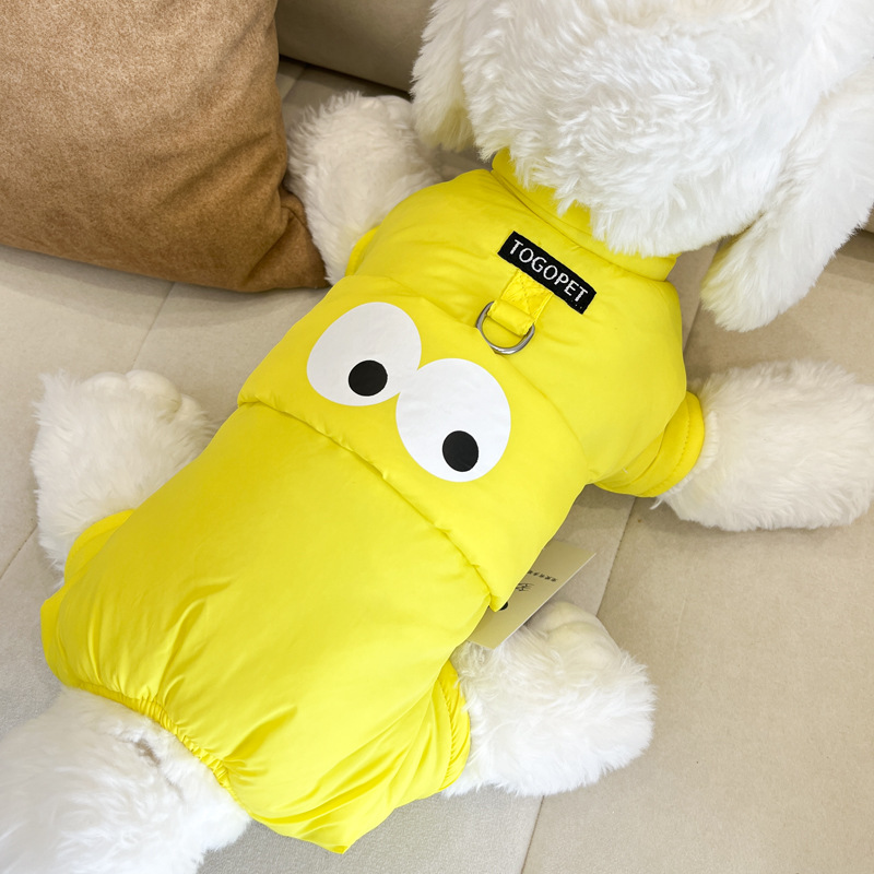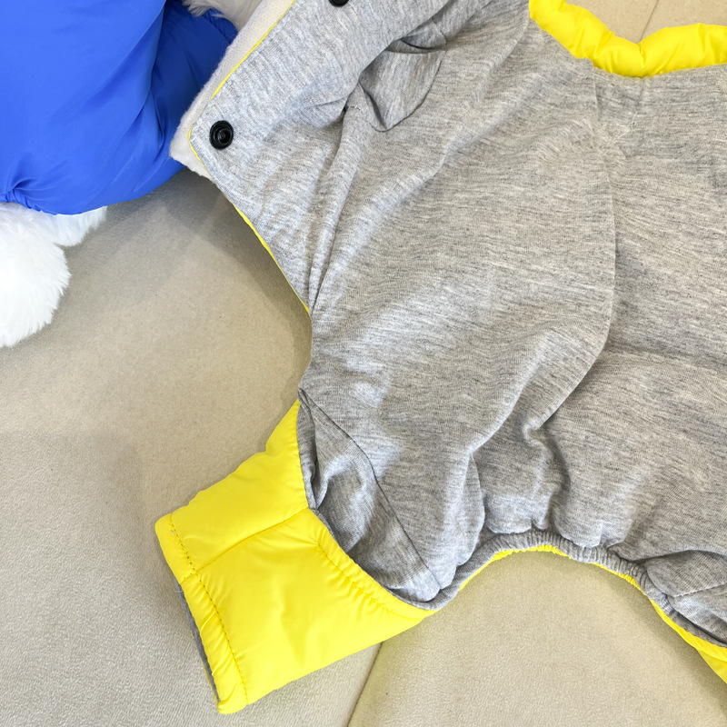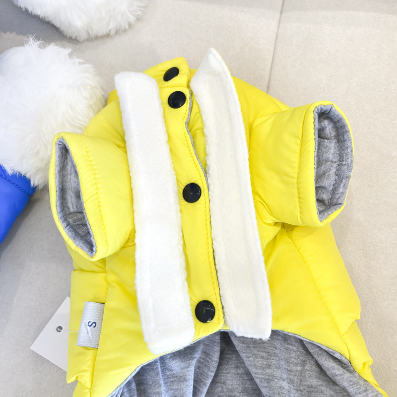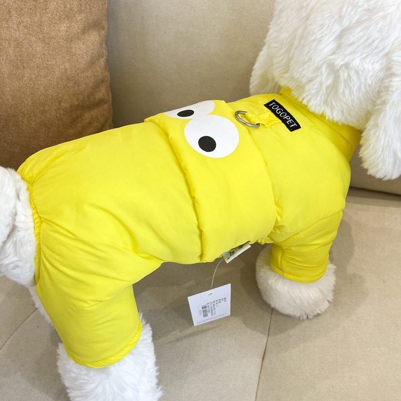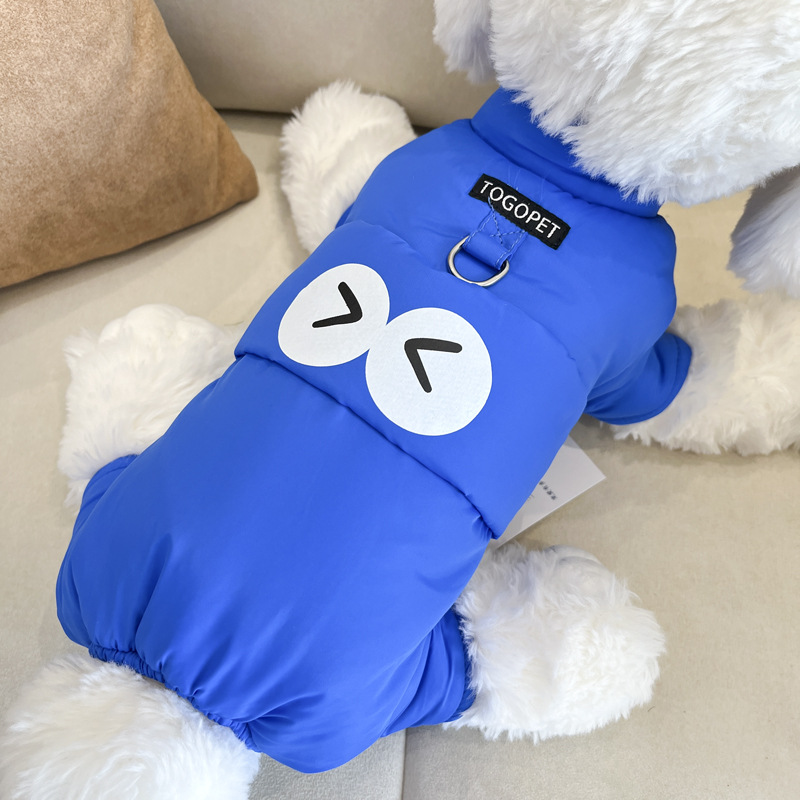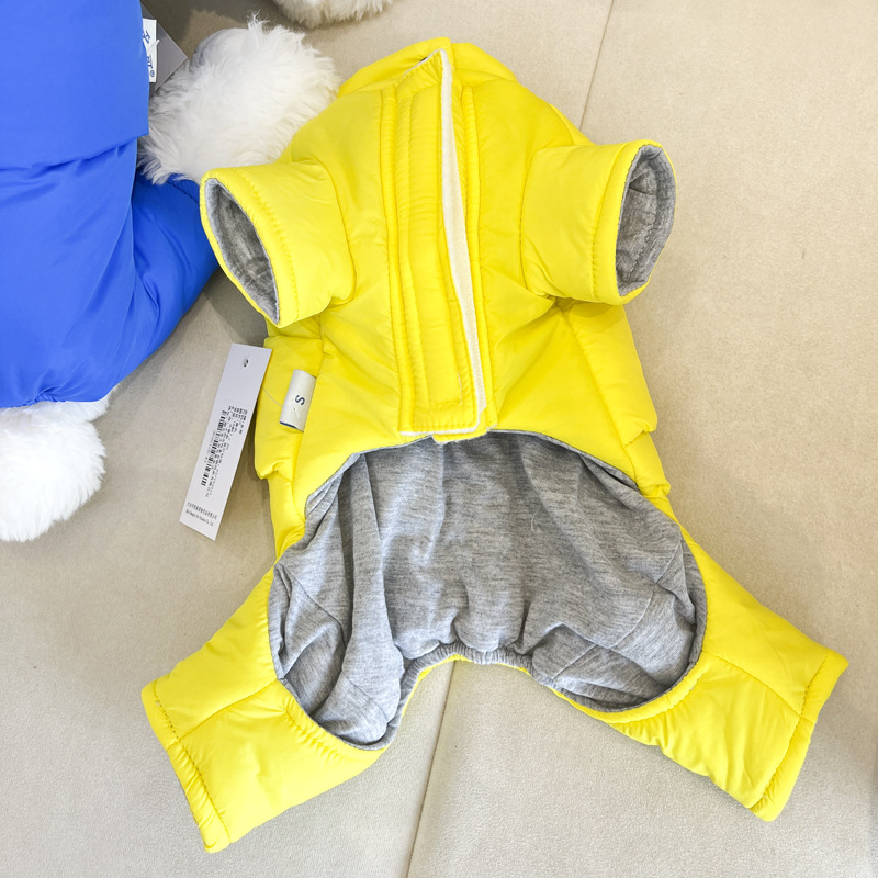 개 옷 가을과 겨울 옷 기모 네 다리가있는 옷 작은 개를위한 두꺼운 겨울 옷 트랙션 면화 패딩 옷을 입은 곰 견인을 가진 옷
