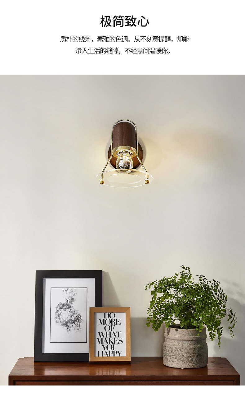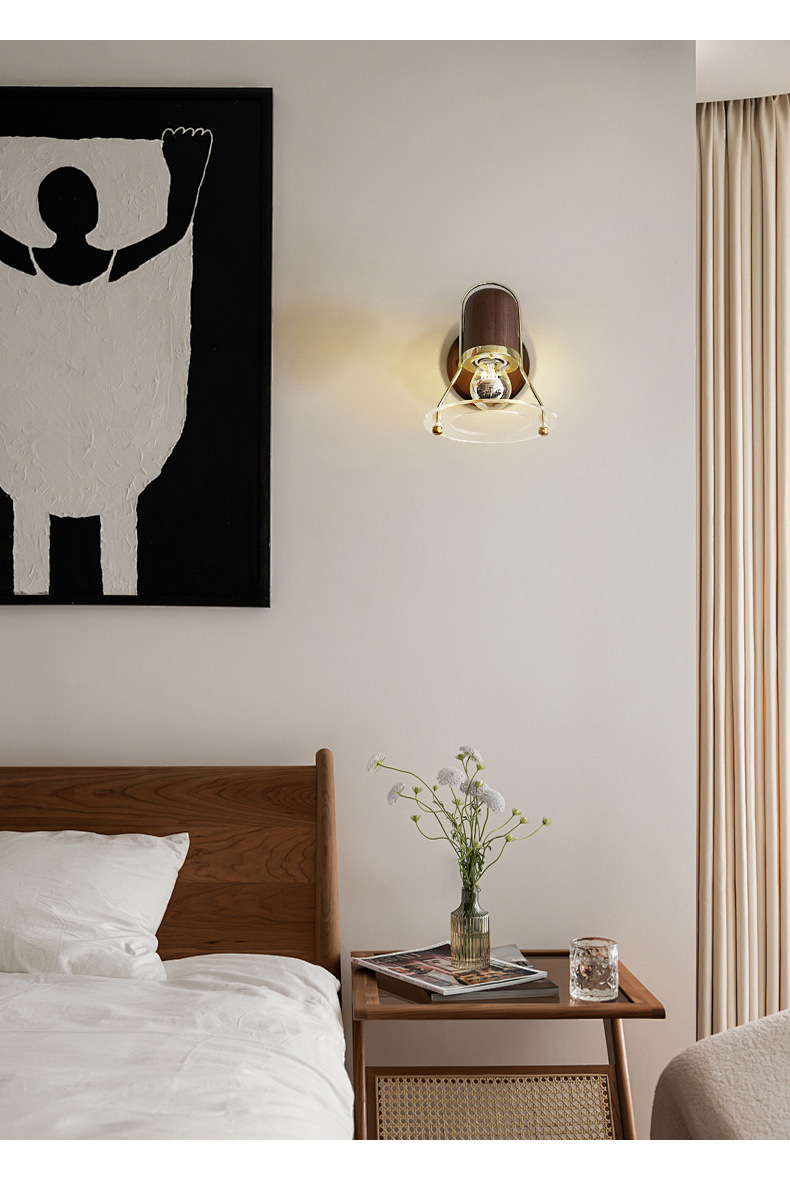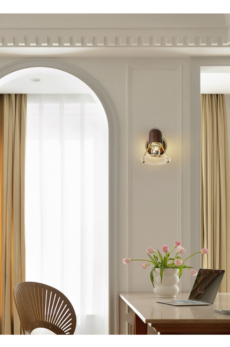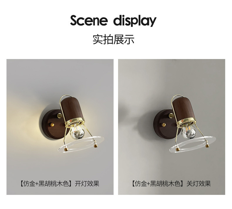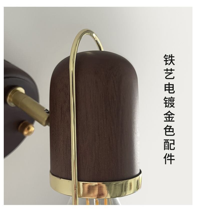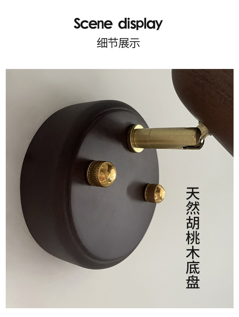 일본식 레트로 소형 벽등, 침실 침대 옆 조명, 중세 프랑스풍 호두나무 색상 현관 복도 장식용 원목 벽등
