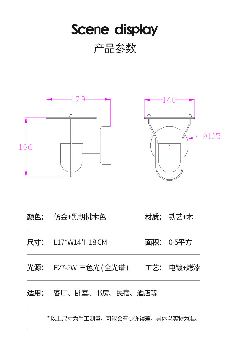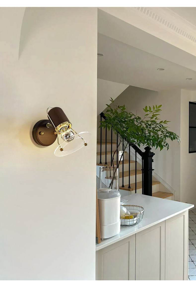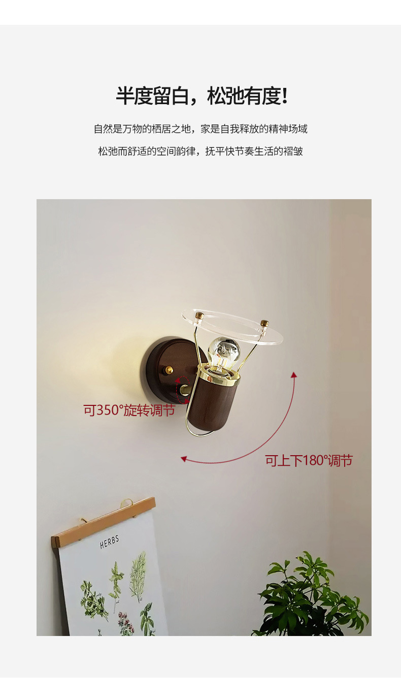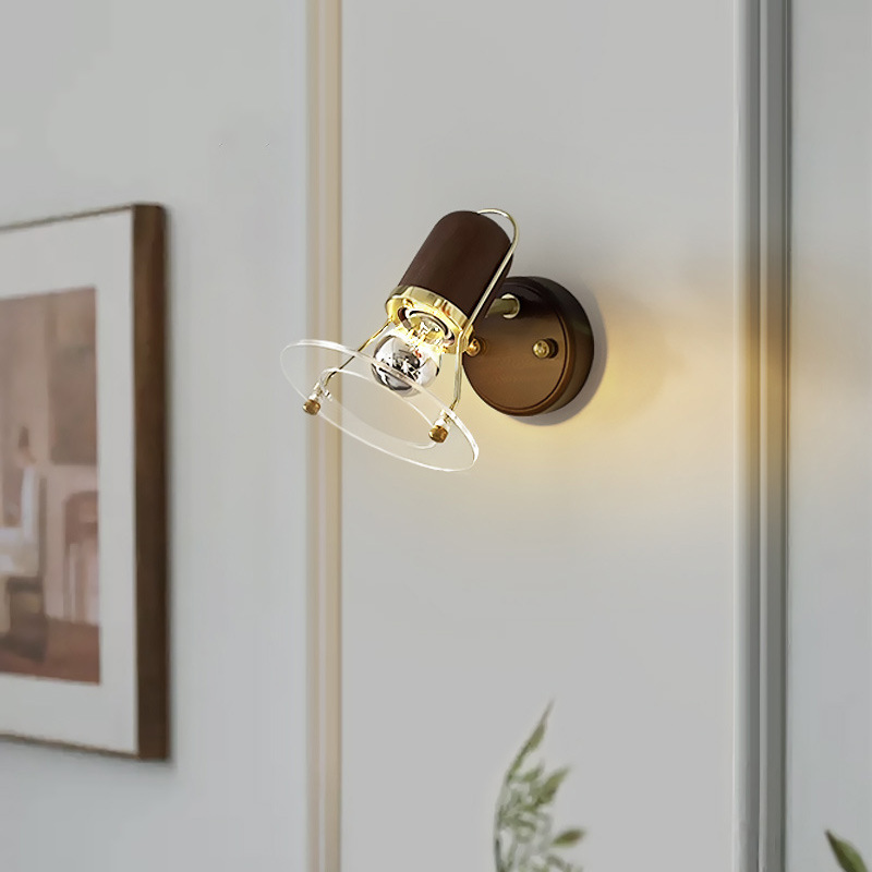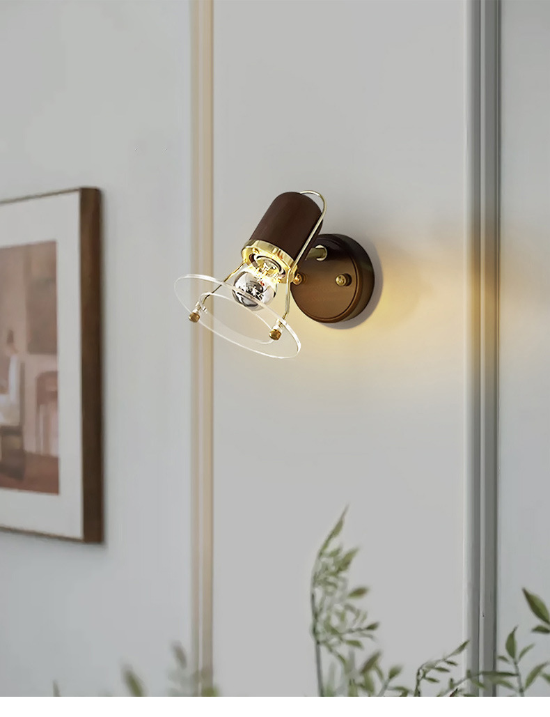 일본식 레트로 소형 벽등, 침실 침대 옆 조명, 중세 프랑스풍 호두나무 색상 현관 복도 장식용 원목 벽등