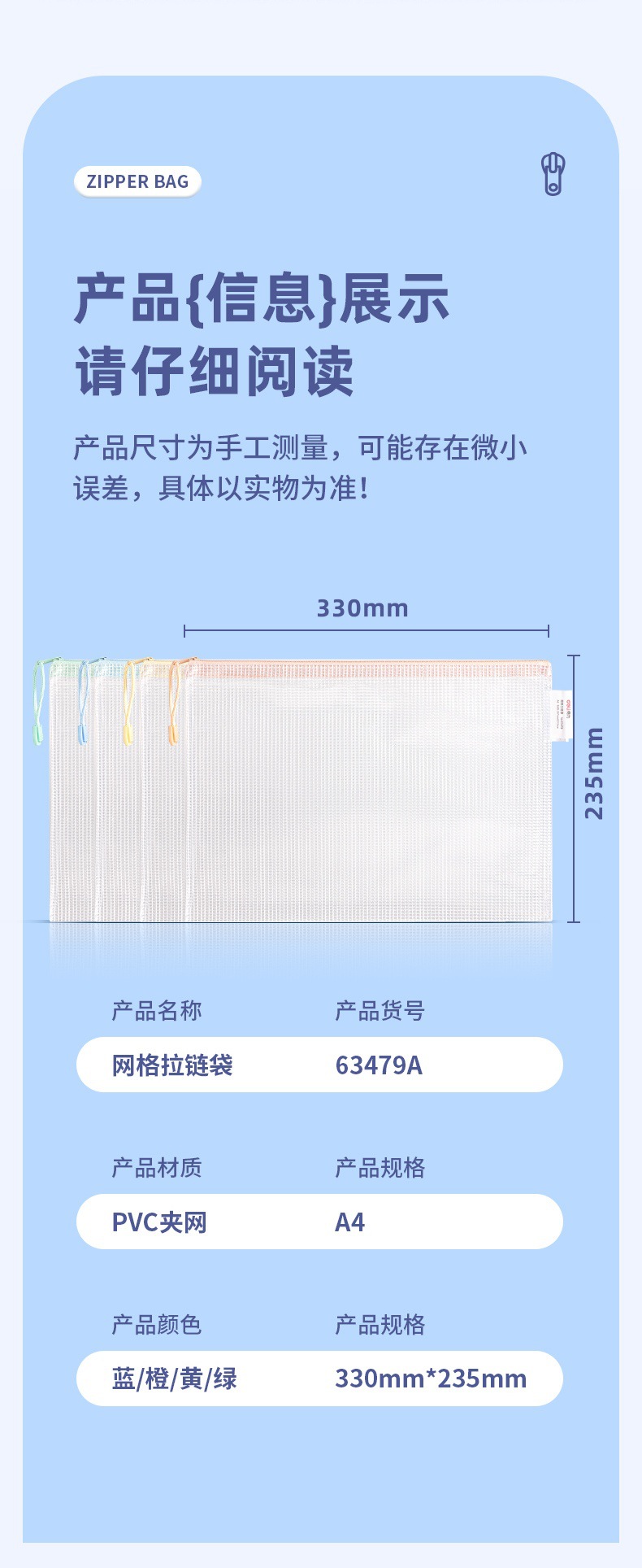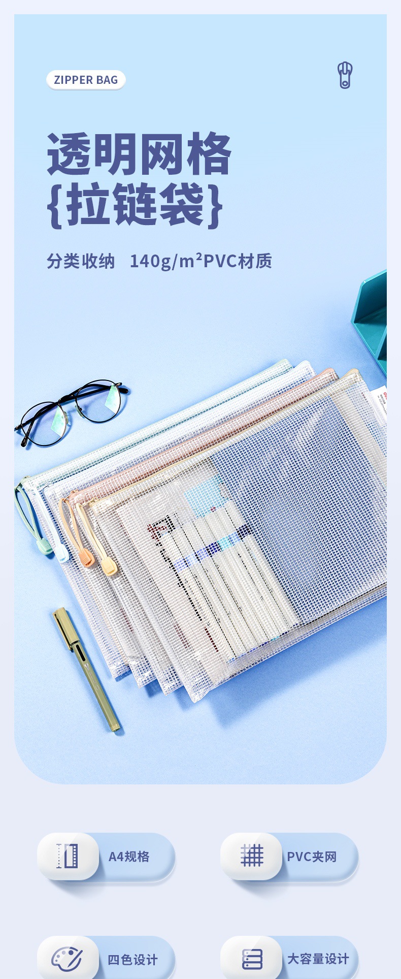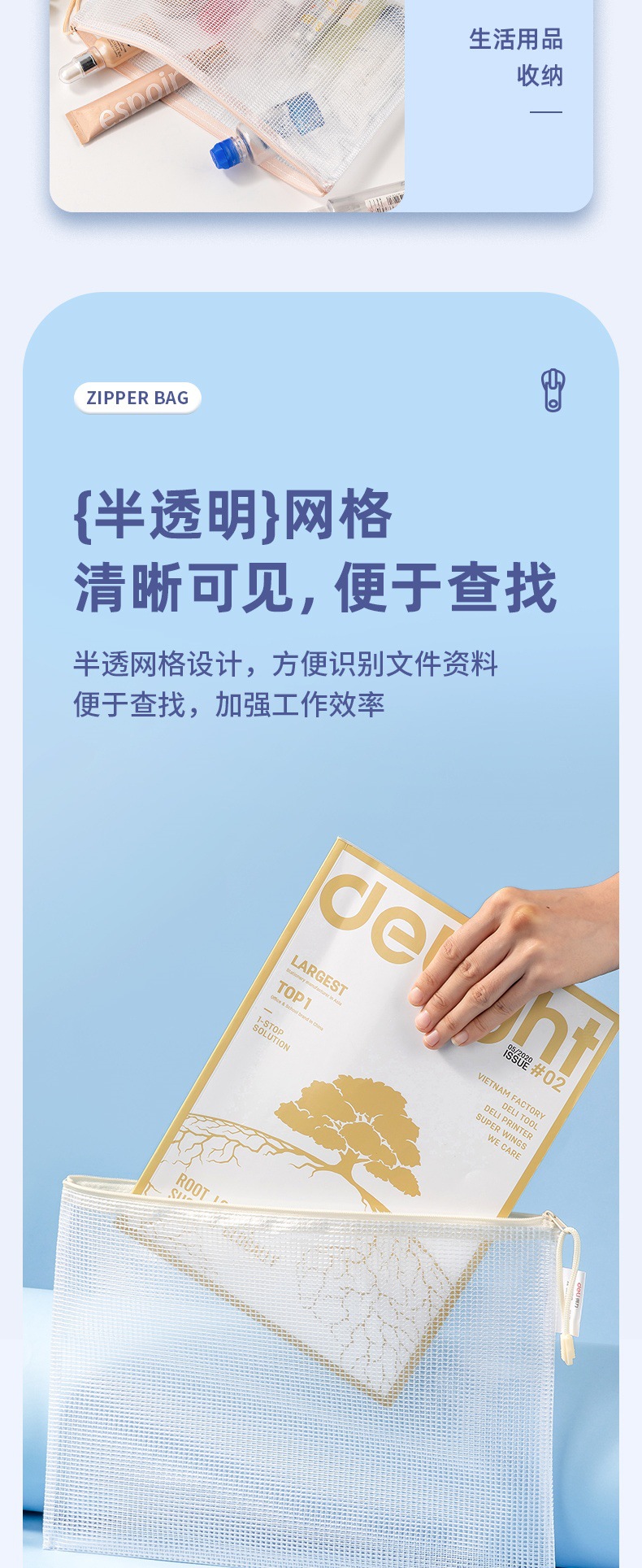 델리 63479 A4 지퍼 가방 두꺼운 메쉬 학생 시험 가방 테스트 종이 보관 가방 투명 방수 정보 가방스토어 가기